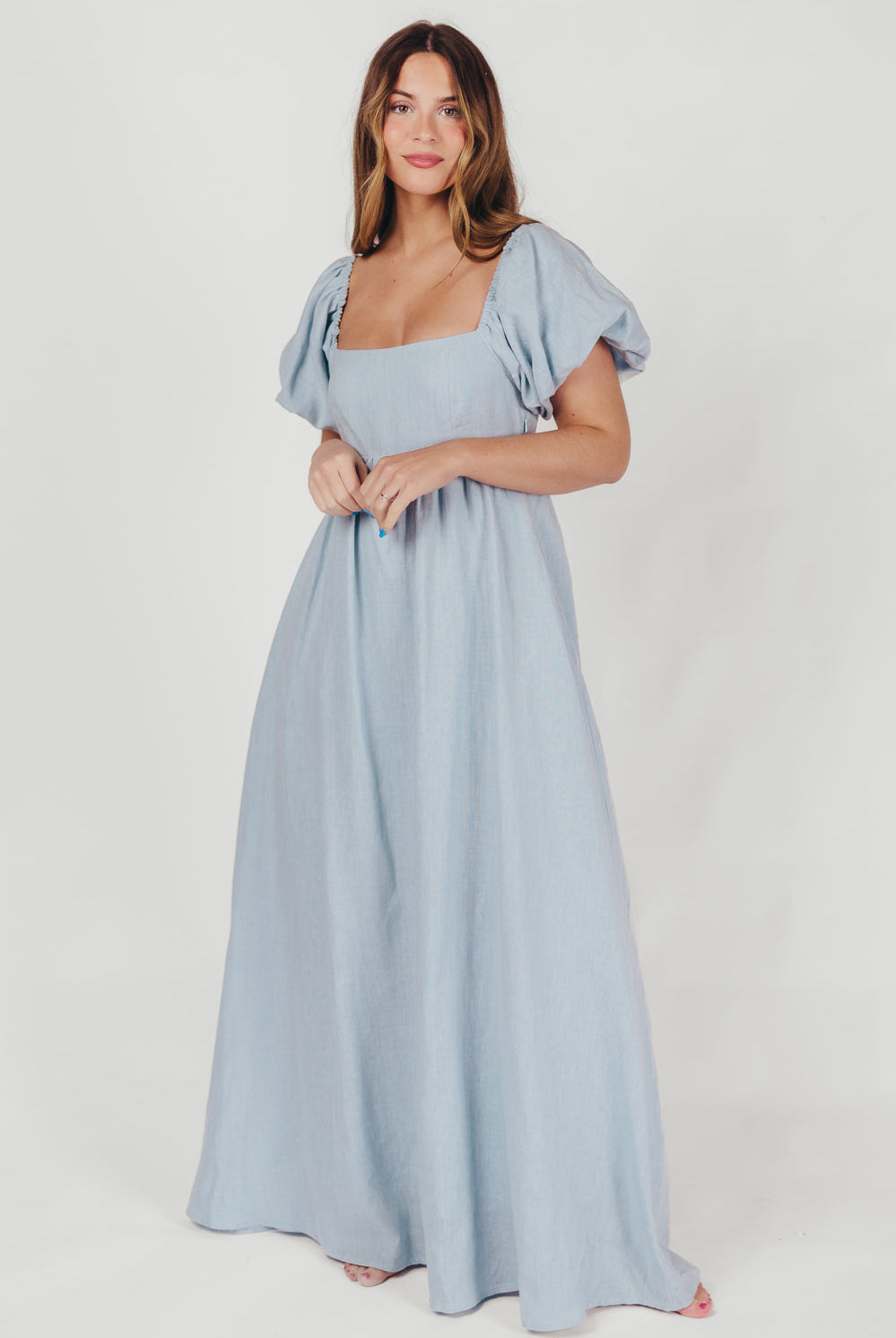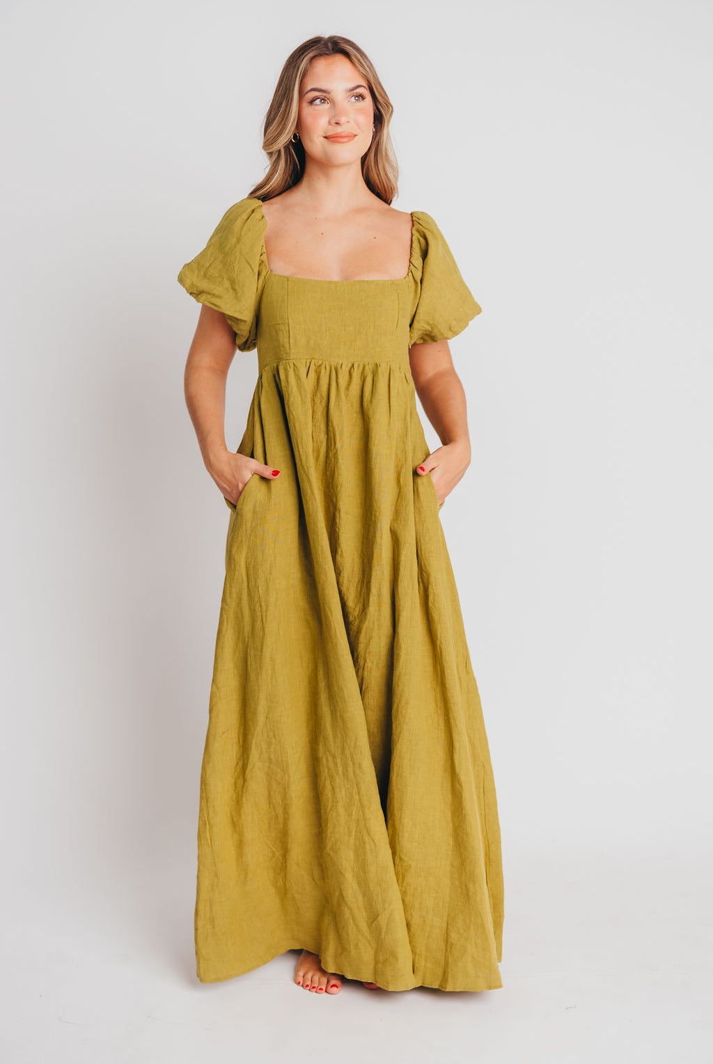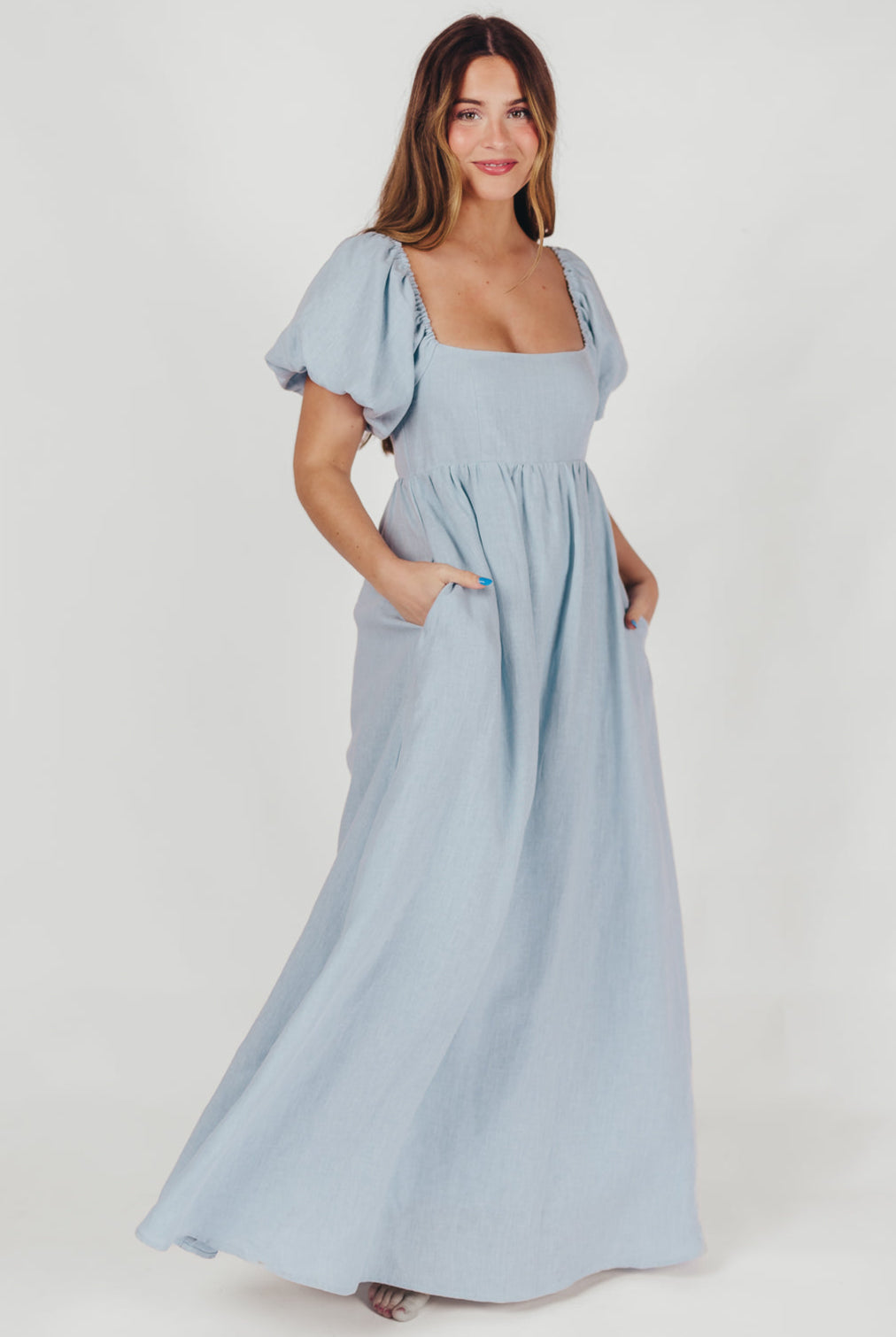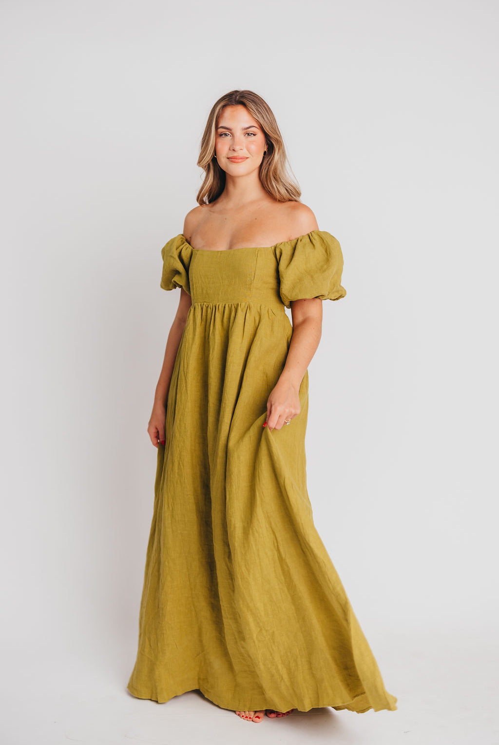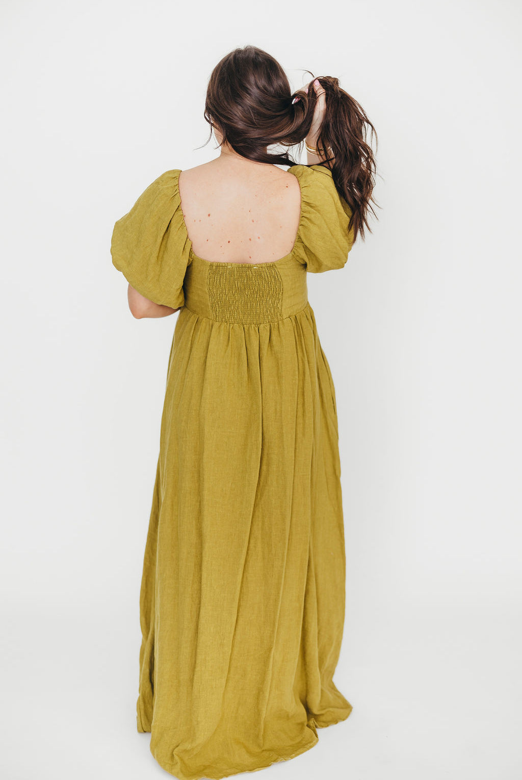 Join us in welcoming the *breathtaking* Candace Maxi Dress to the Worth Collective repertoire - we know you're going to love her! This neutral-hued, 100% linen dress is the epitome of elegance and luxury. Its beautiful neckline frames your decolletage, while the gently puffed sleeves and full skirt accent this gown's exquisite craftmanship. It's the perfect choice for this season's weddings, photo shoots, and other special events!