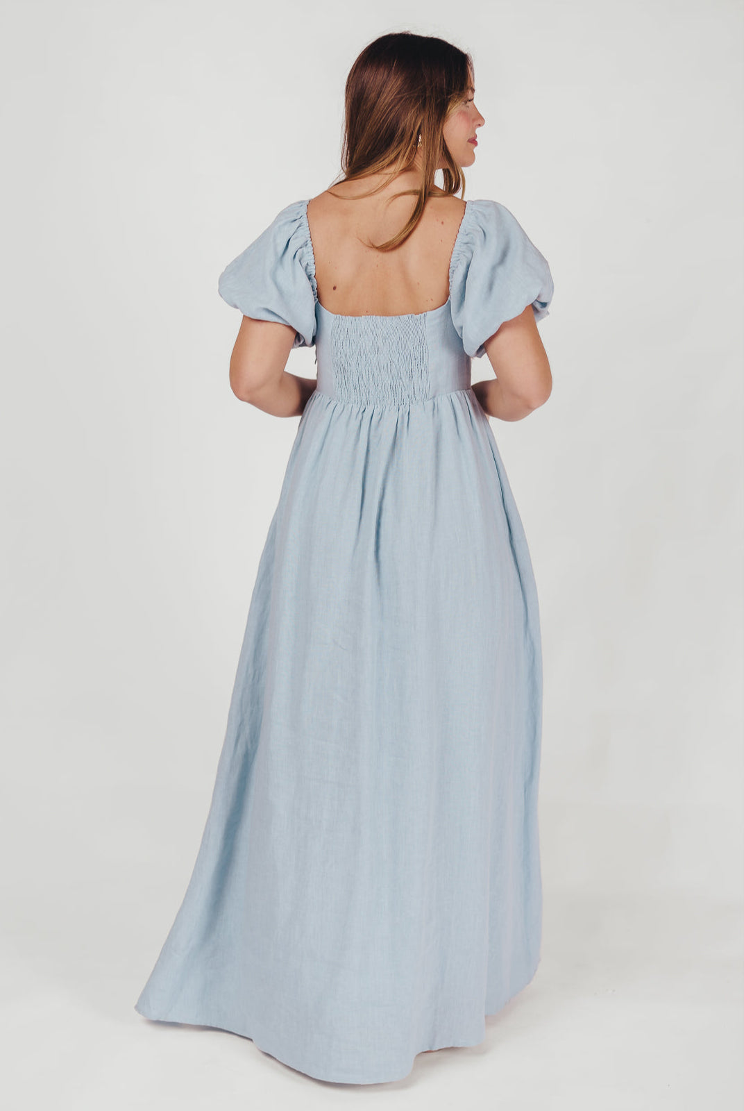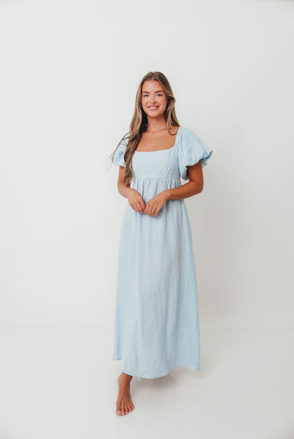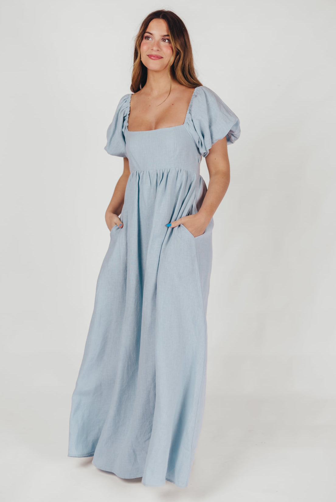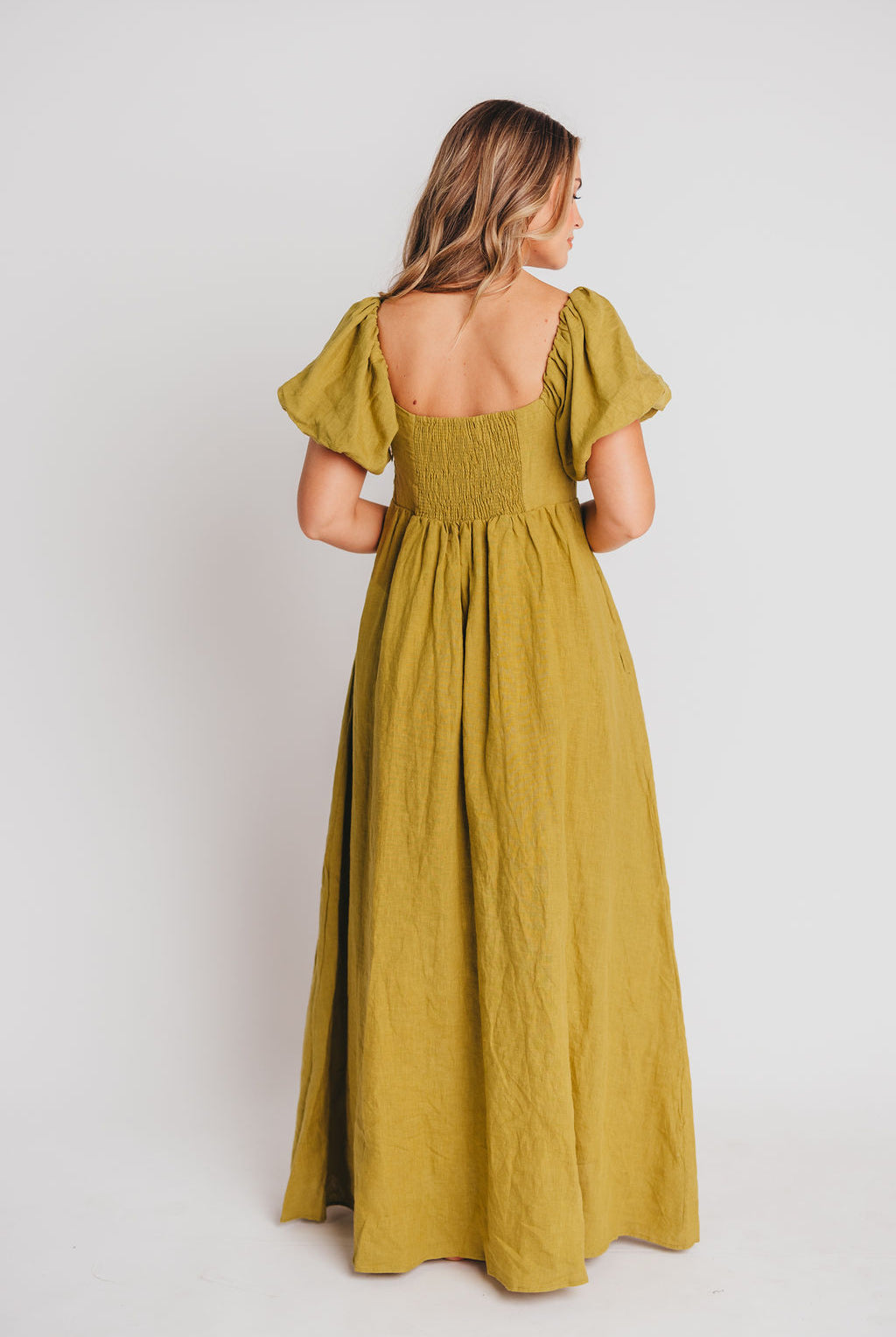 Join us in welcoming the *breathtaking* Candace Maxi Dress to the Worth Collective repertoire - we know you're going to love her! This neutral-hued, 100% linen dress is the epitome of elegance and luxury. Its beautiful neckline frames your decolletage, while the gently puffed sleeves and full skirt accent this gown's exquisite craftmanship. It's the perfect choice for this season's weddings, photo shoots, and other special events!