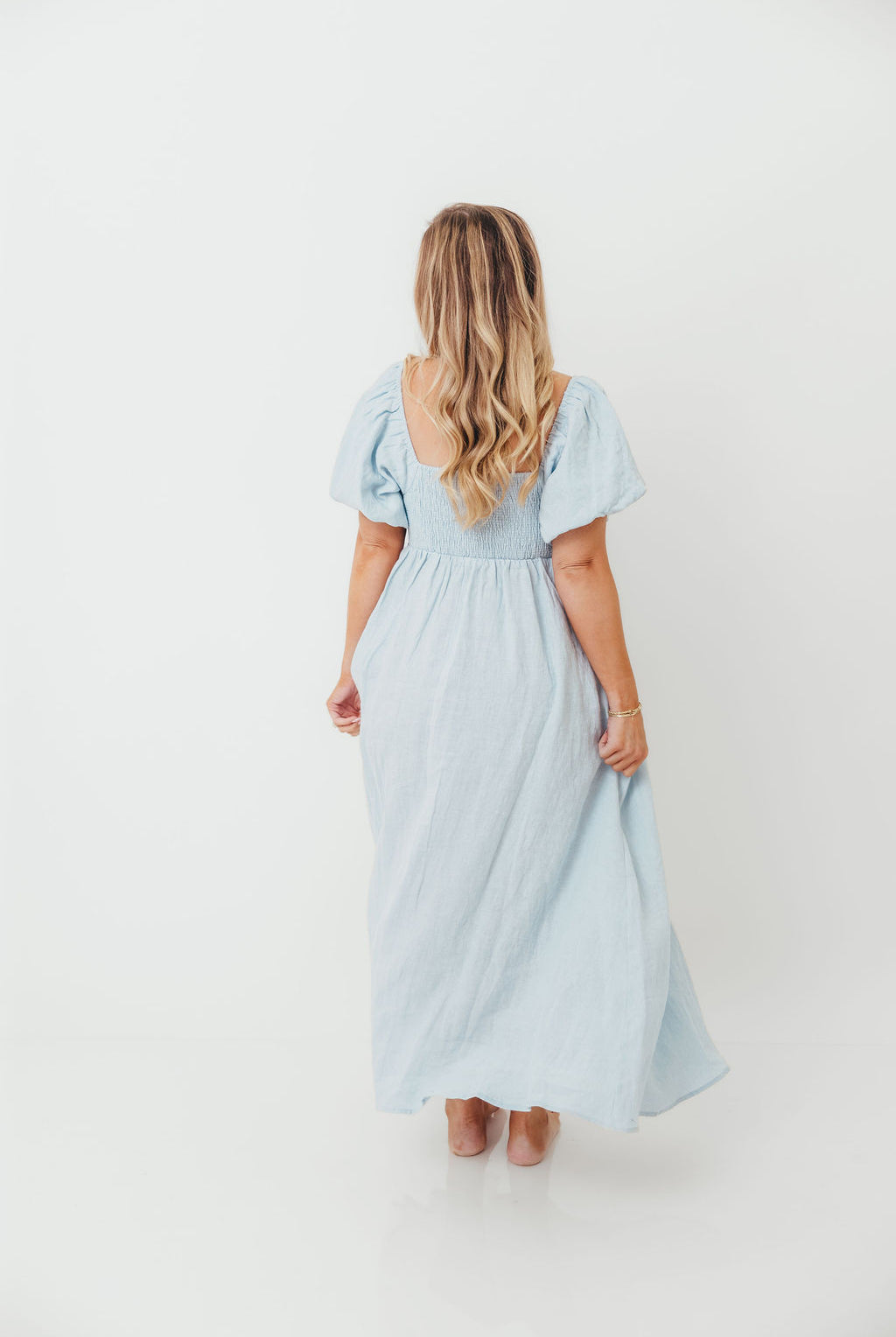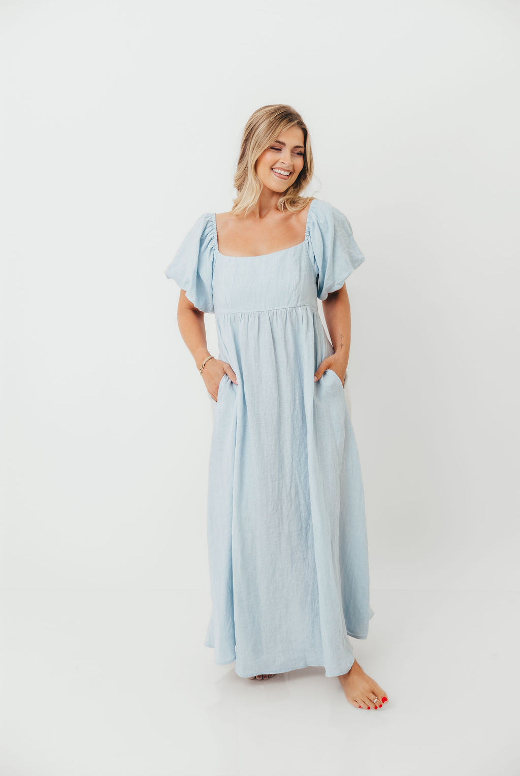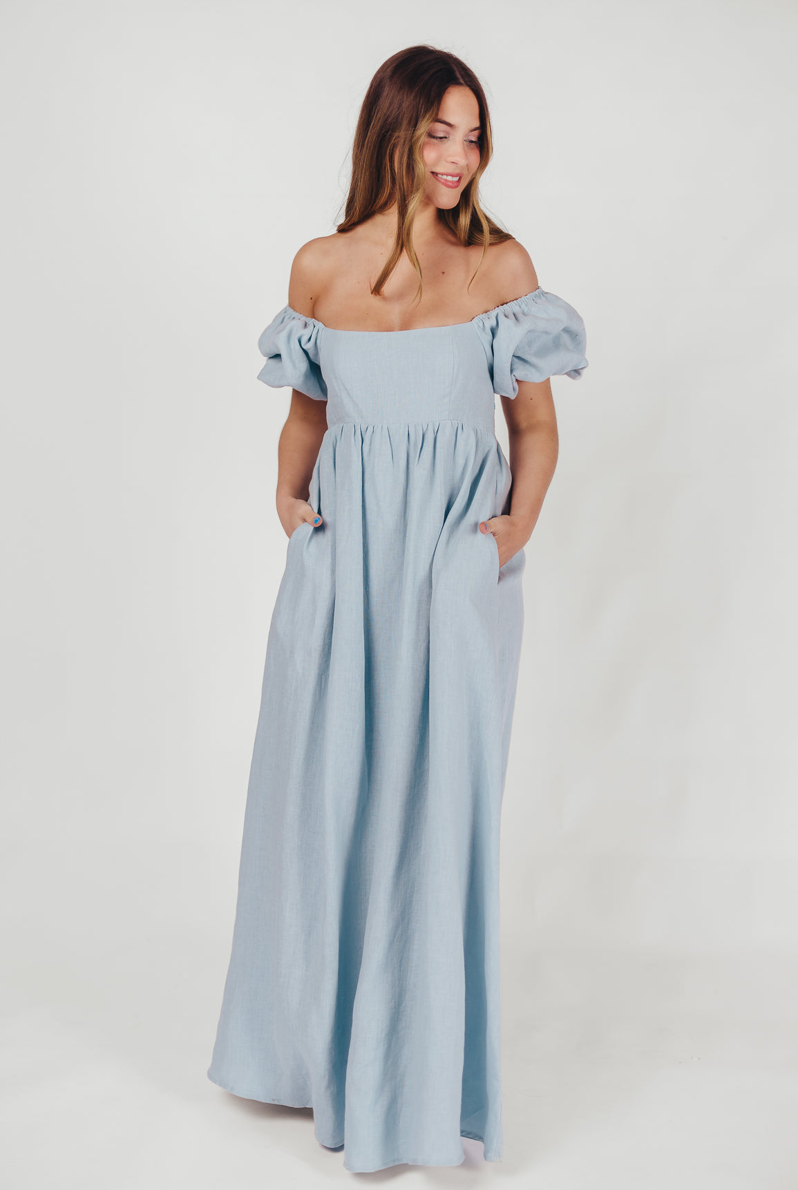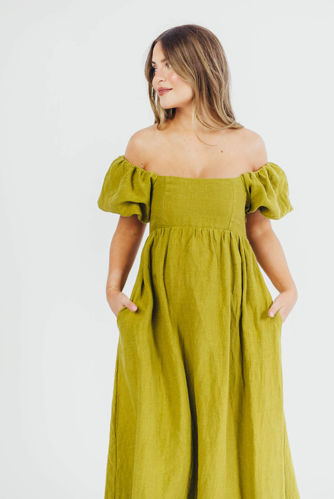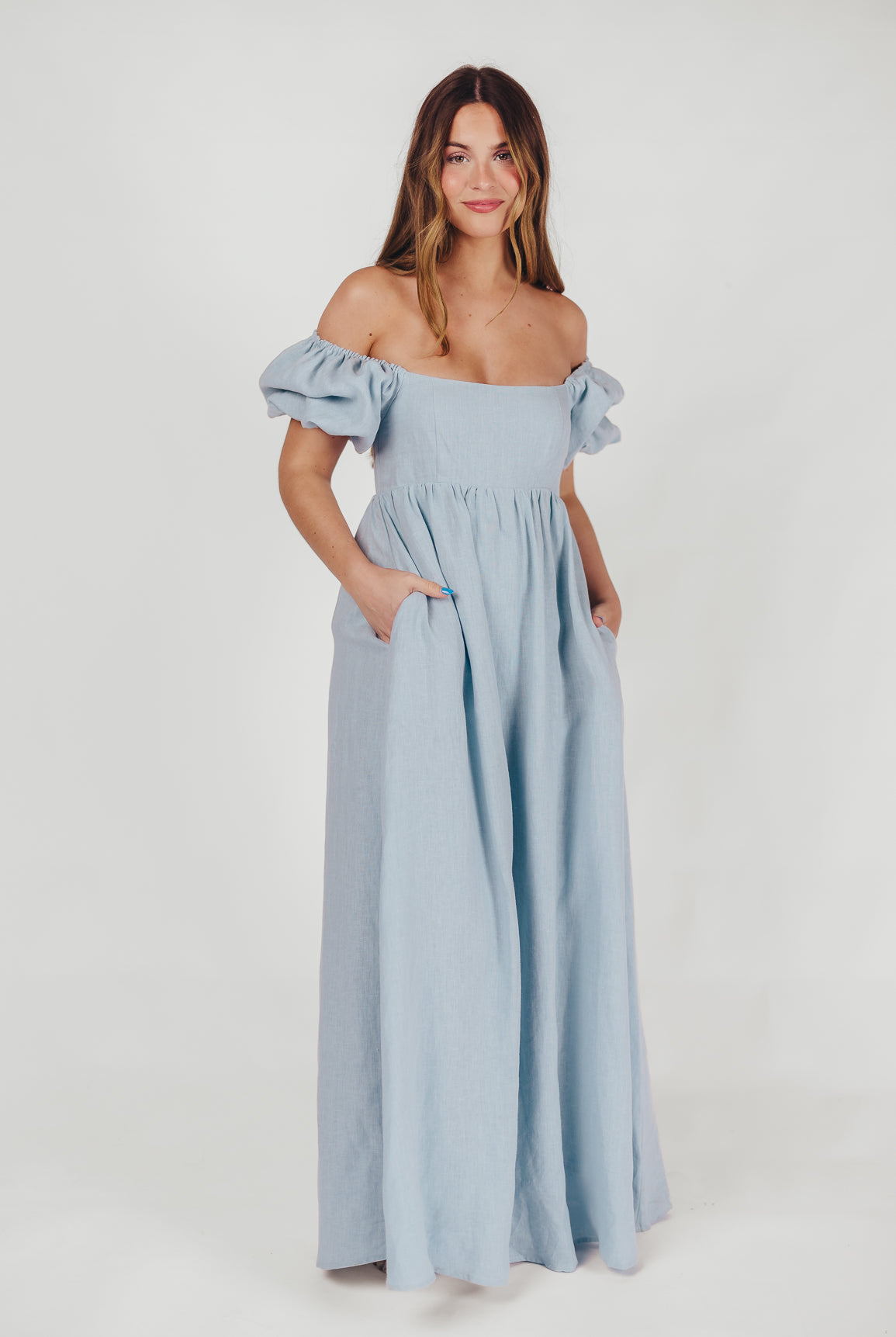 Join us in welcoming the *breathtaking* Candace Maxi Dress to the Worth Collective repertoire - we know you're going to love her! This neutral-hued, 100% linen dress is the epitome of elegance and luxury. Its beautiful neckline frames your decolletage, while the gently puffed sleeves and full skirt accent this gown's exquisite craftmanship. It's the perfect choice for this season's weddings, photo shoots, and other special events!