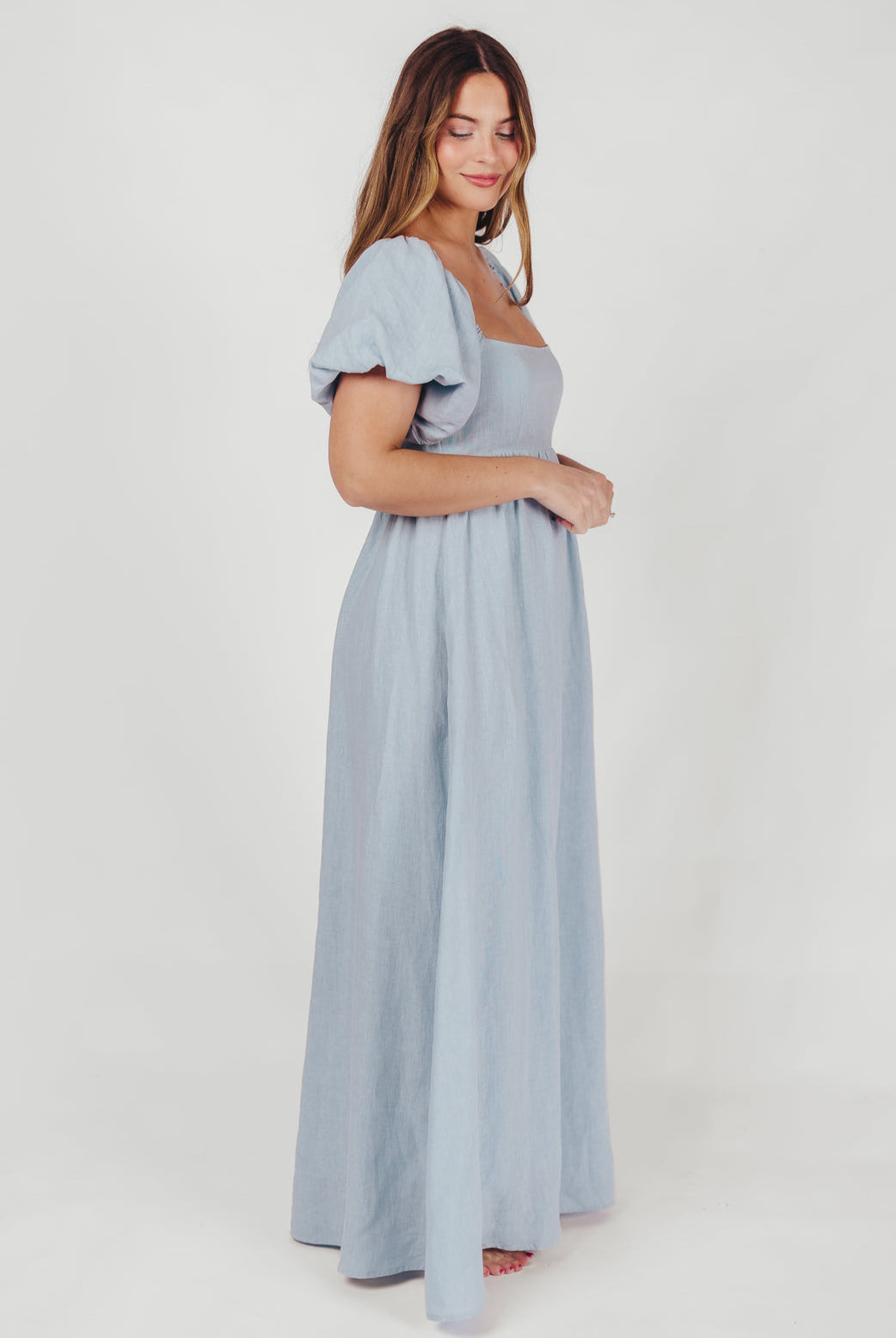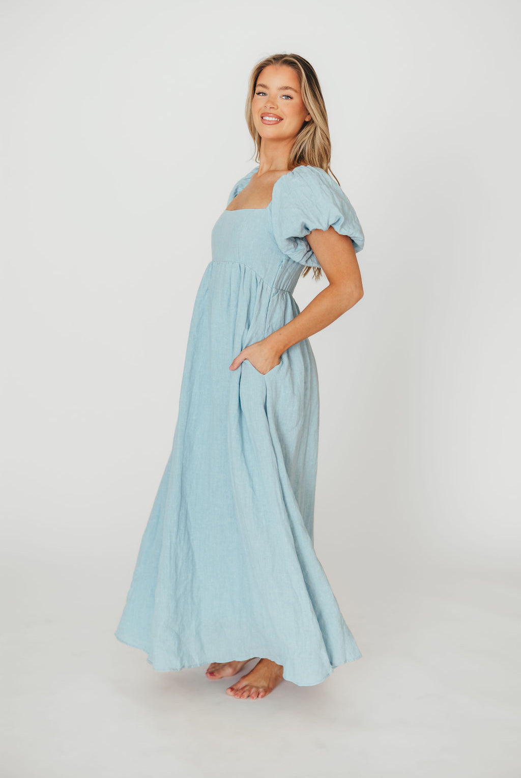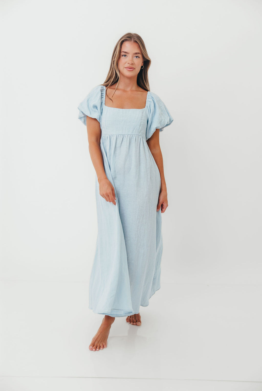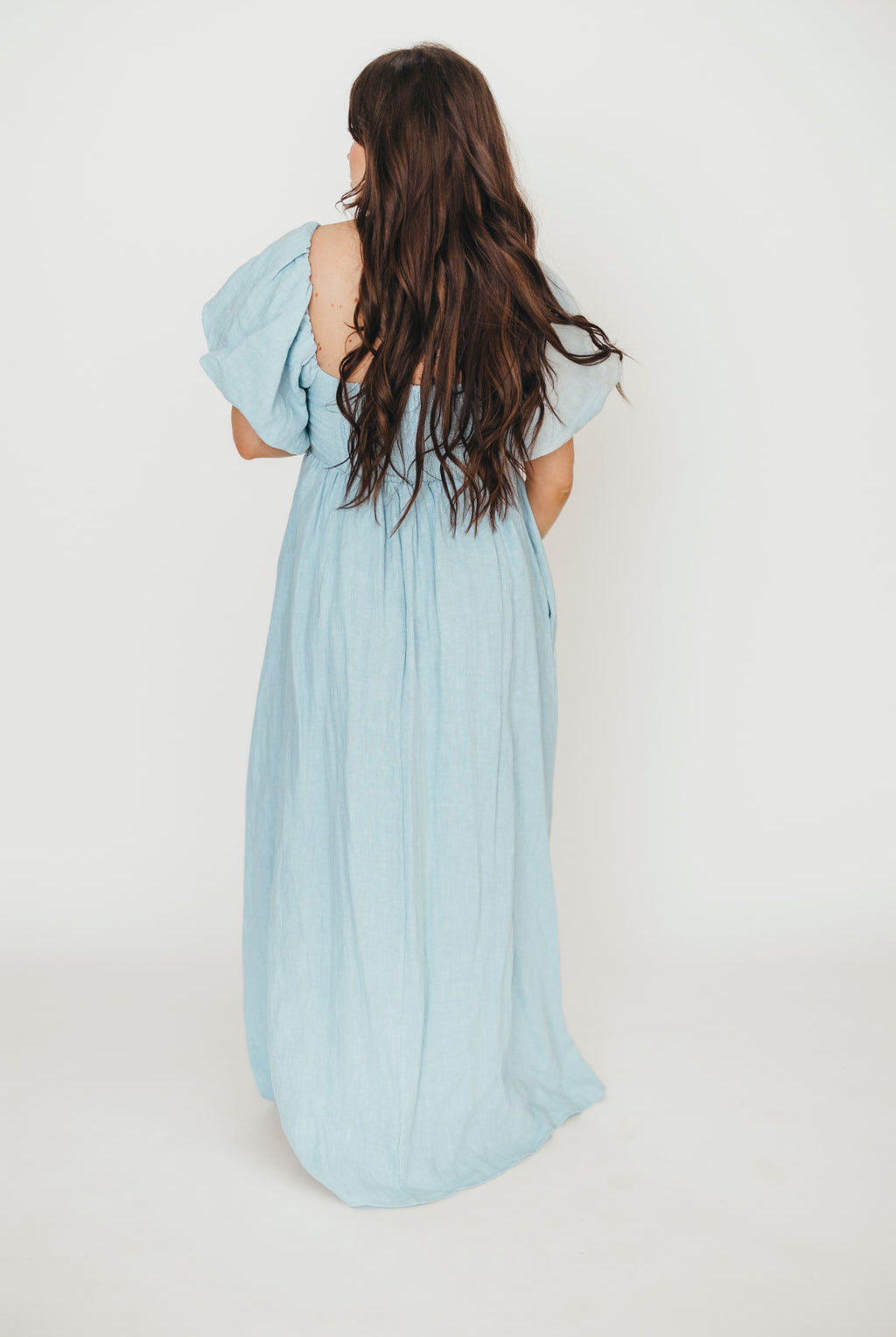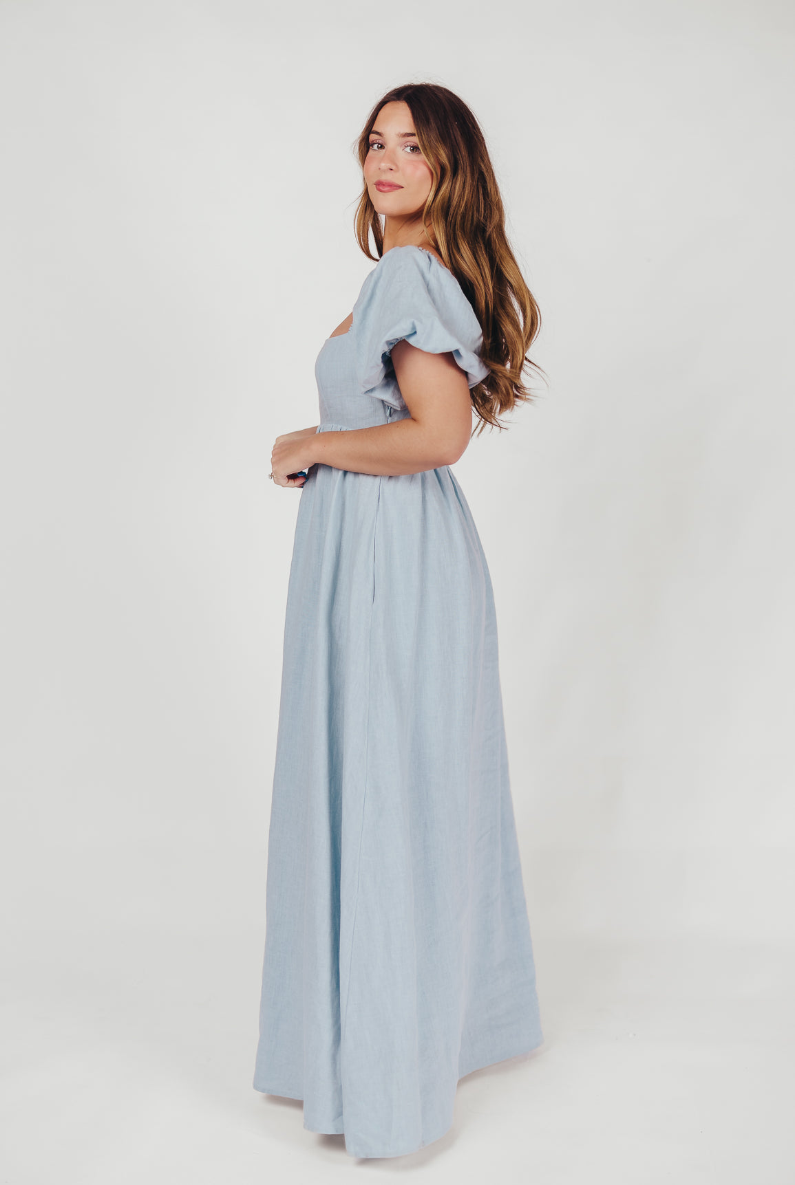 Join us in welcoming the *breathtaking* Candace Maxi Dress to the Worth Collective repertoire - we know you're going to love her! This neutral-hued, 100% linen dress is the epitome of elegance and luxury. Its beautiful neckline frames your decolletage, while the gently puffed sleeves and full skirt accent this gown's exquisite craftmanship. It's the perfect choice for this season's weddings, photo shoots, and other special events!