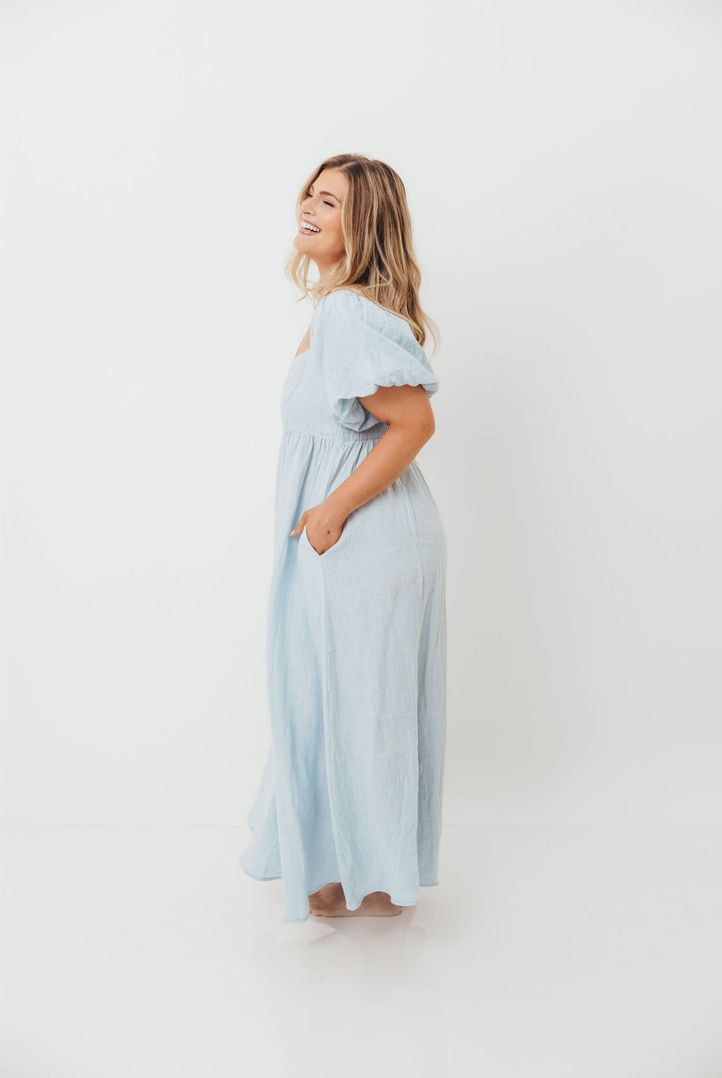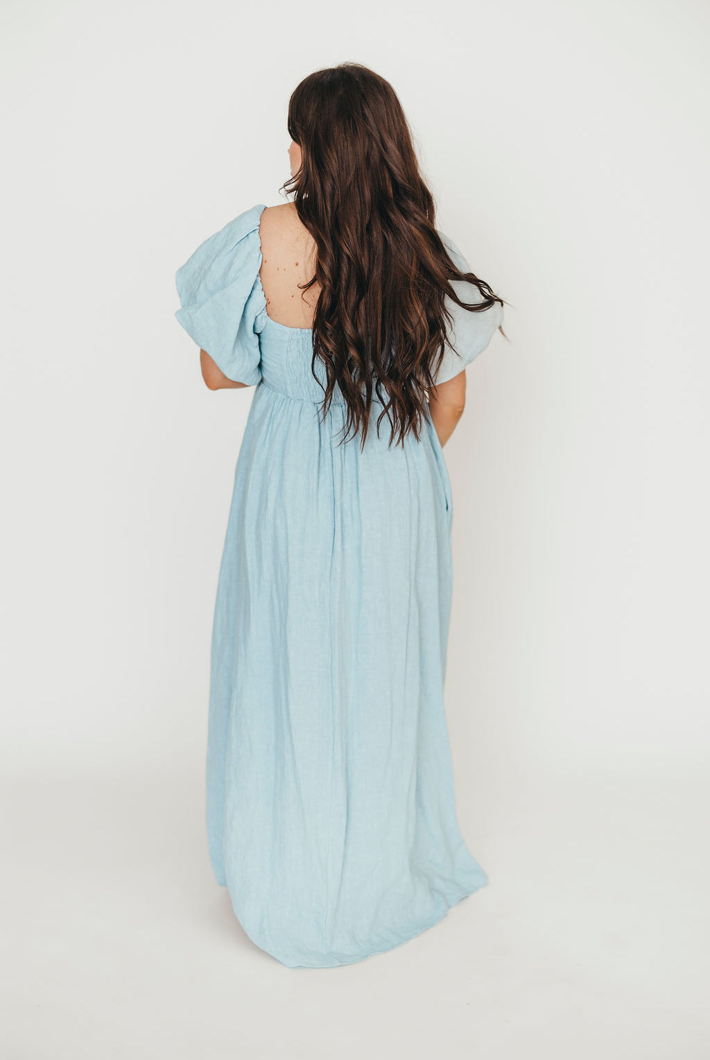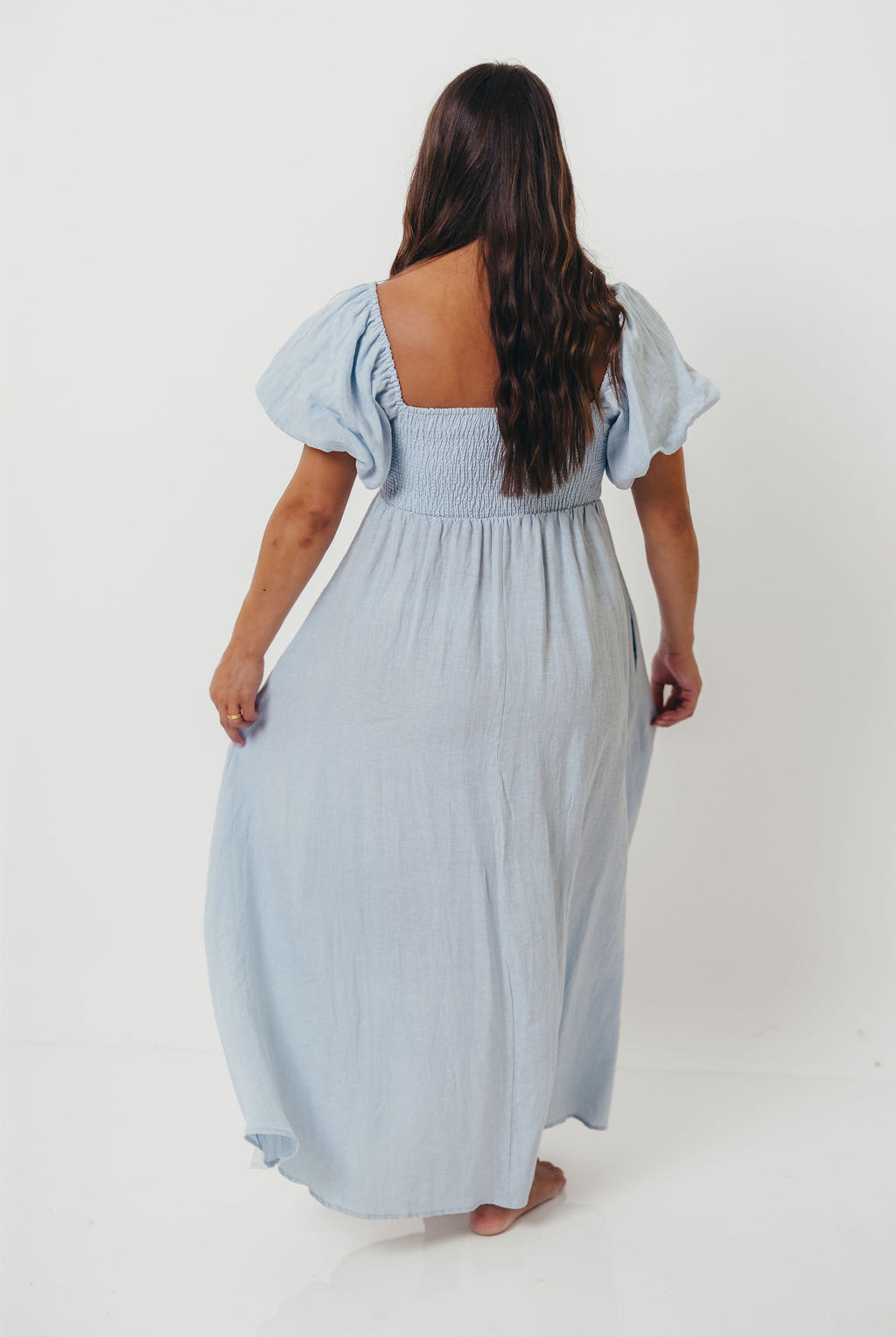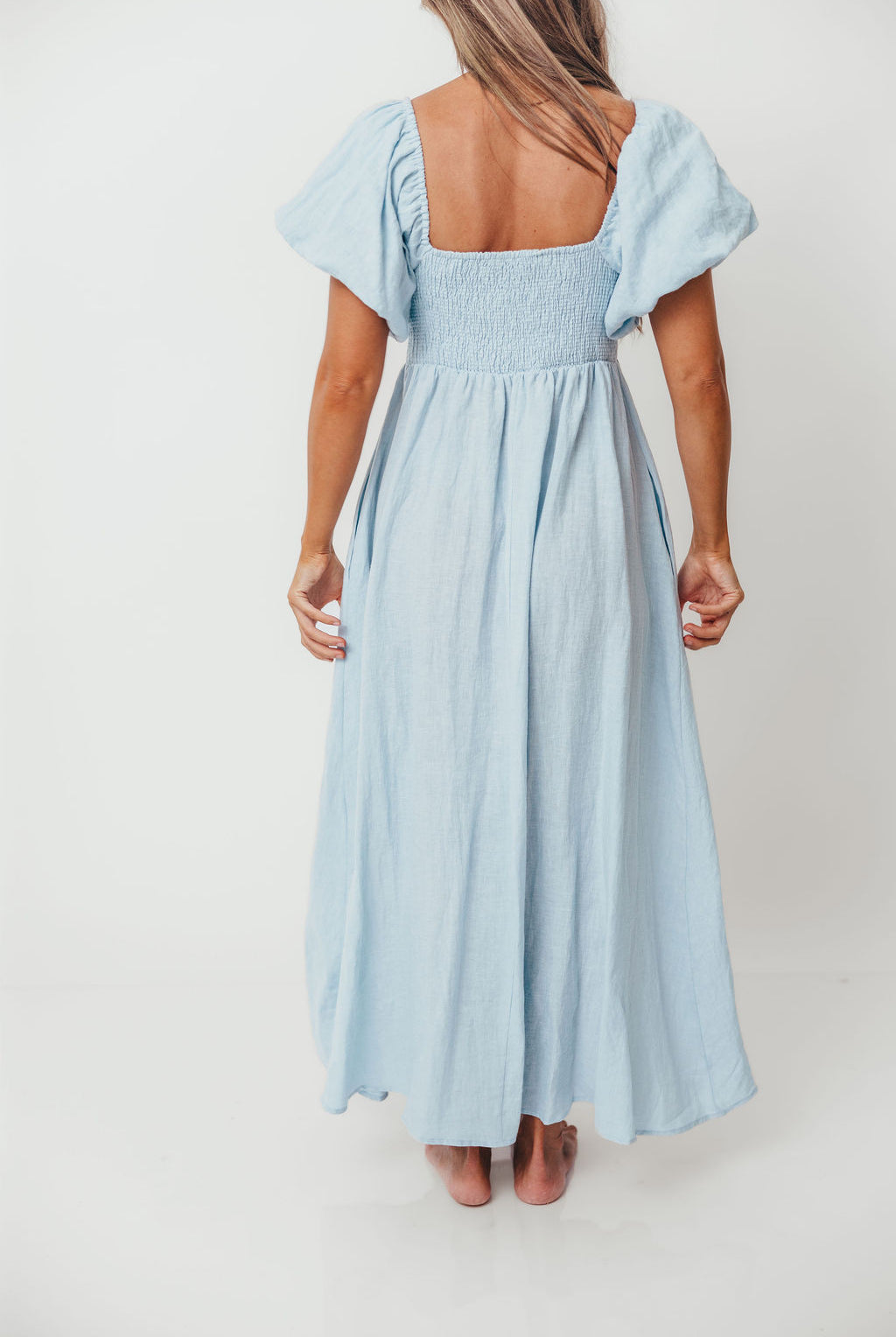 Join us in welcoming the *breathtaking* Candace Maxi Dress to the Worth Collective repertoire - we know you're going to love her! This neutral-hued, 100% linen dress is the epitome of elegance and luxury. Its beautiful neckline frames your decolletage, while the gently puffed sleeves and full skirt accent this gown's exquisite craftmanship. It's the perfect choice for this season's weddings, photo shoots, and other special events!