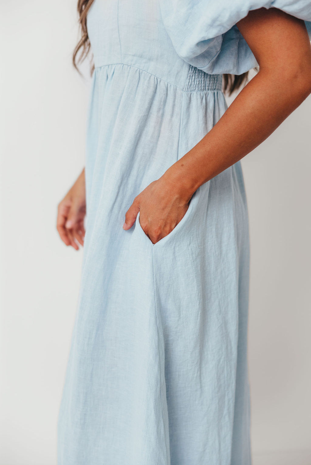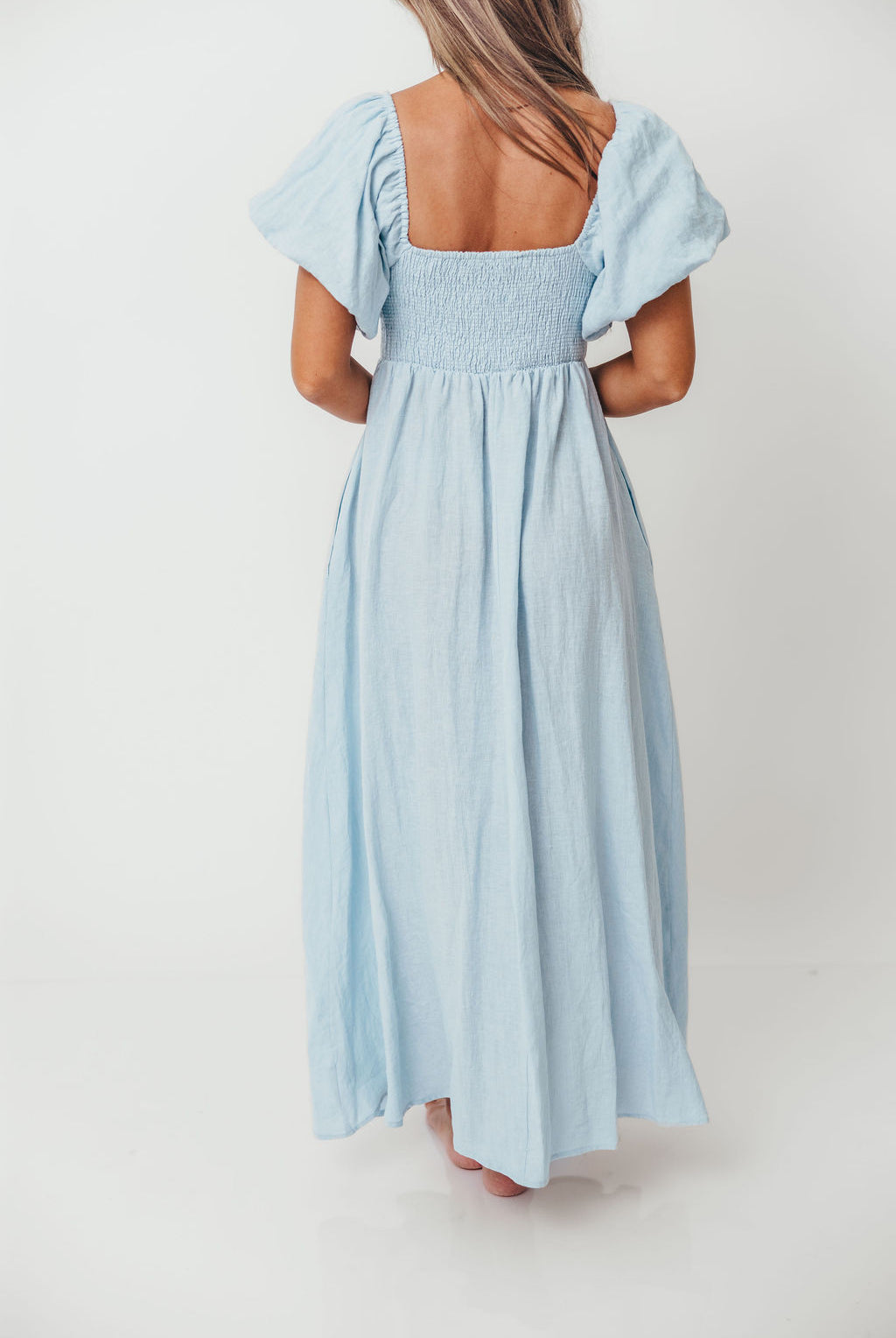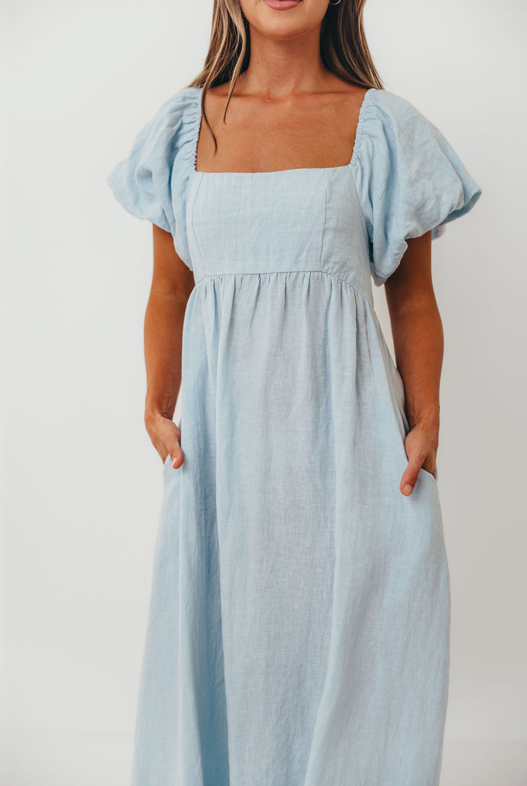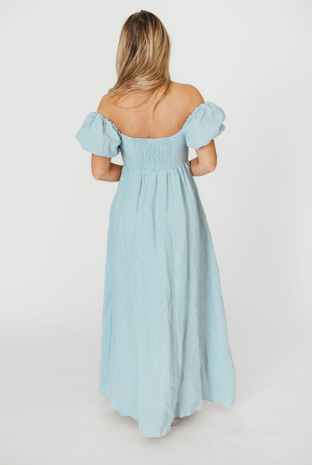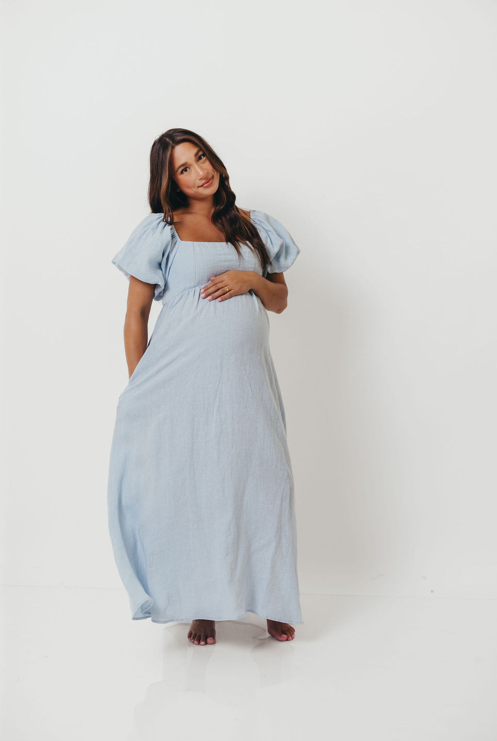 Join us in welcoming the *breathtaking* Candace Maxi Dress to the Worth Collective repertoire - we know you're going to love her! This neutral-hued, 100% linen dress is the epitome of elegance and luxury. Its beautiful neckline frames your decolletage, while the gently puffed sleeves and full skirt accent this gown's exquisite craftmanship. It's the perfect choice for this season's weddings, photo shoots, and other special events!