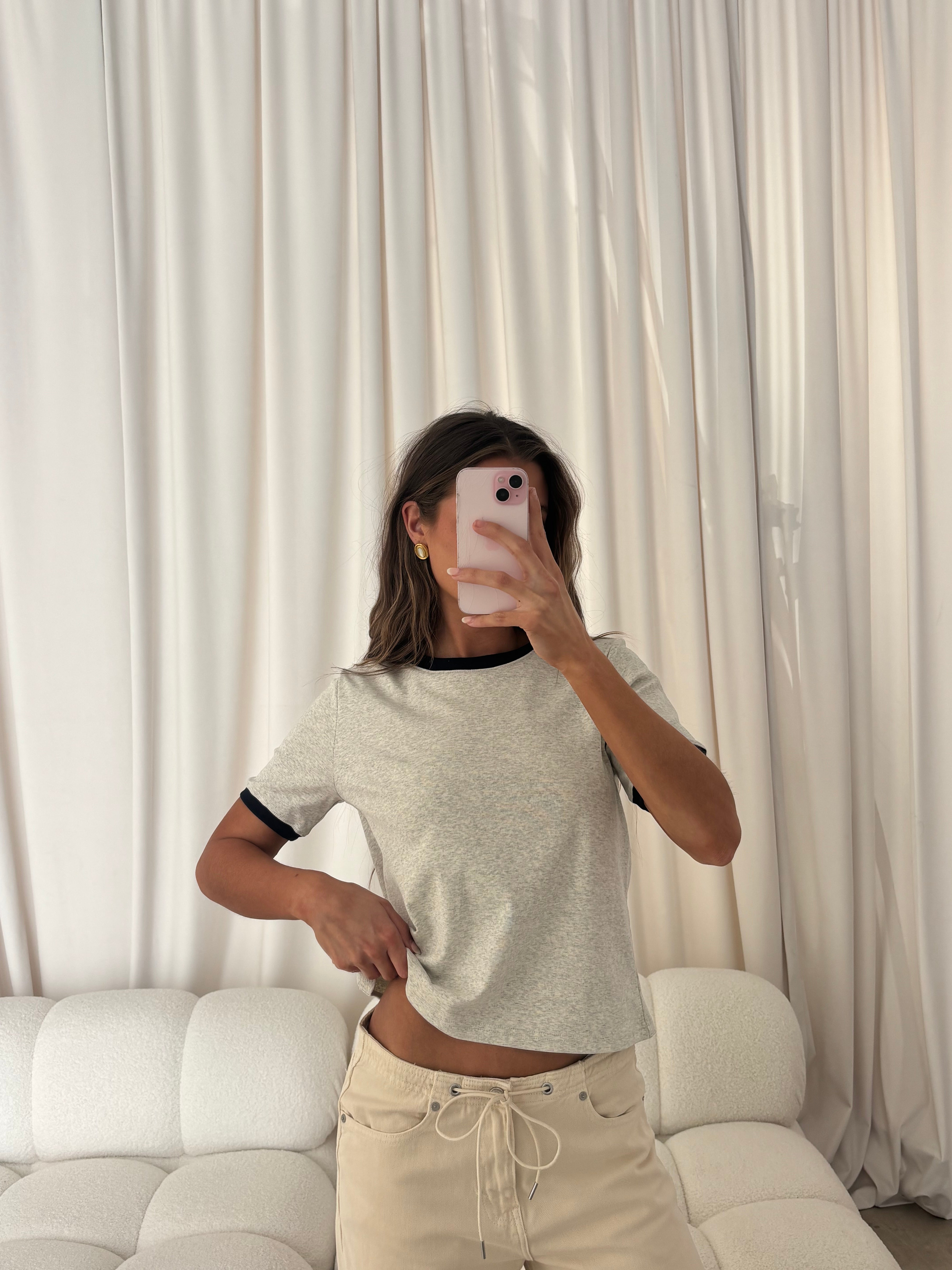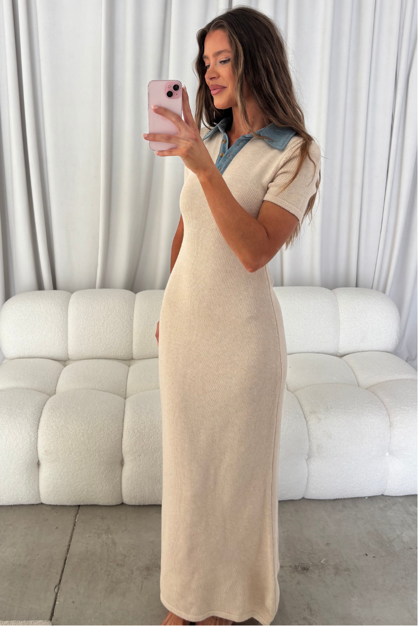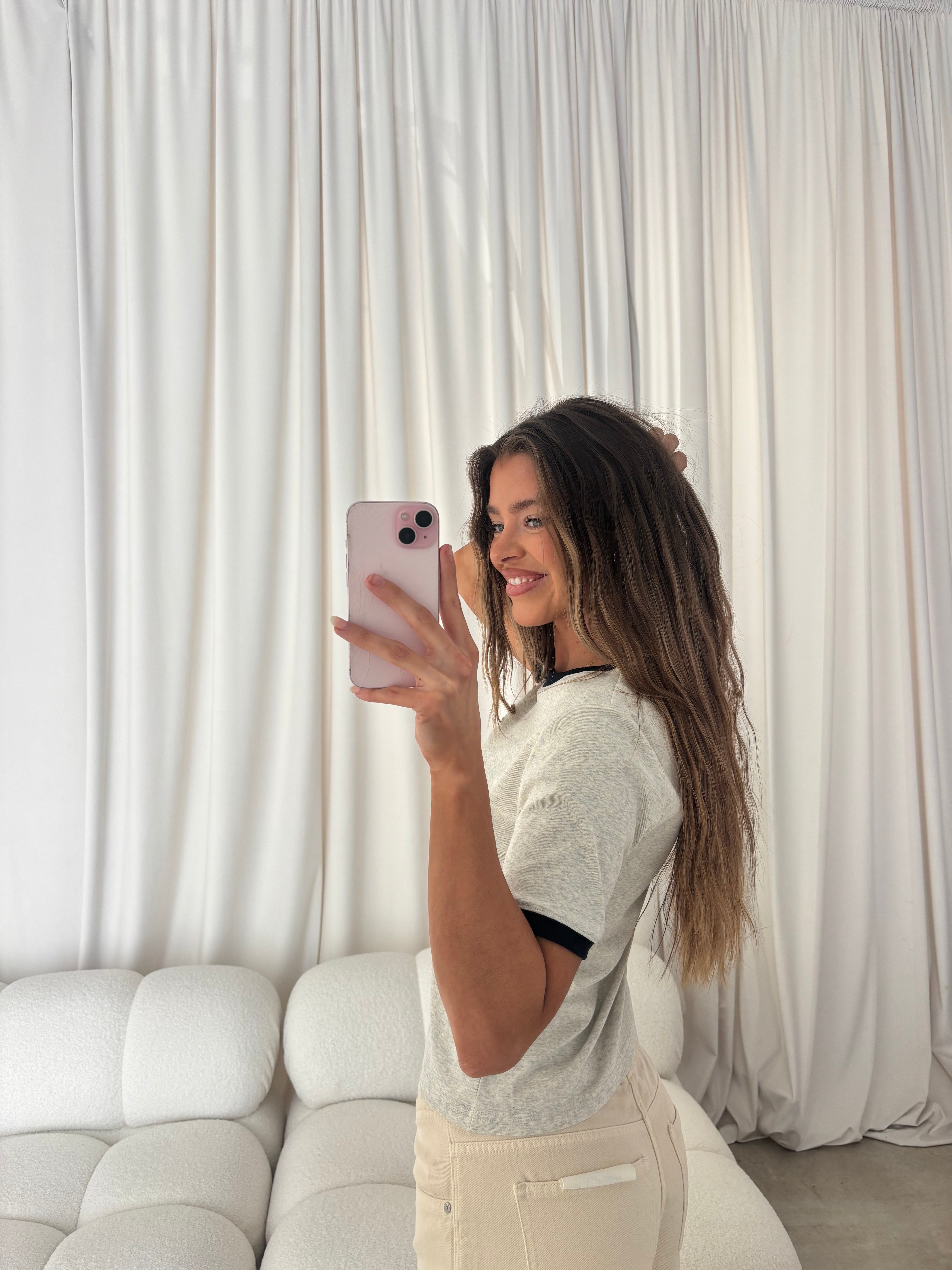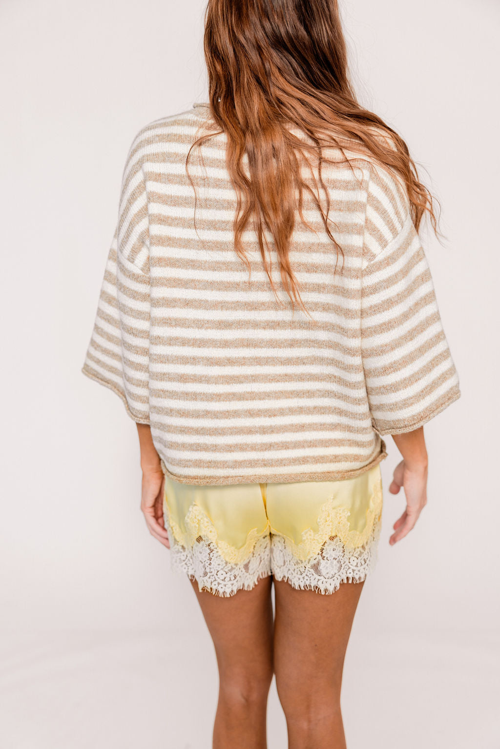 Imogen Striped 3/4 Sleeve Cardigan Top in Taupe Cream