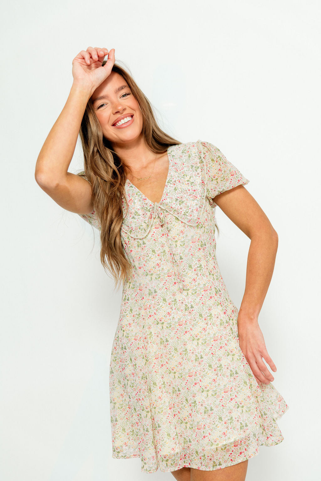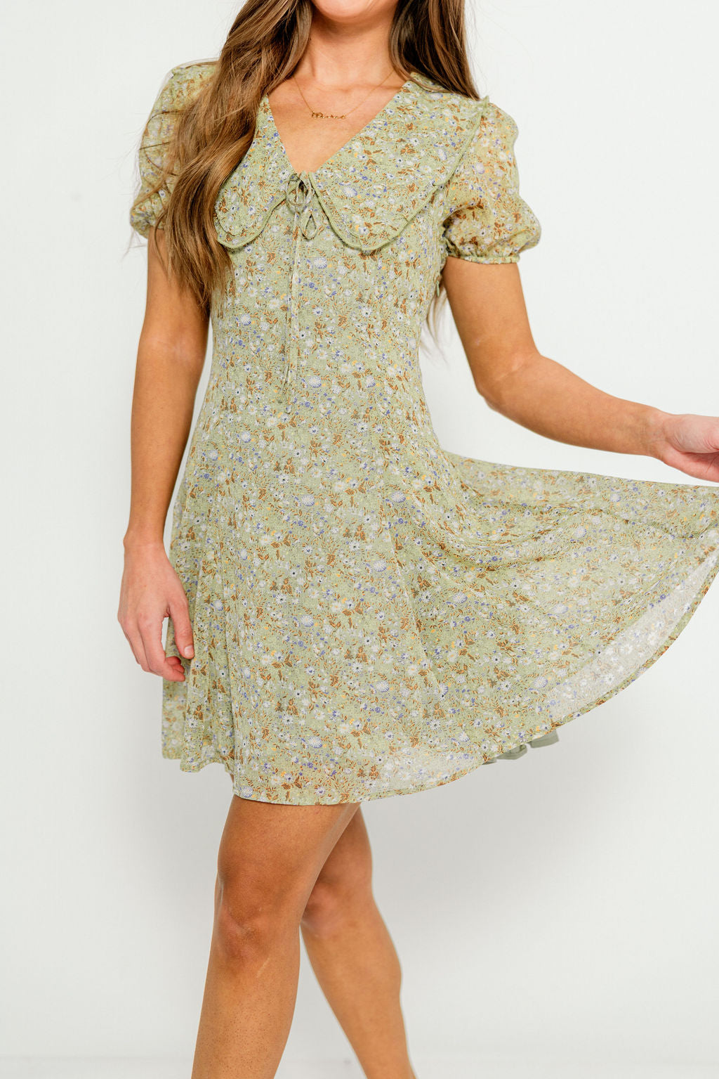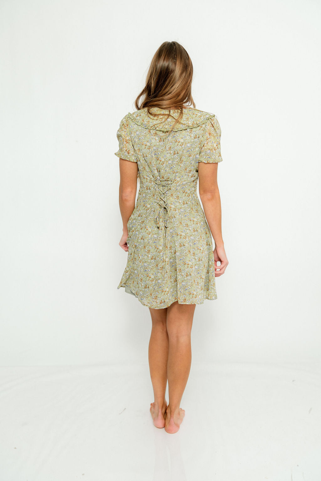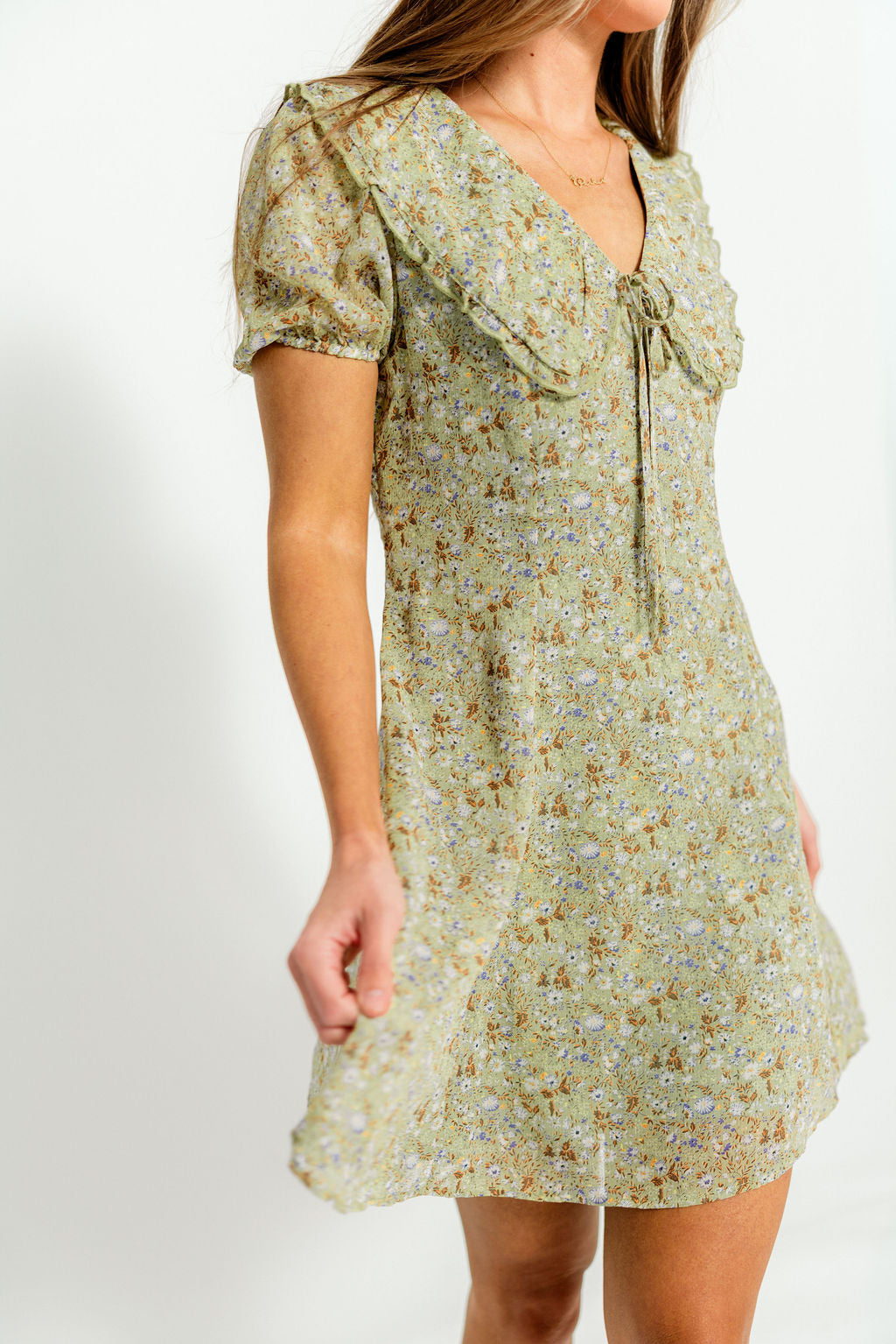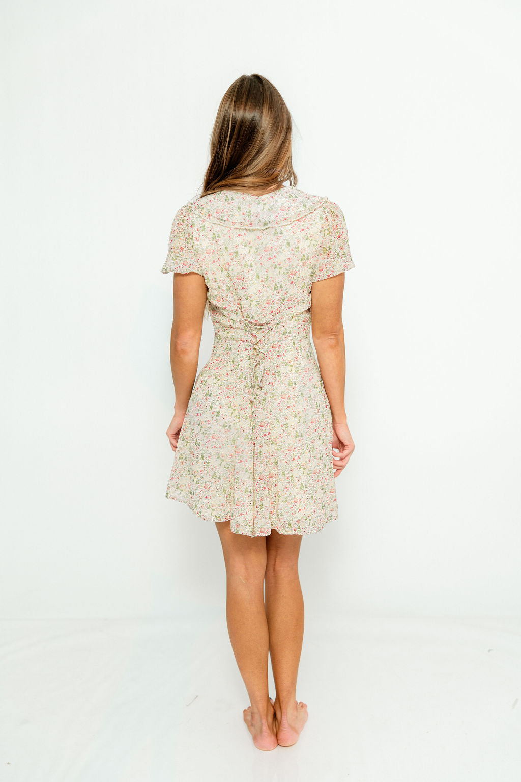 Samantha Floral Doll Collar Mini Dress in English Rose