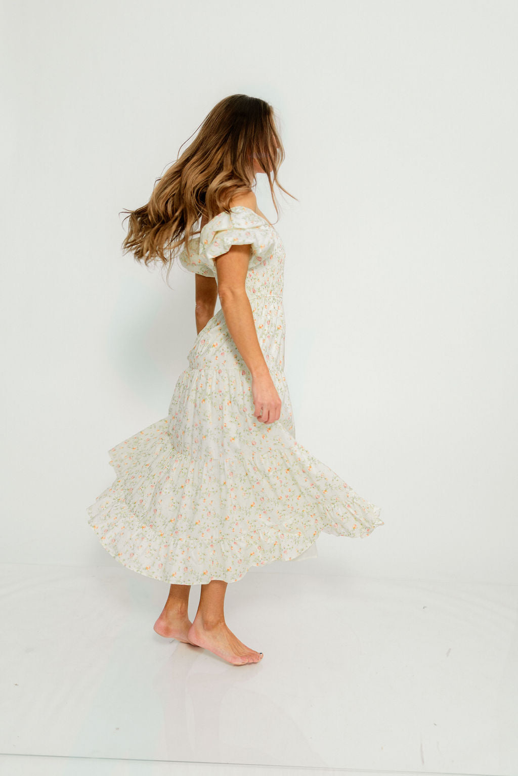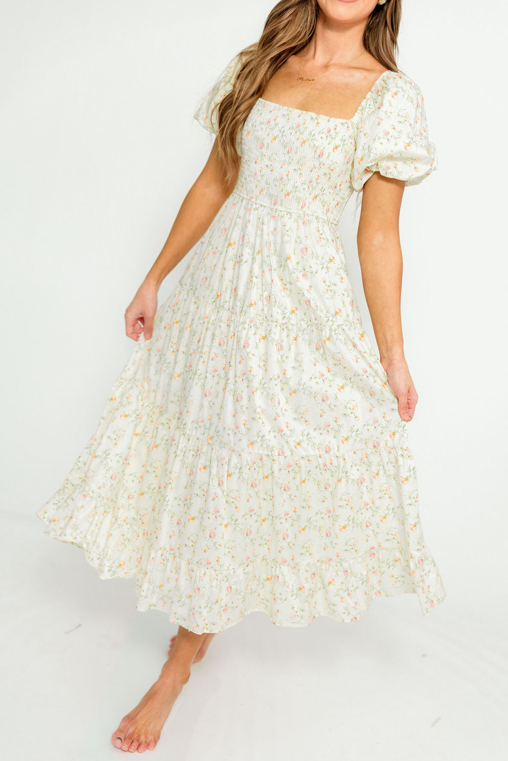 Alexis Floral Midi Dress in Butter Cream - Bump Friendly