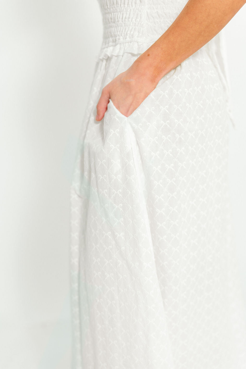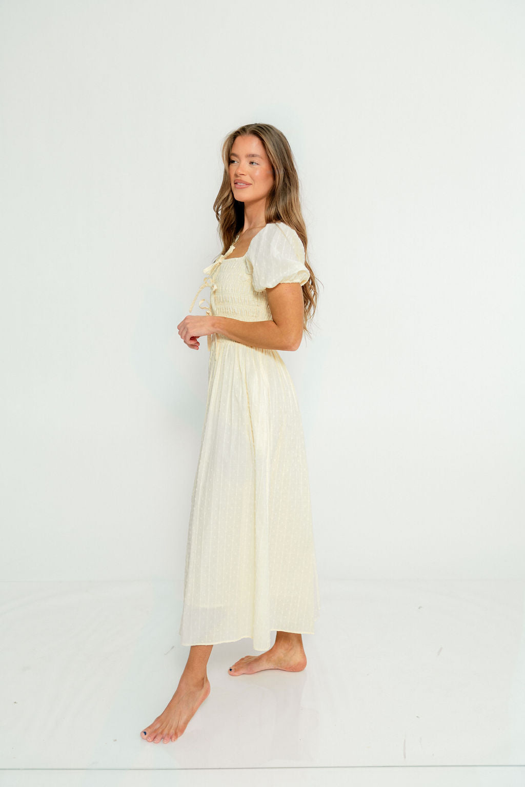 Arabelle Smocked Bow Detail Maxi Dress in Lemon Water