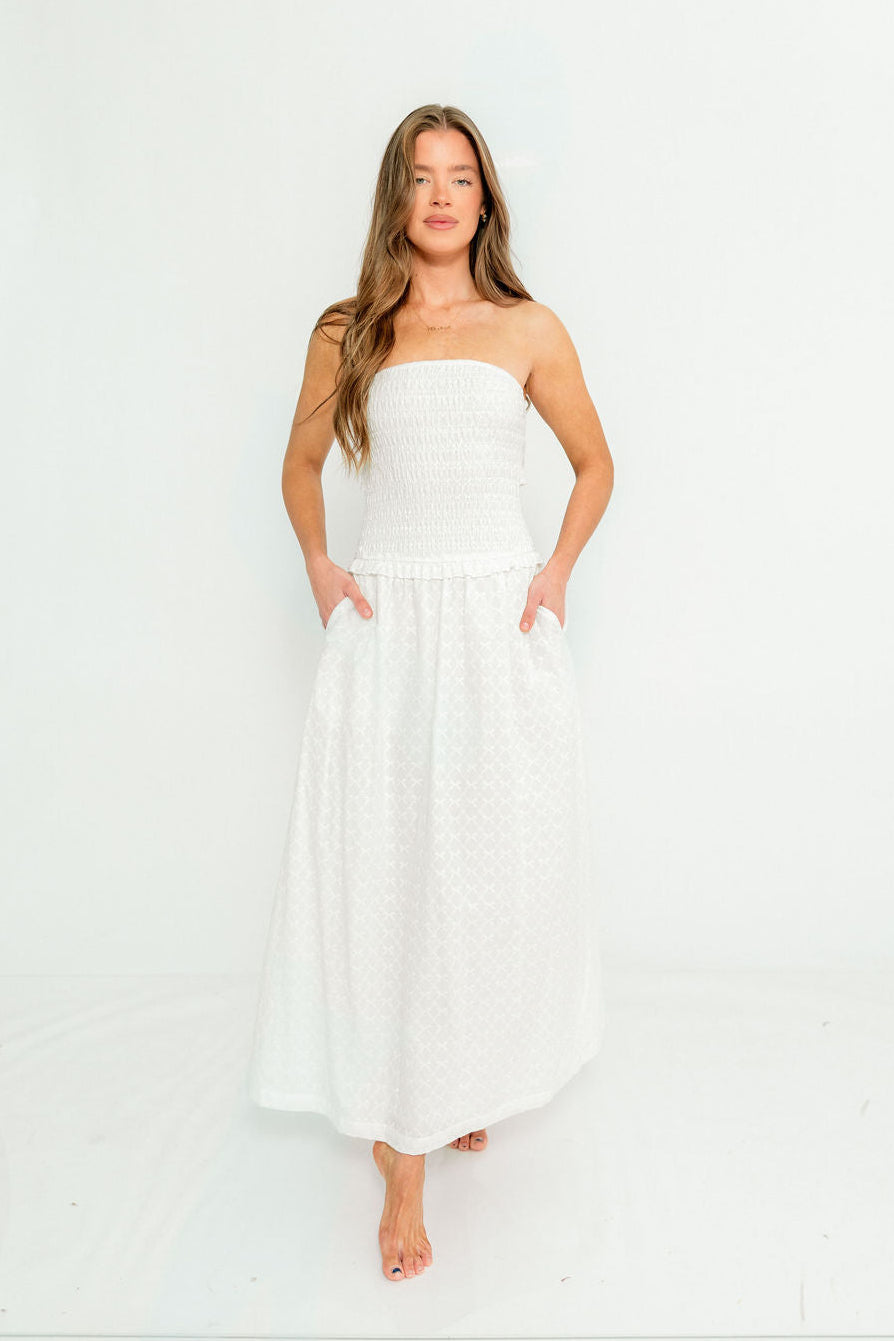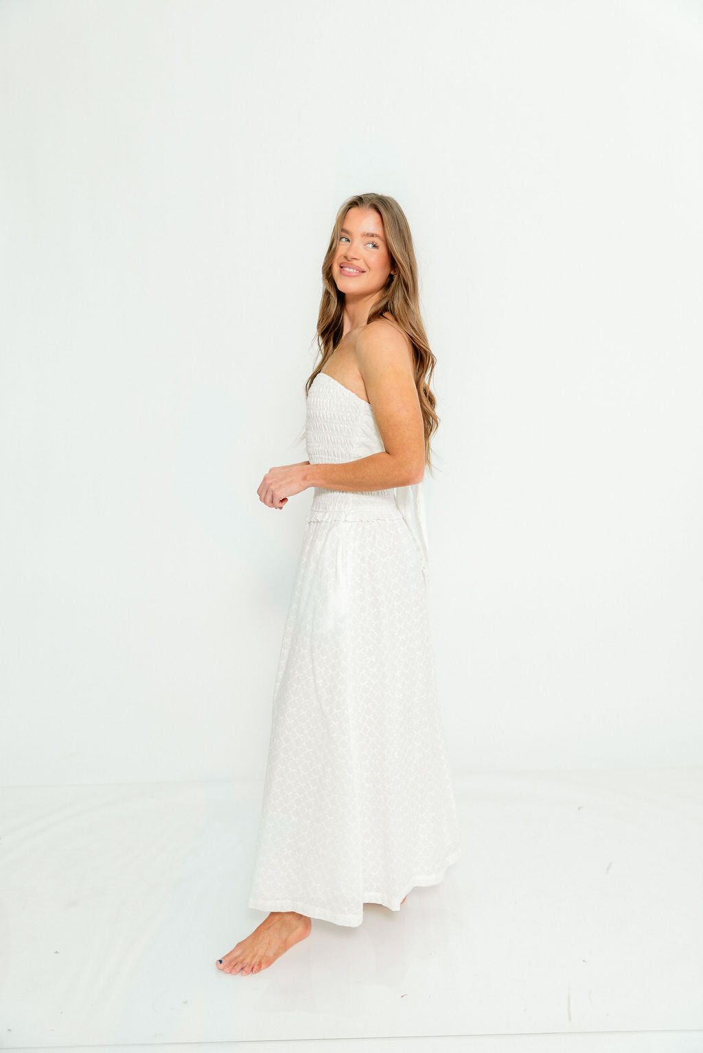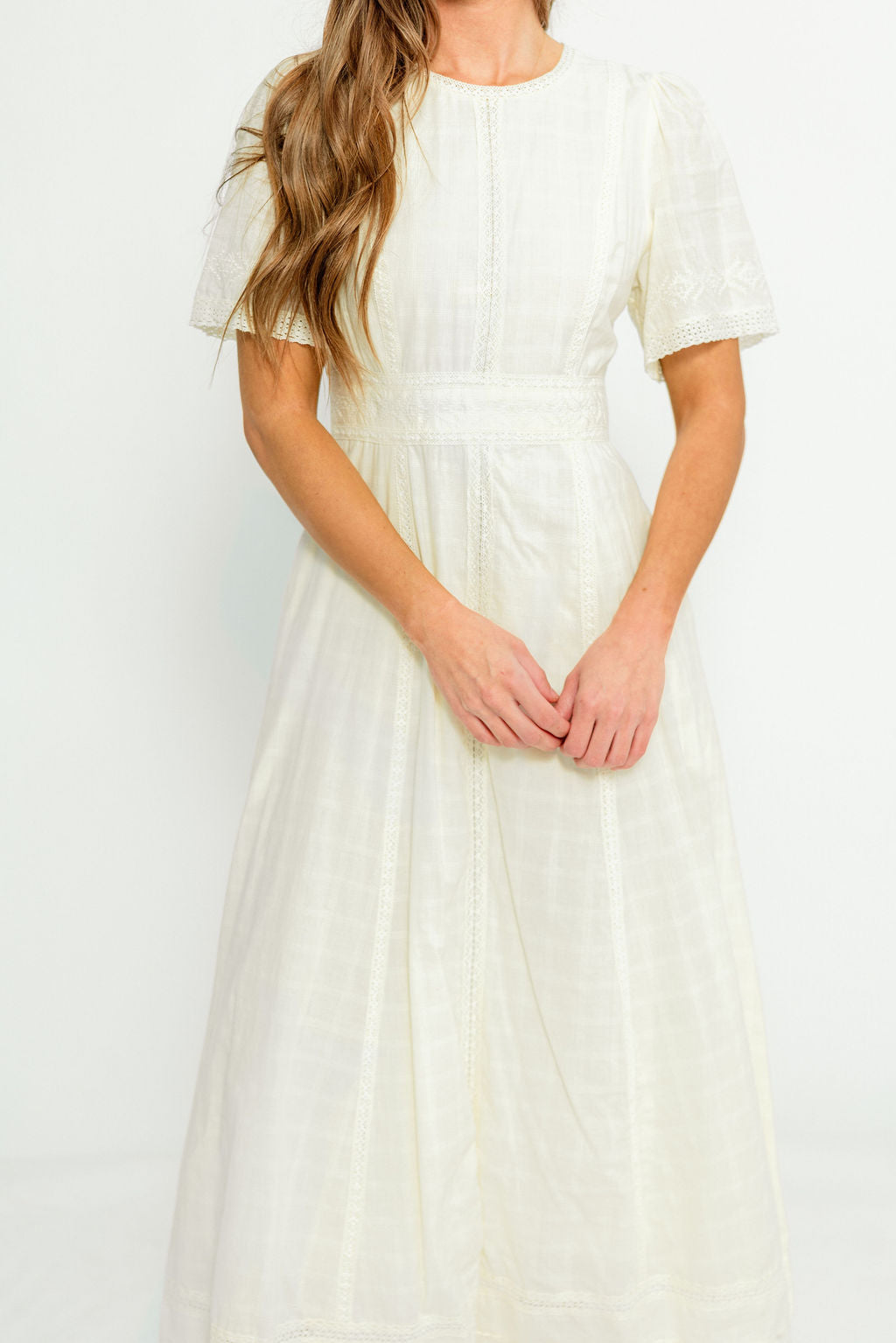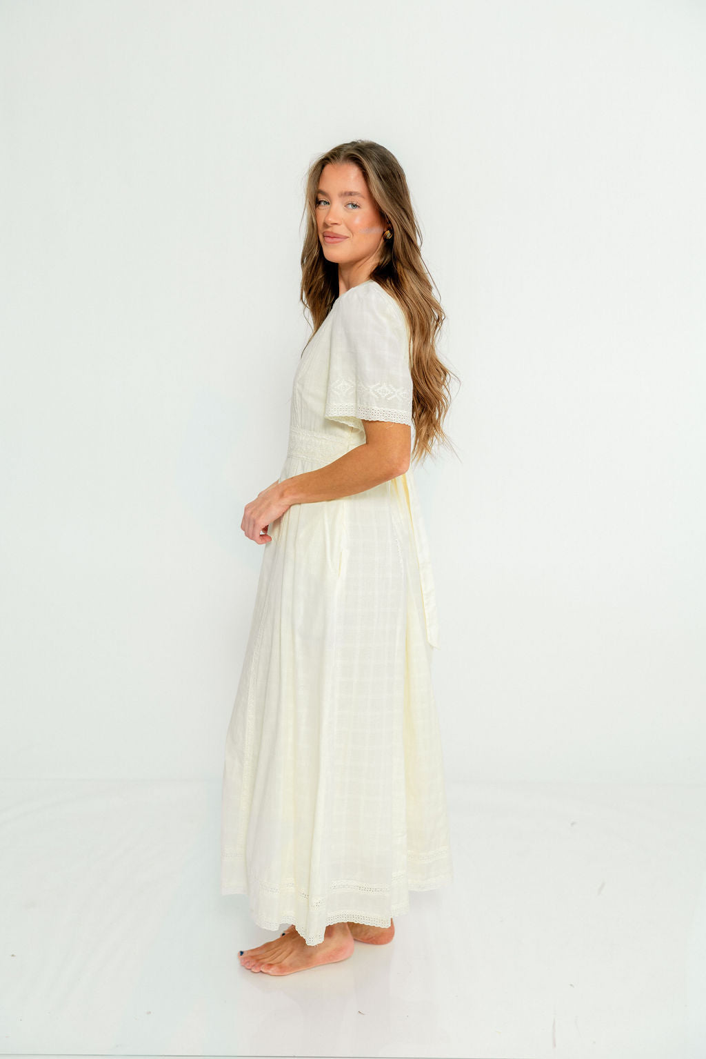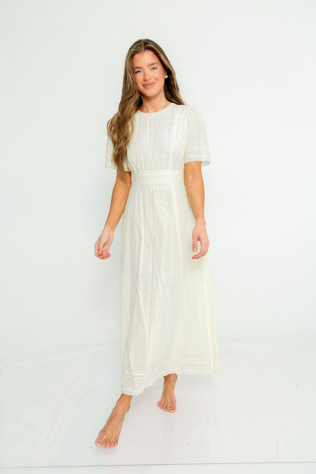 Miriam Cotton Lace Inset Maxi Dress in Buttercream