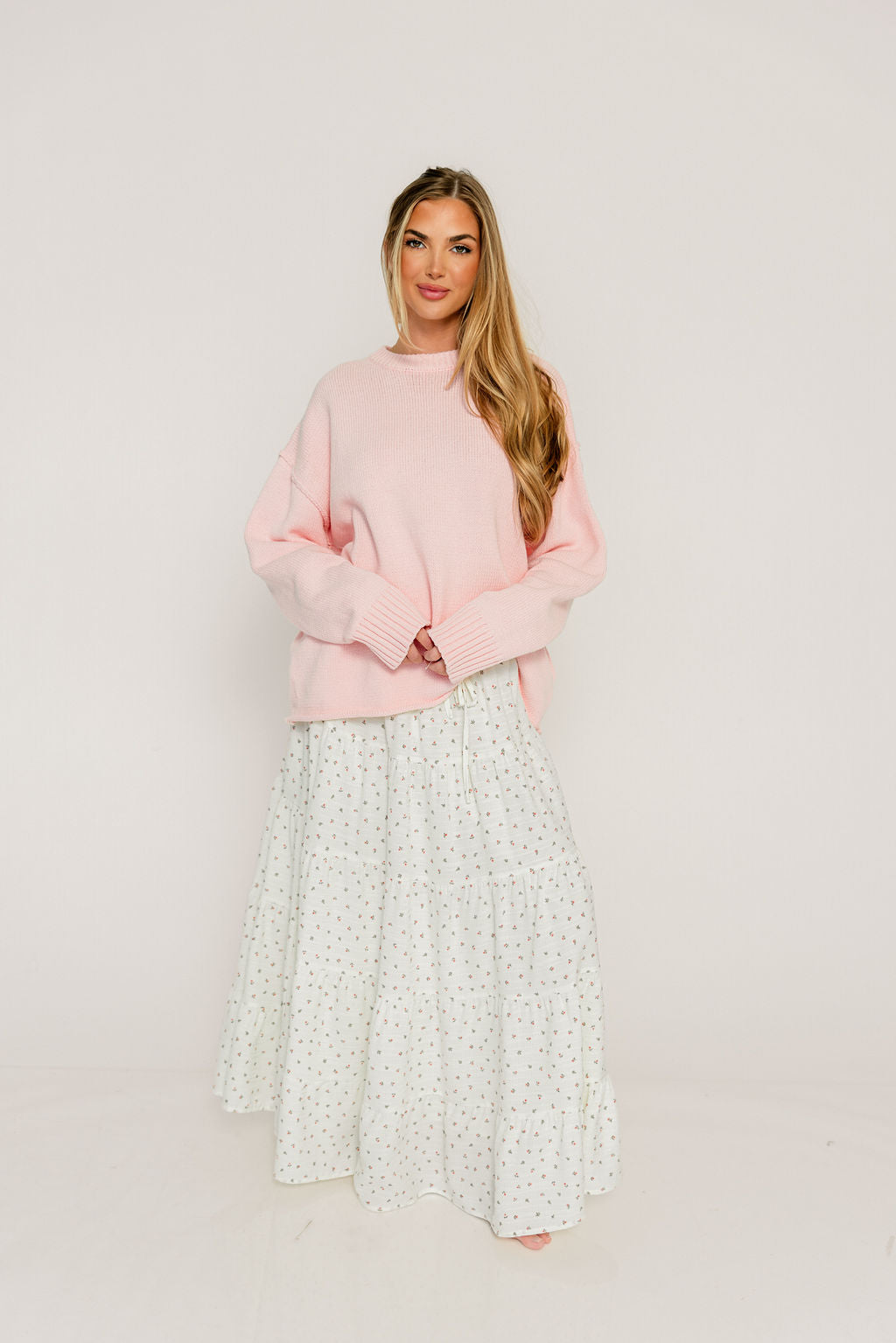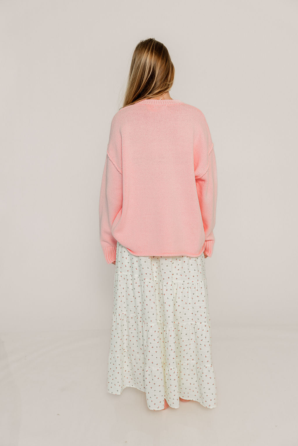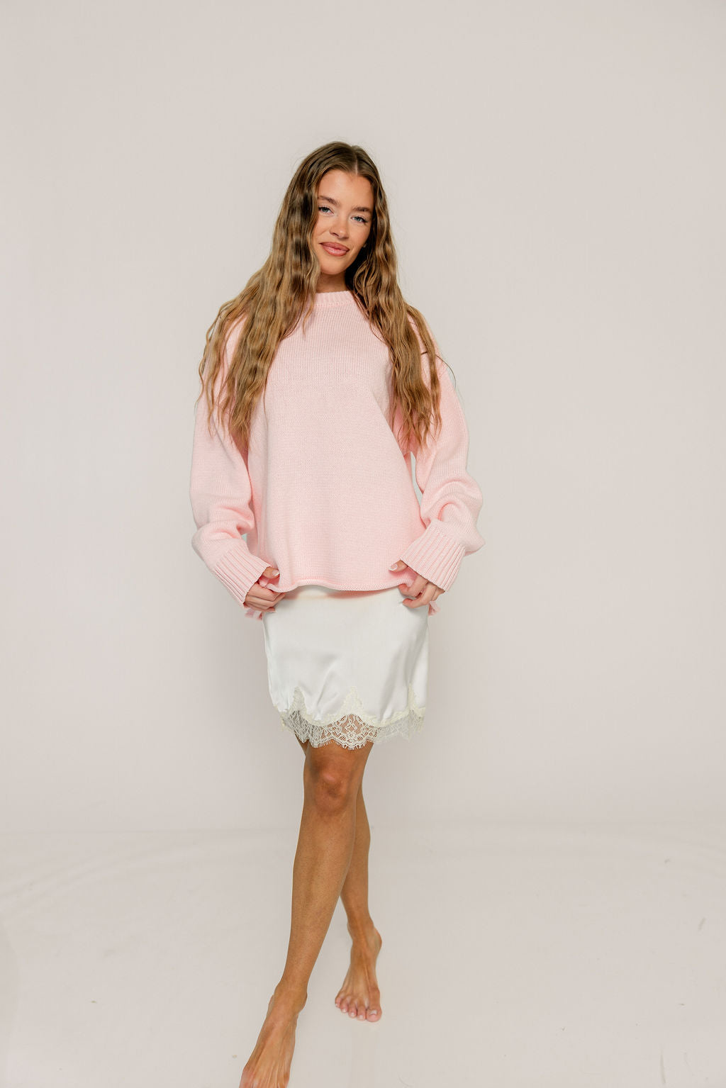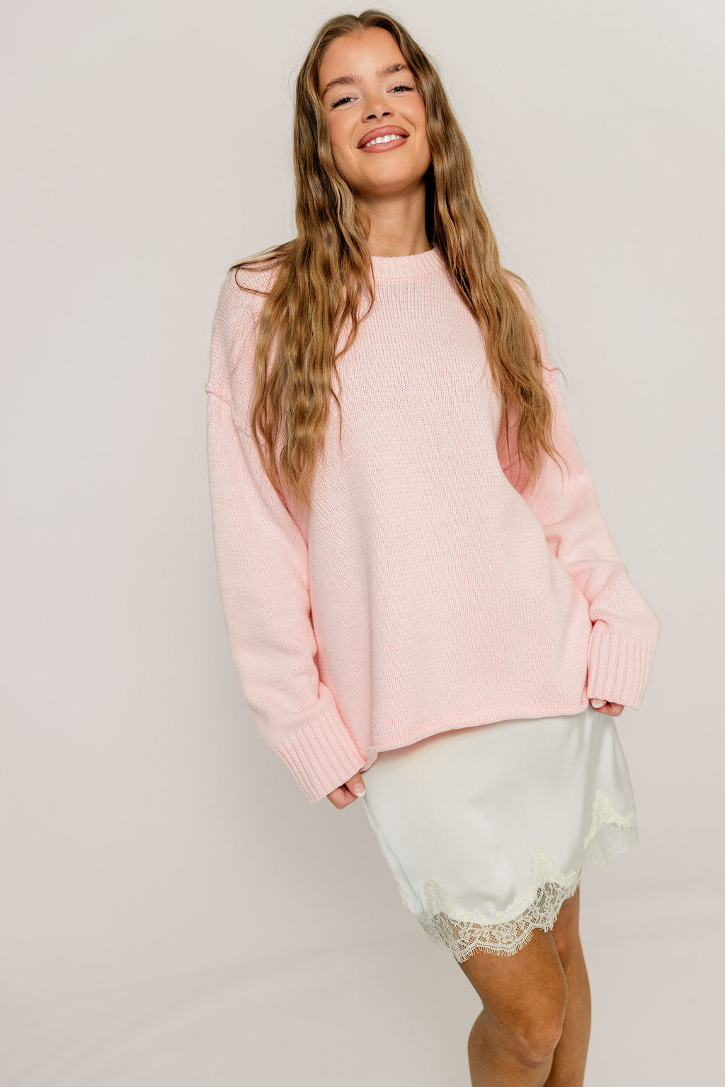 Luna Relaxed Boyfriend Fit Crew Neck Sweater in Pink