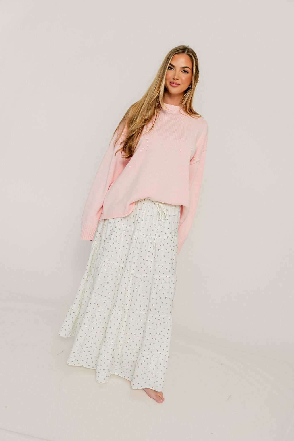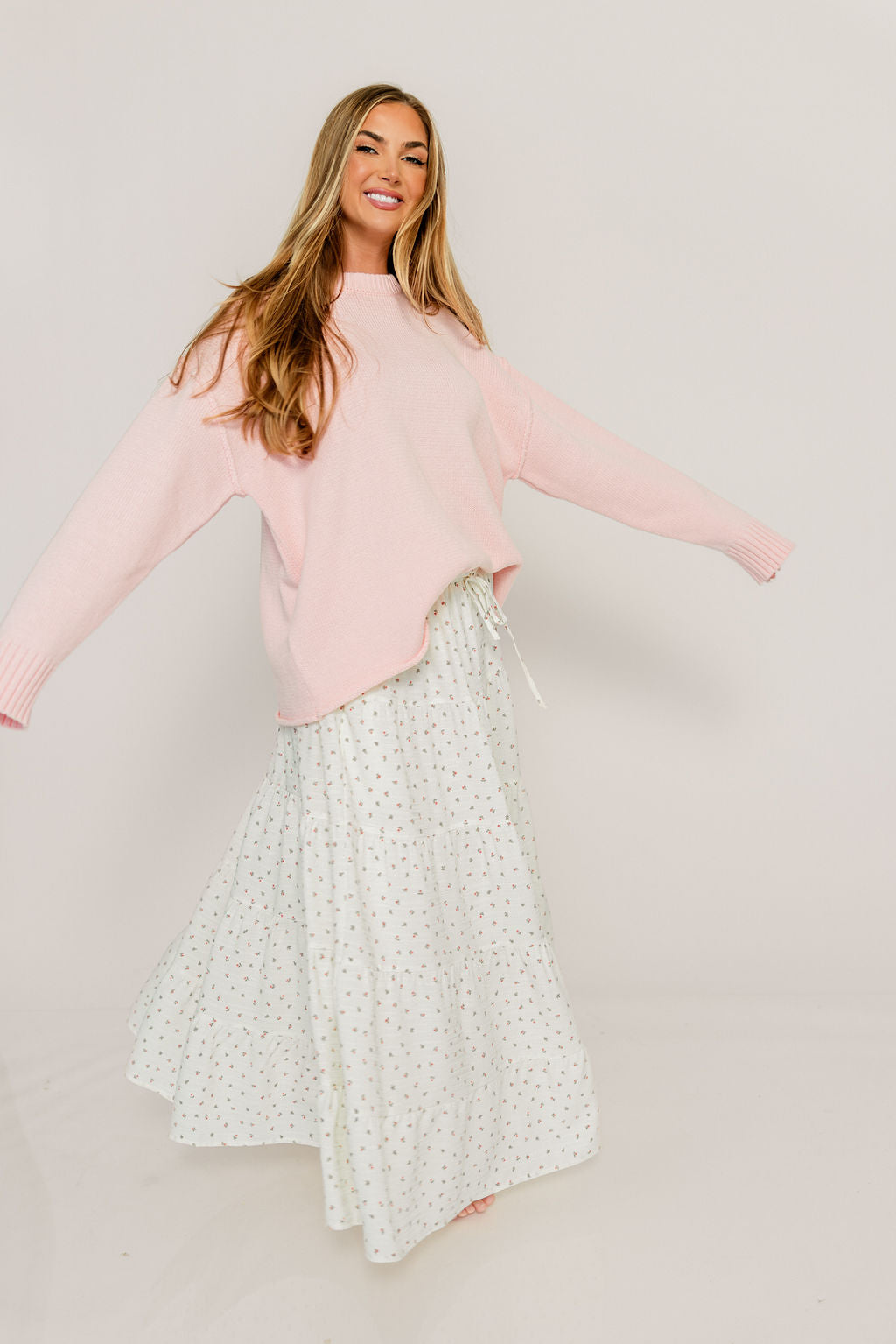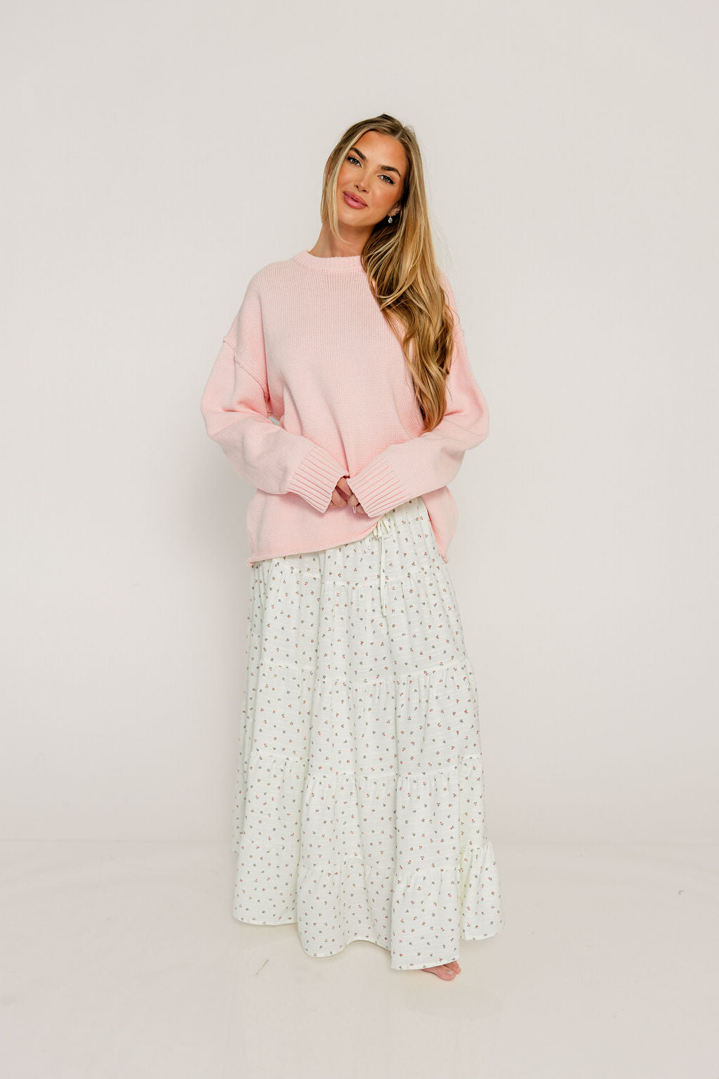 Luna Relaxed Boyfriend Fit Crew Neck Sweater in Pink