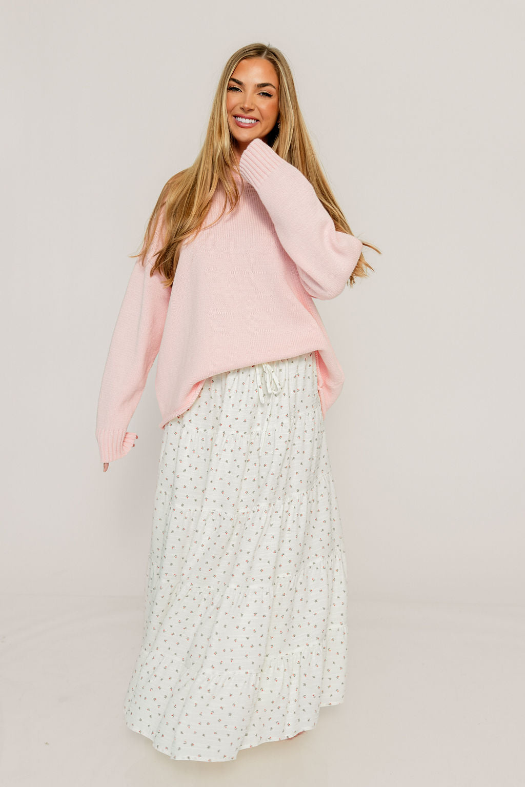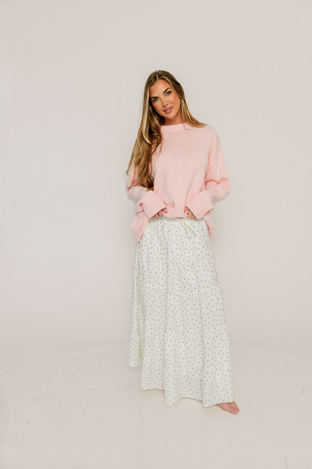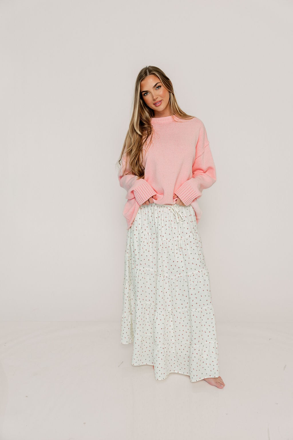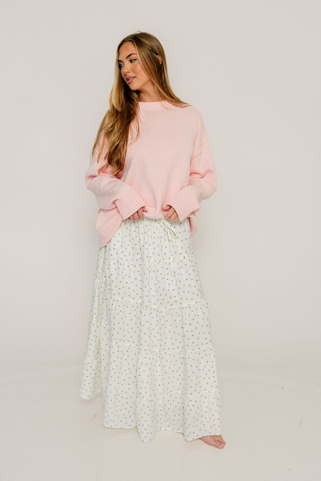 Luna Relaxed Boyfriend Fit Crew Neck Sweater in Pink