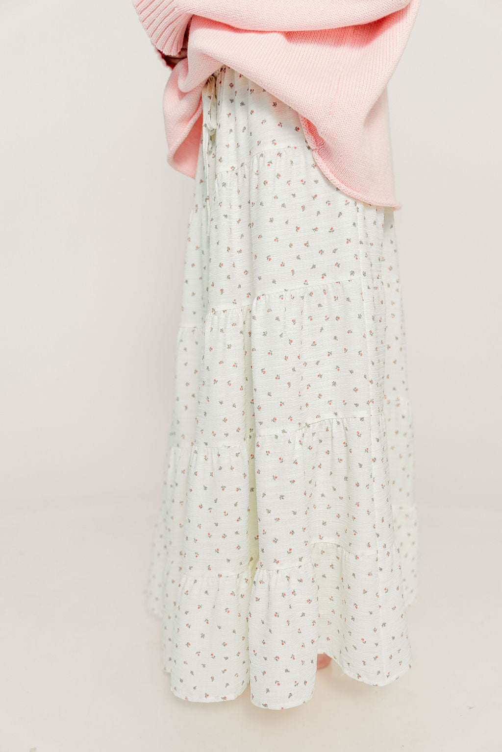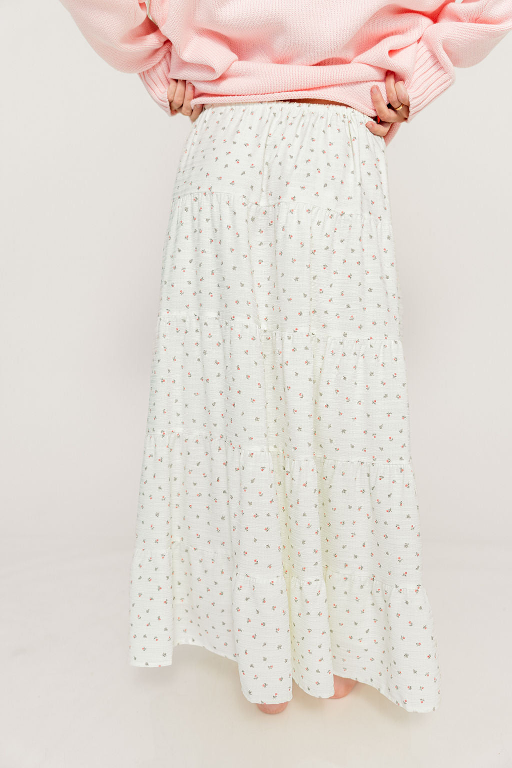 Alma Floral Print Tiered Maxi Skirt in Ivory Multi