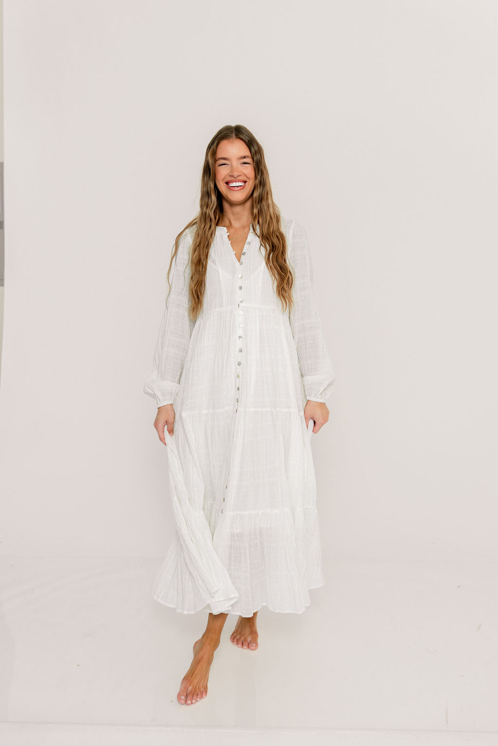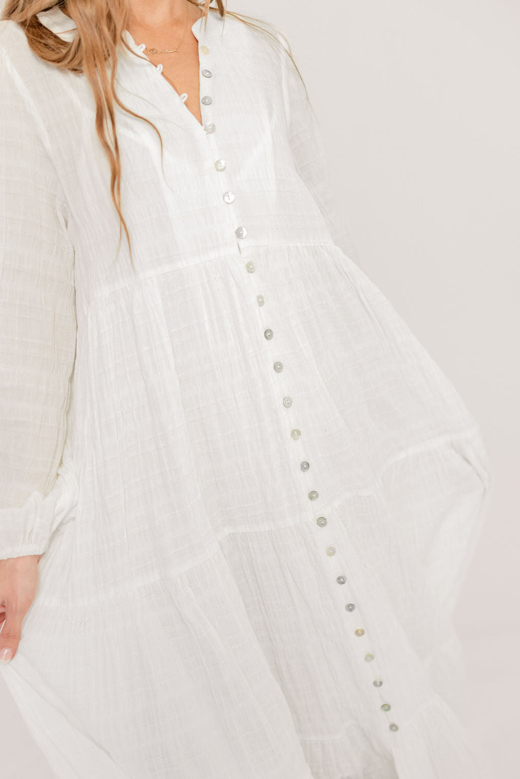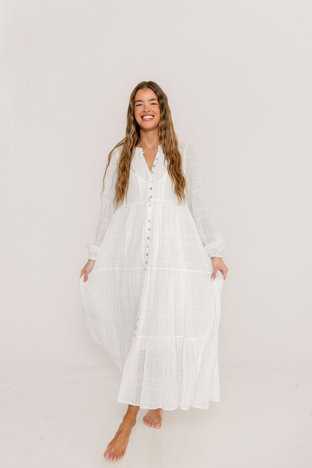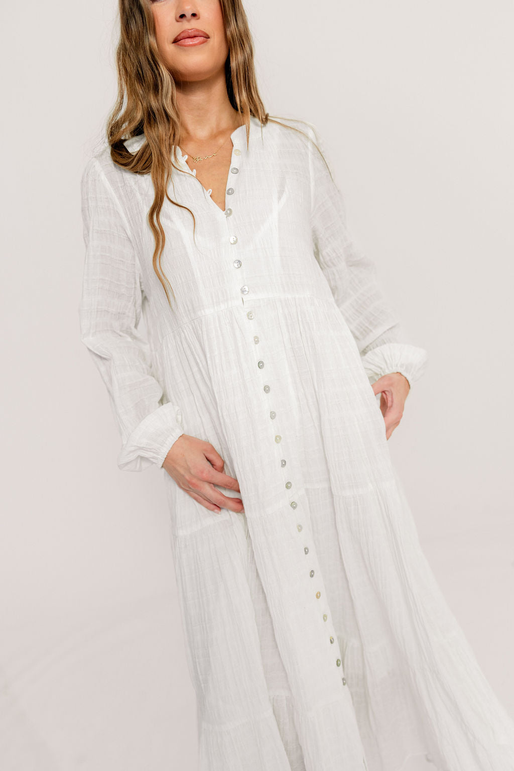 Anna Cotton-Blend Button Down Maxi Dress in Ivory - Bump Friendly *2/5 PRE-ORDER*