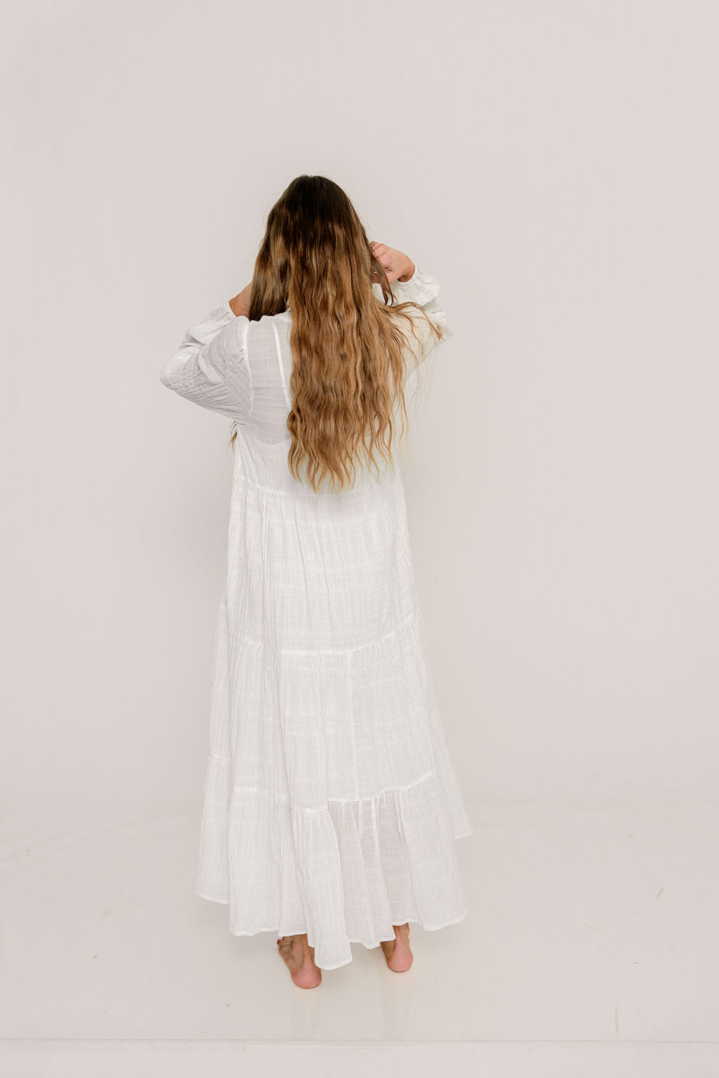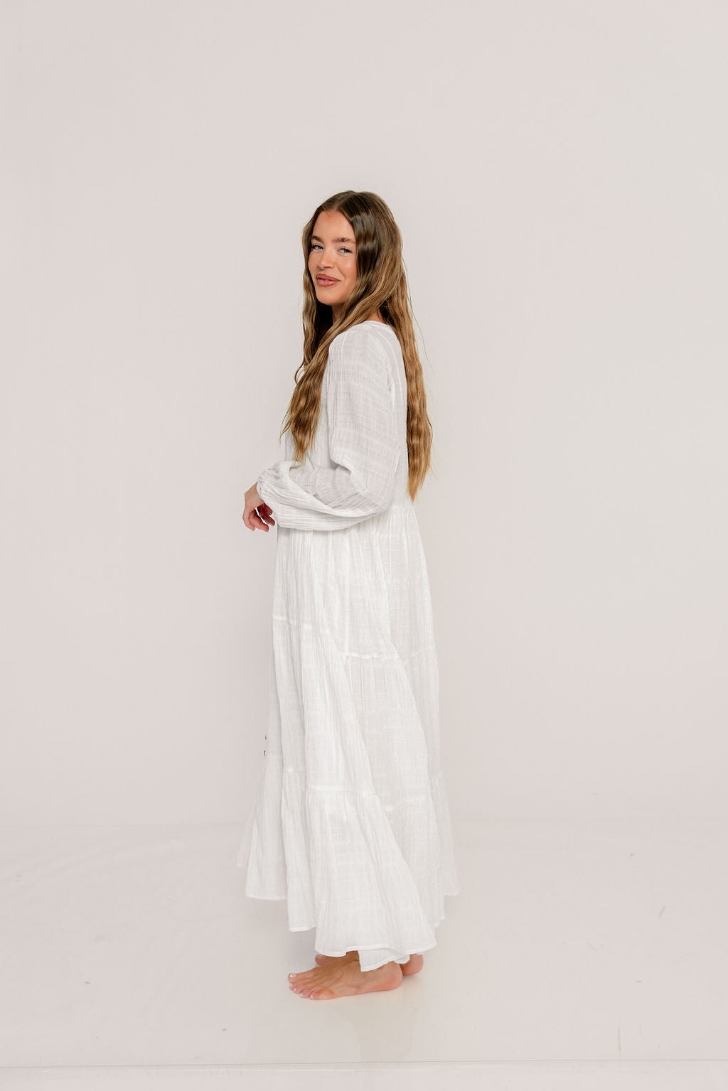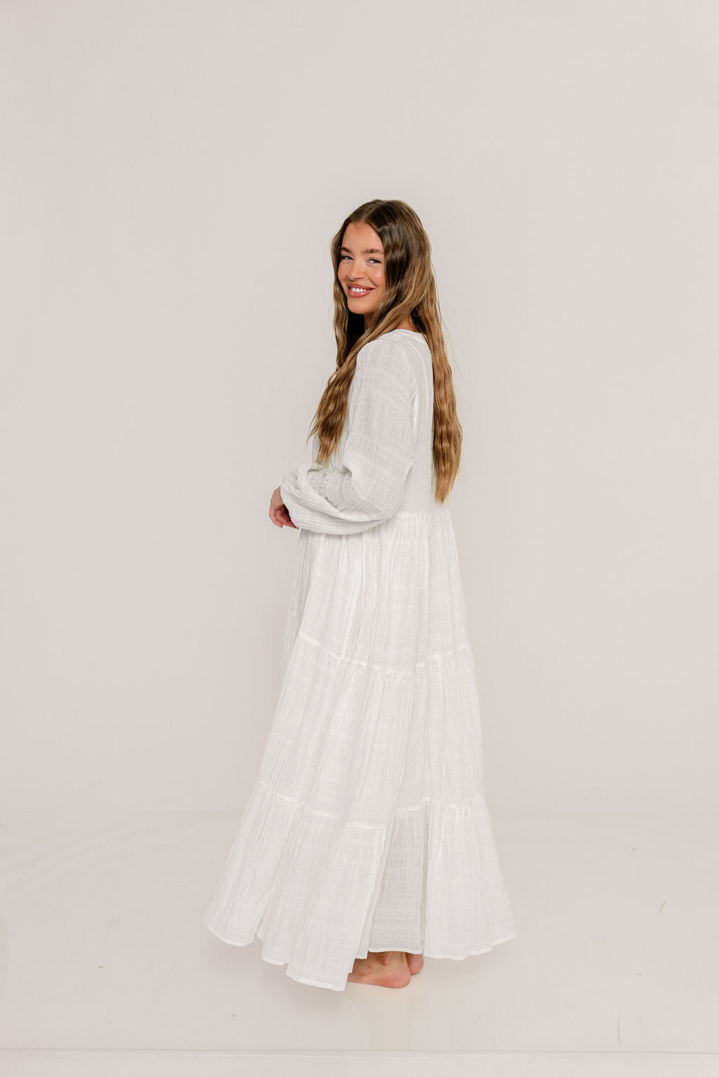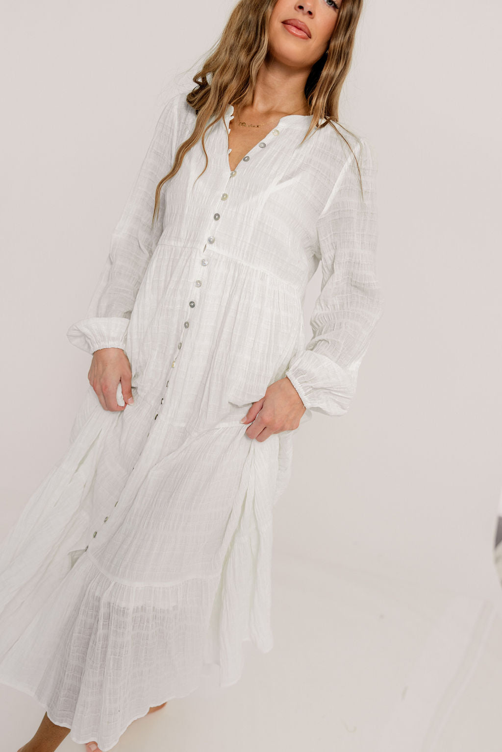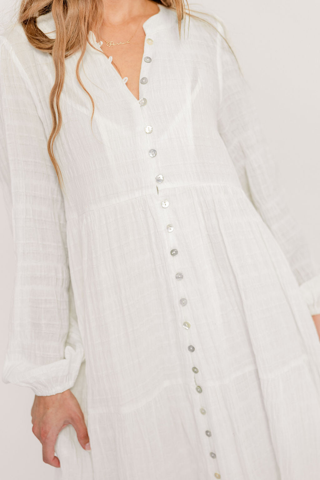 Anna Cotton-Blend Button Down Maxi Dress in Ivory - Bump Friendly *2/5 PRE-ORDER*