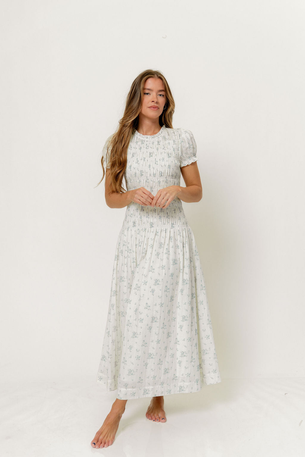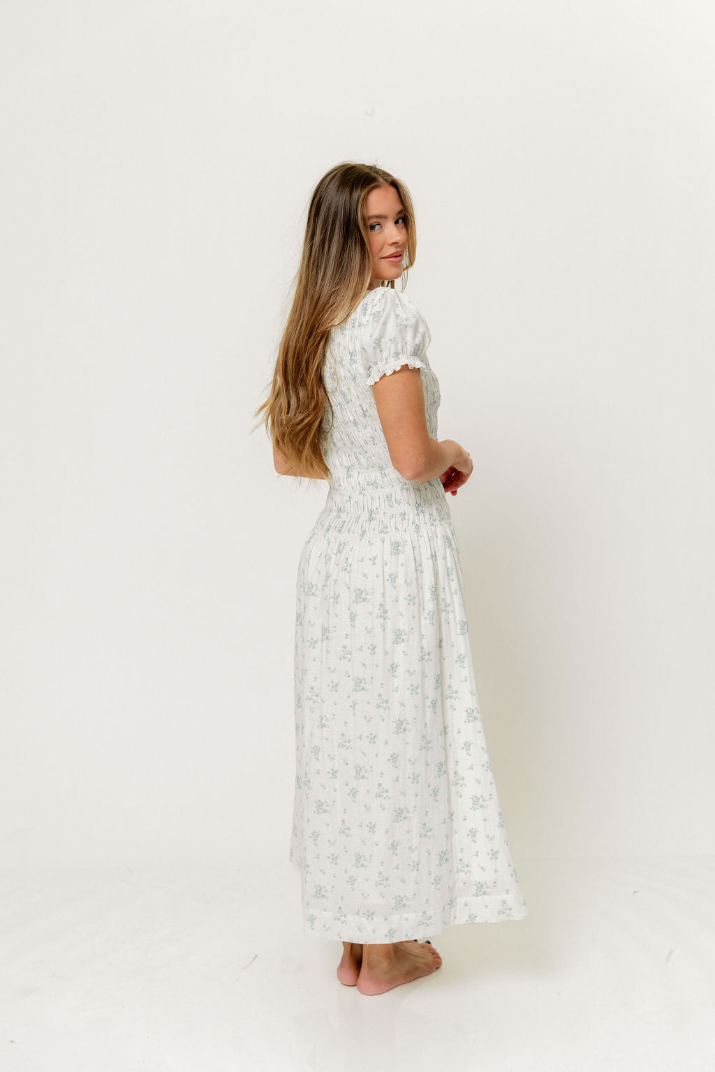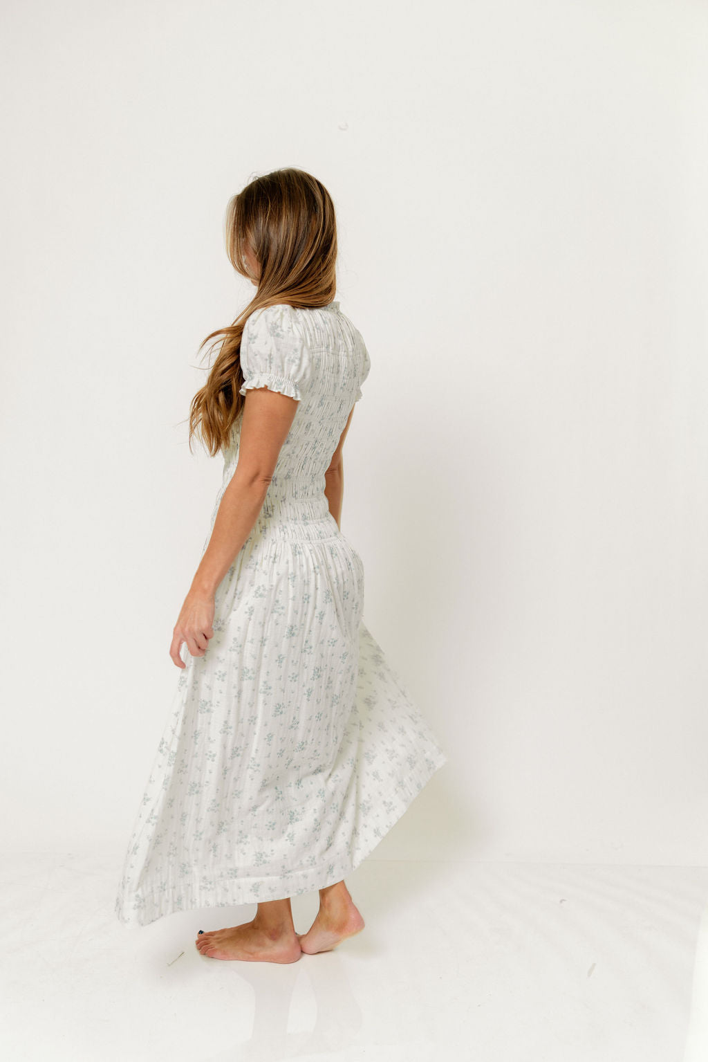 Cecilia 100% Cotton Smocked Maxi Dress in Wisteria Foliage - Bump Friendly *2/11 PRE-ORDER*