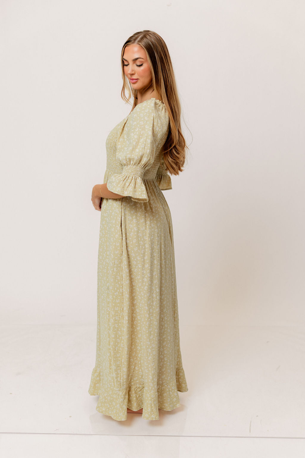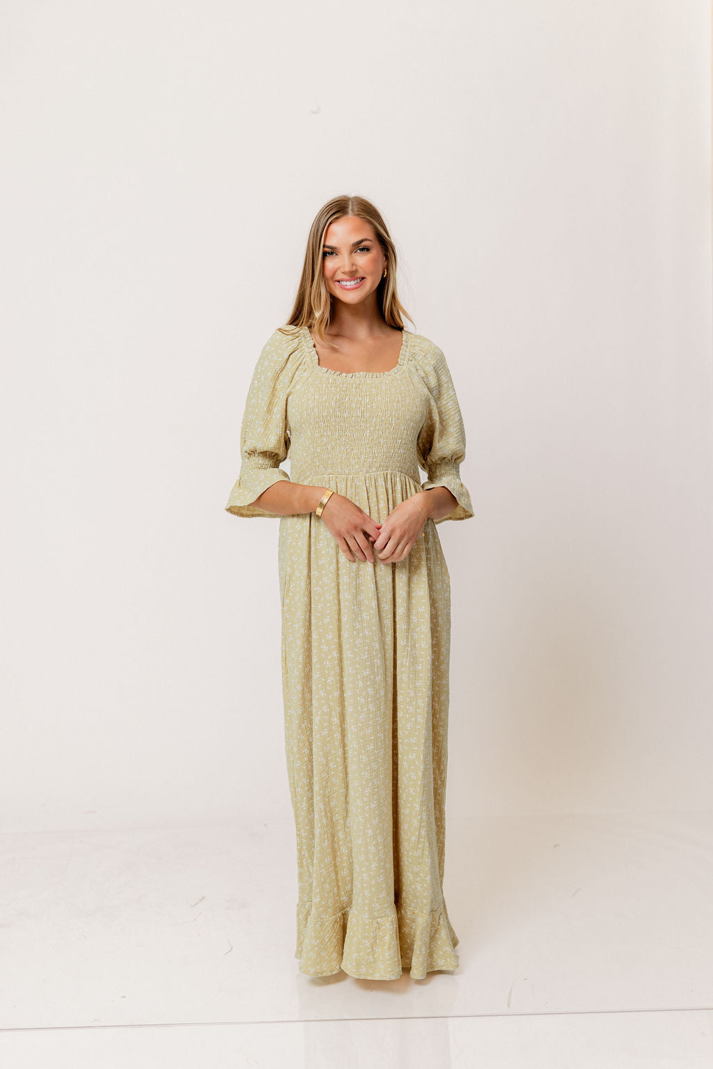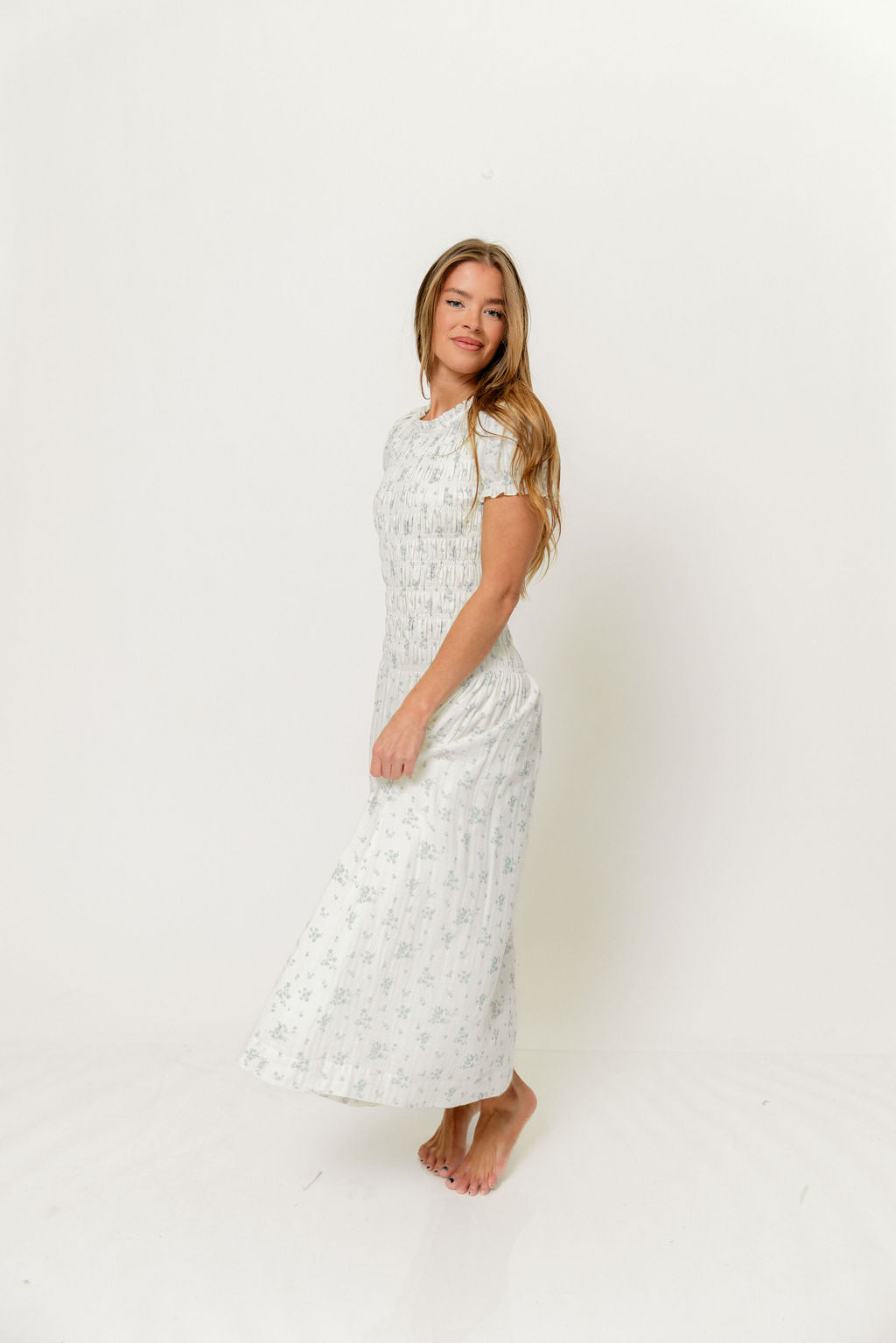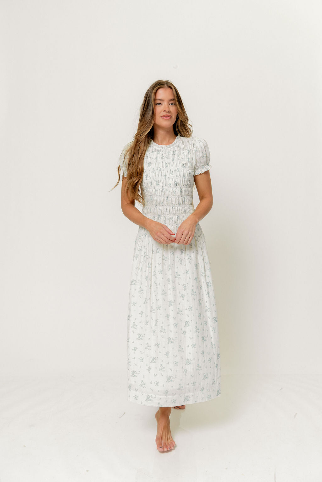 Cecilia 100% Cotton Smocked Maxi Dress in Green Haze Foliage - Bump Friendly *2/11 PRE-ORDER*