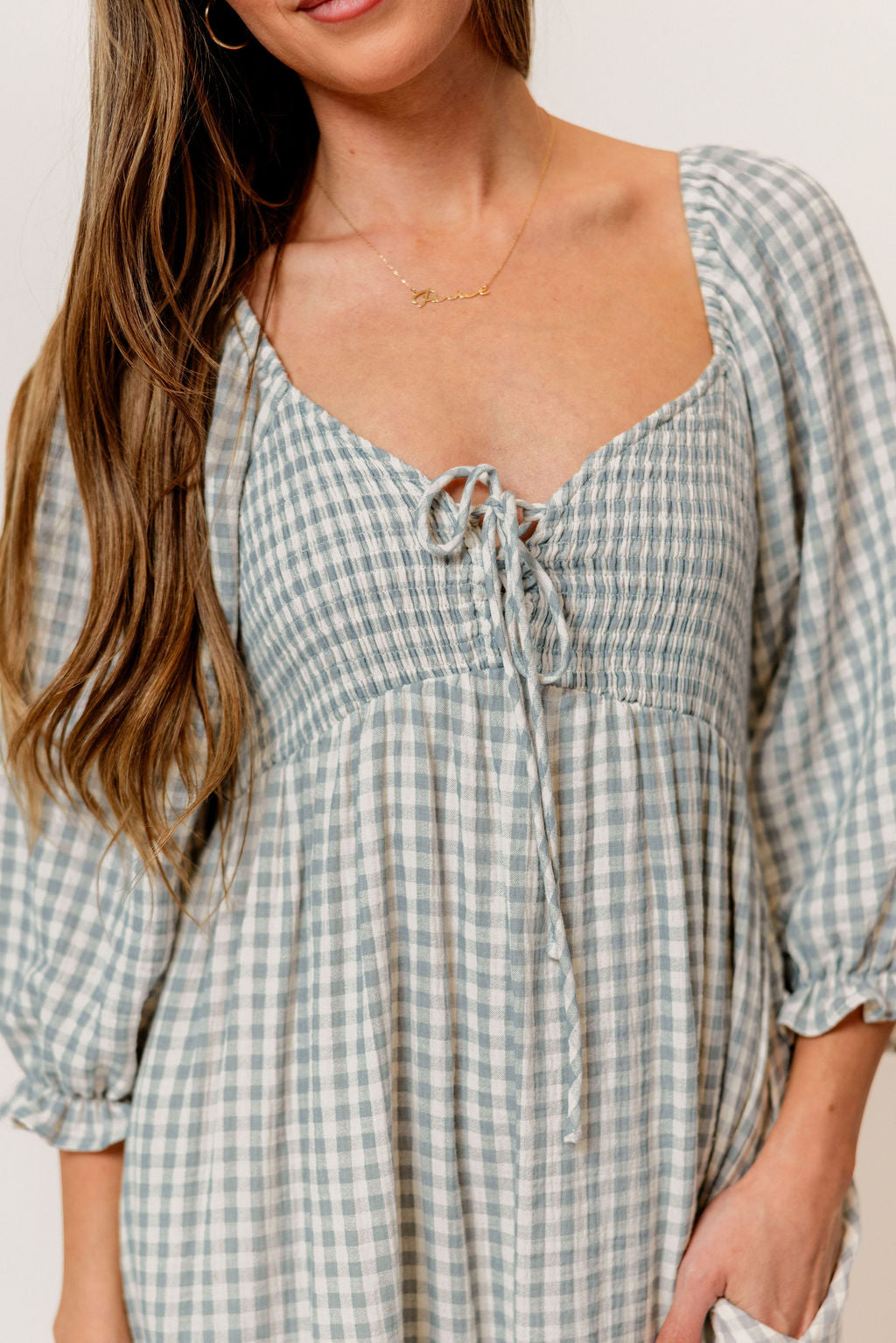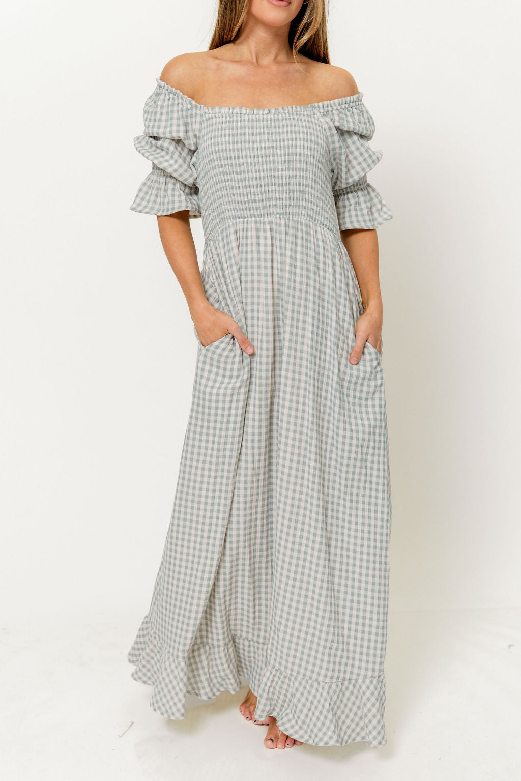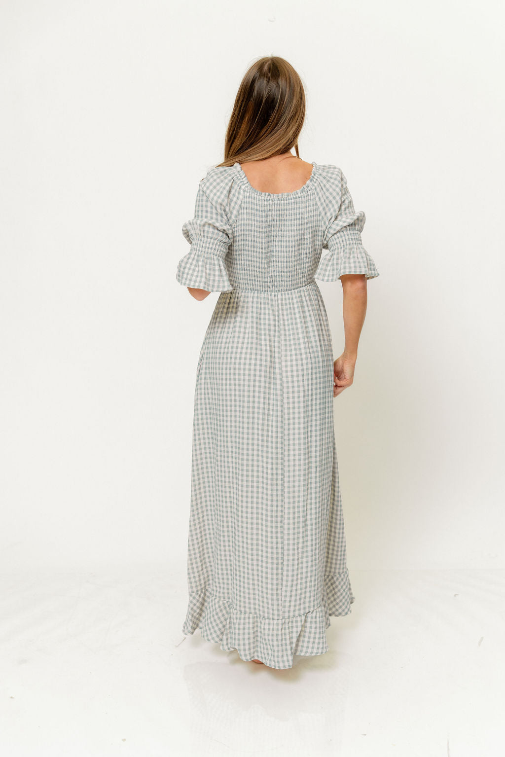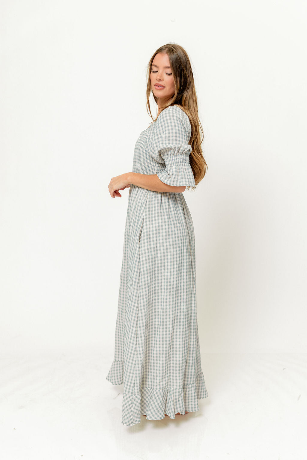 Sienna 100% Cotton Puff Sleeve Maxi Dress in Aqua Plaid (Lined) - Bump Friendly *2/12 PRE-ORDER*