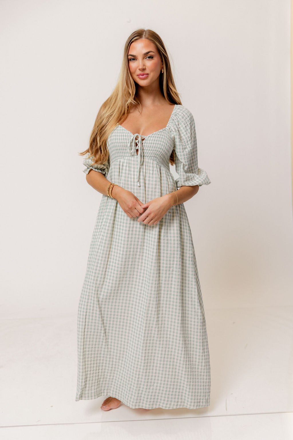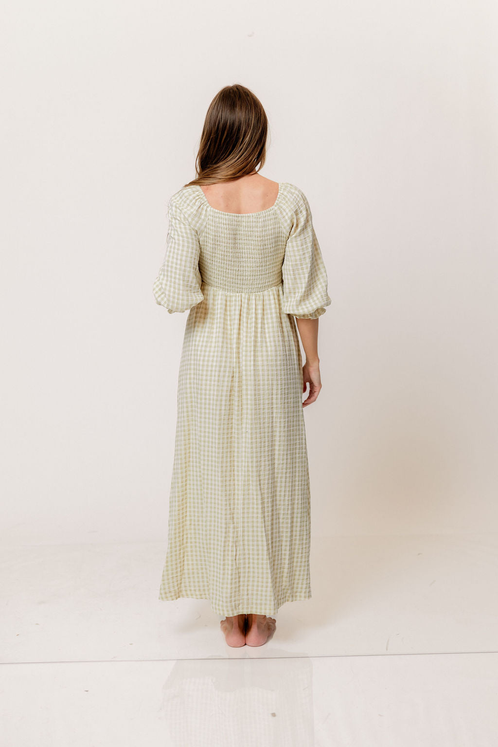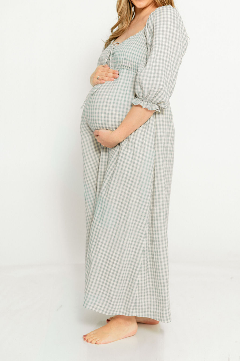 Sienna 100% Cotton Puff Sleeve Maxi Dress in Green Haze Plaid (Lined) - Bump Friendly *2/12 PRE-ORDER*