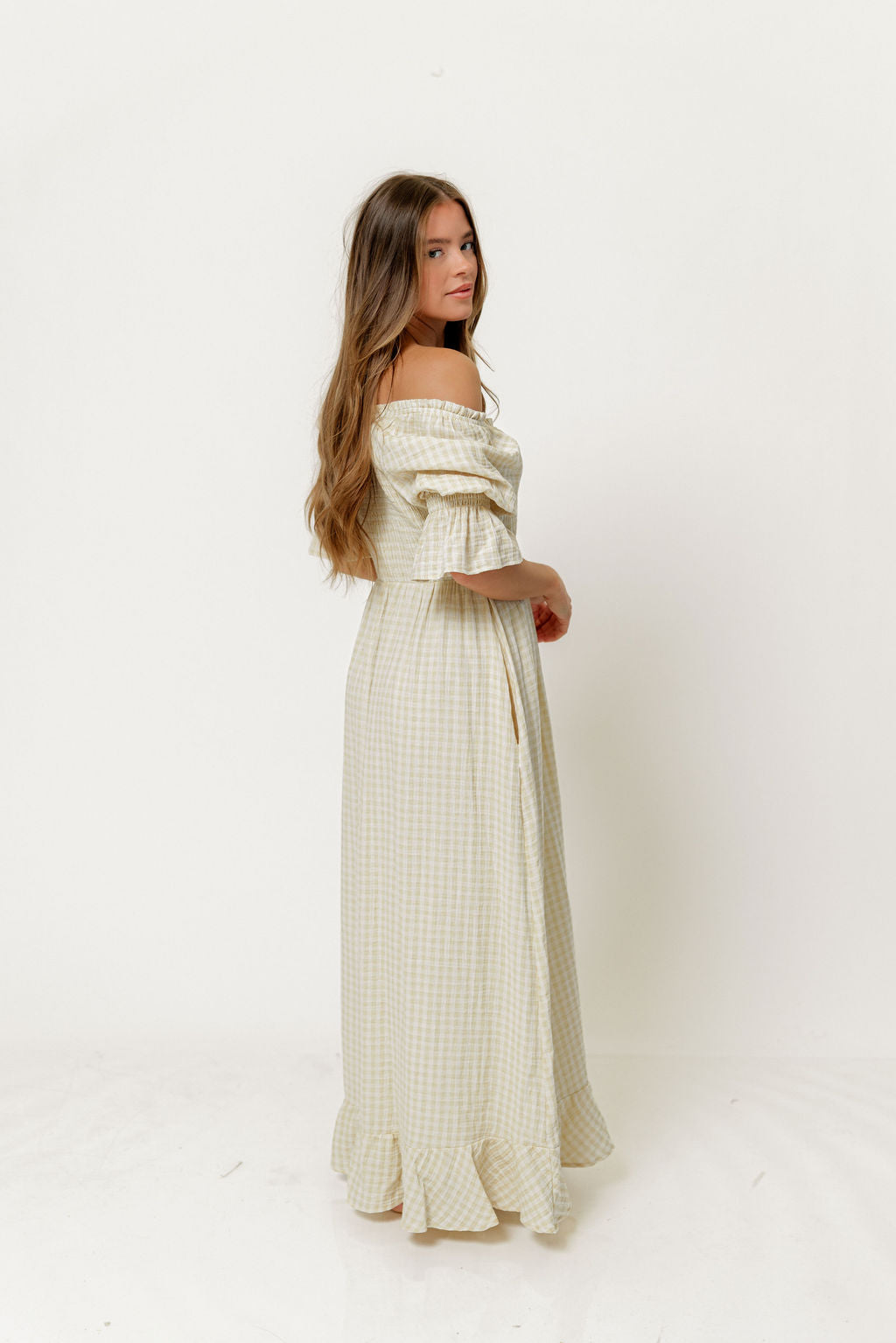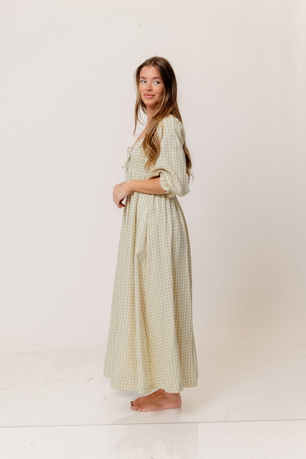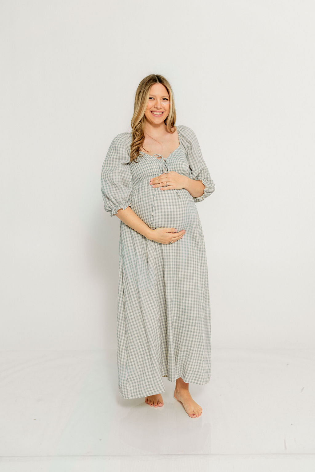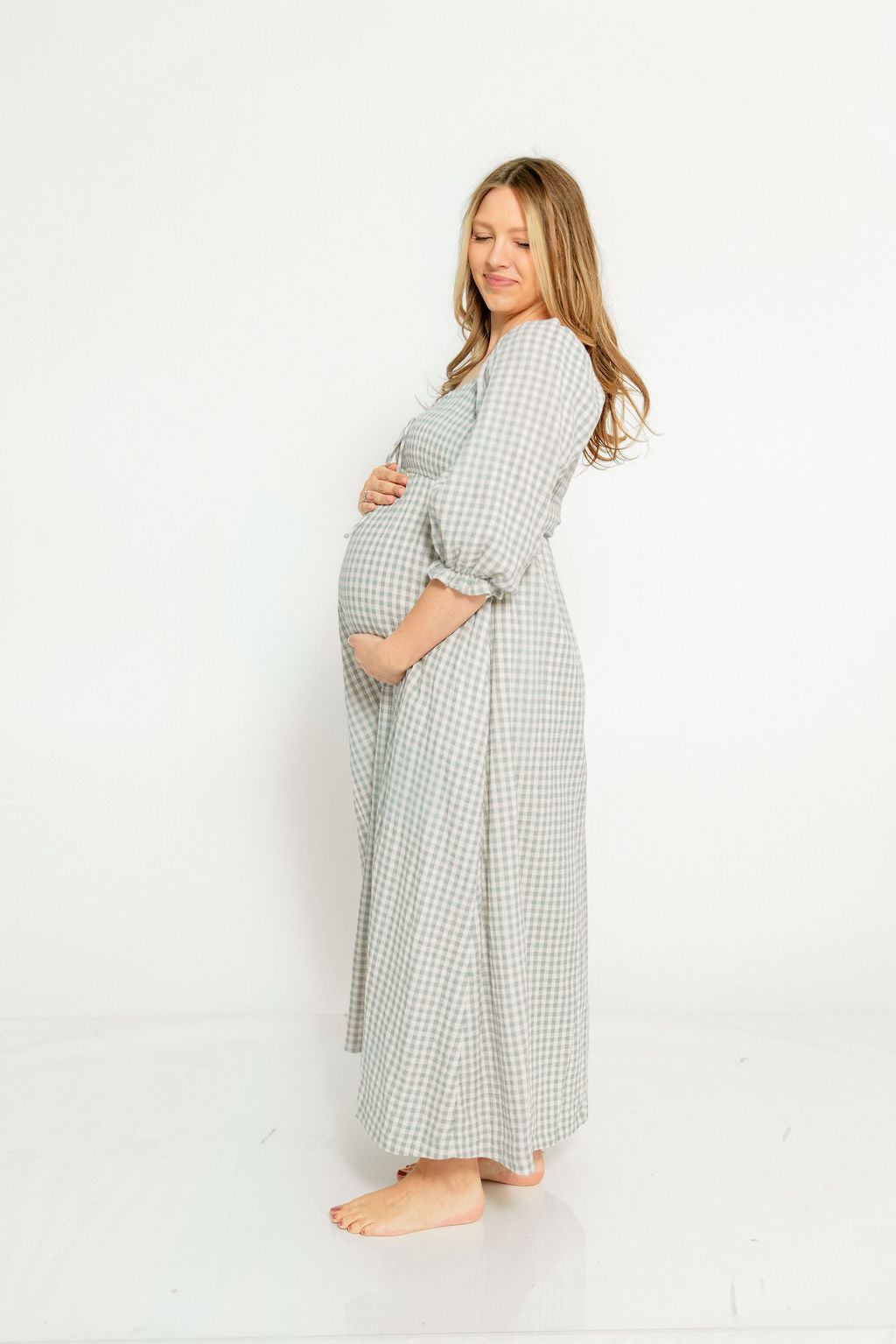 Sienna 100% Cotton Puff Sleeve Maxi Dress in Green Haze Plaid (Lined) - Bump Friendly *2/12 PRE-ORDER*