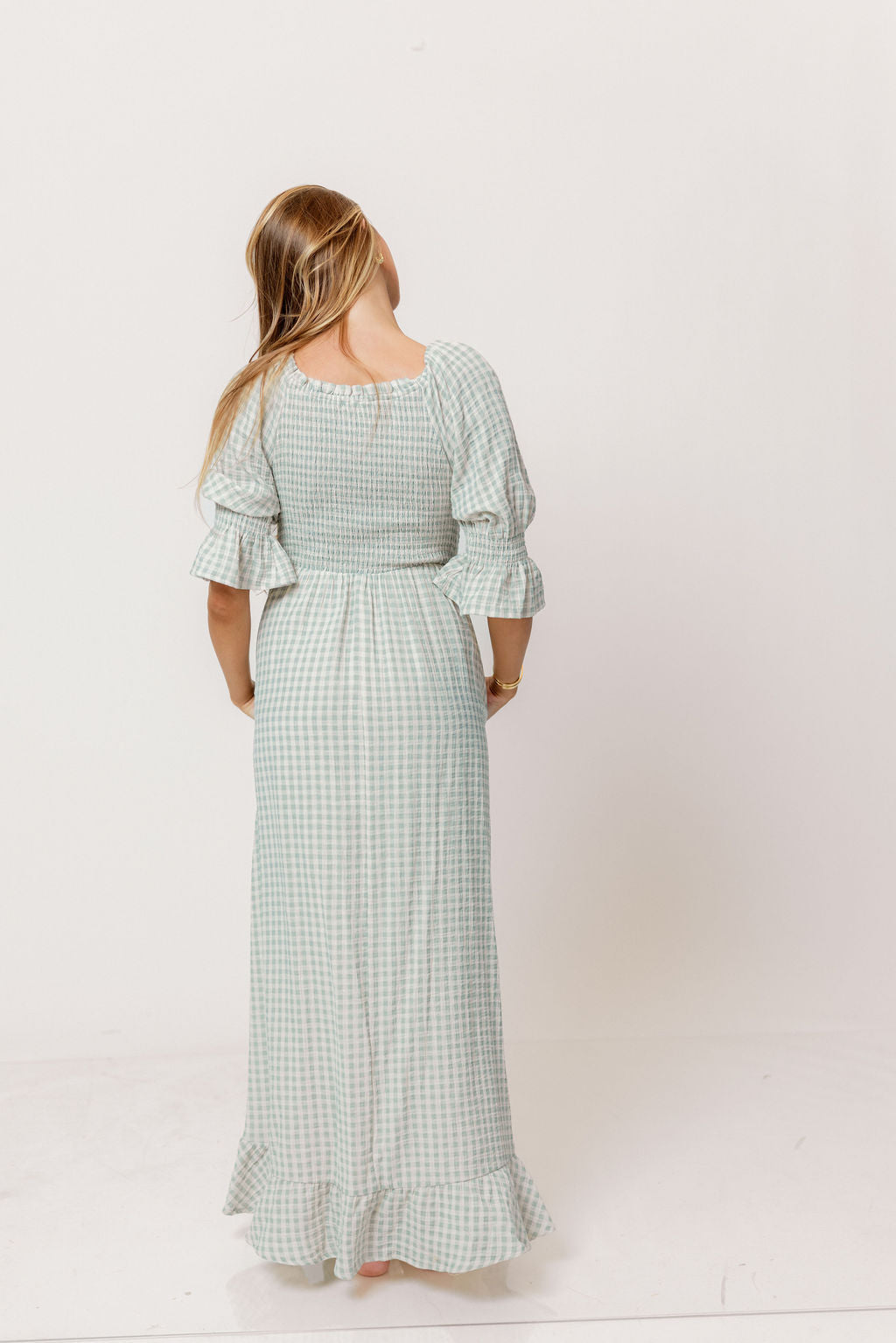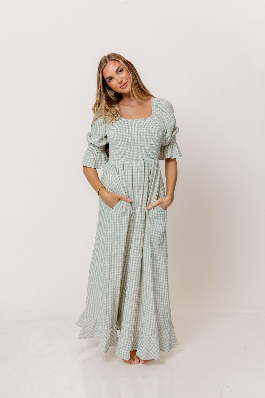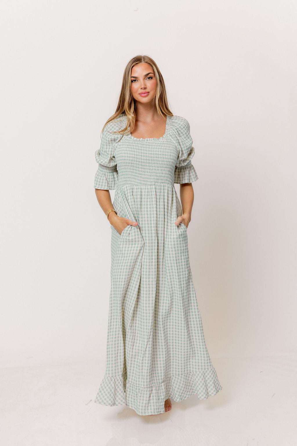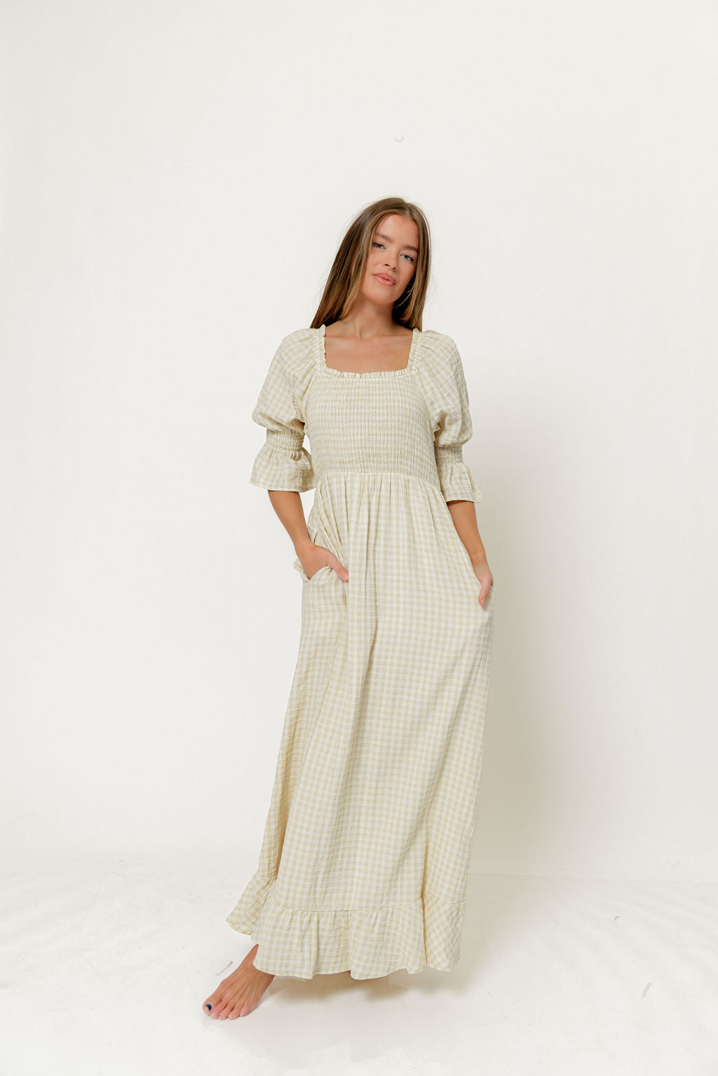 Cecilia 100% Cotton Smocked Maxi Dress in Green Haze Plaid (Lined) - Bump Friendly *2/11 PRE-ORDER*