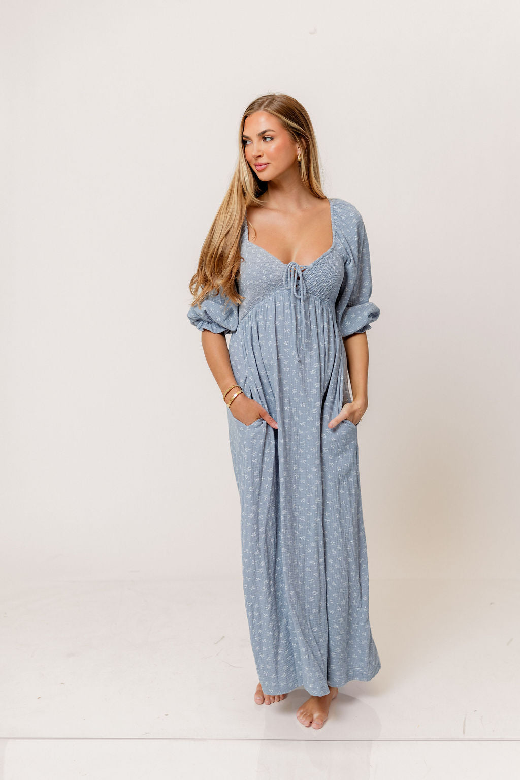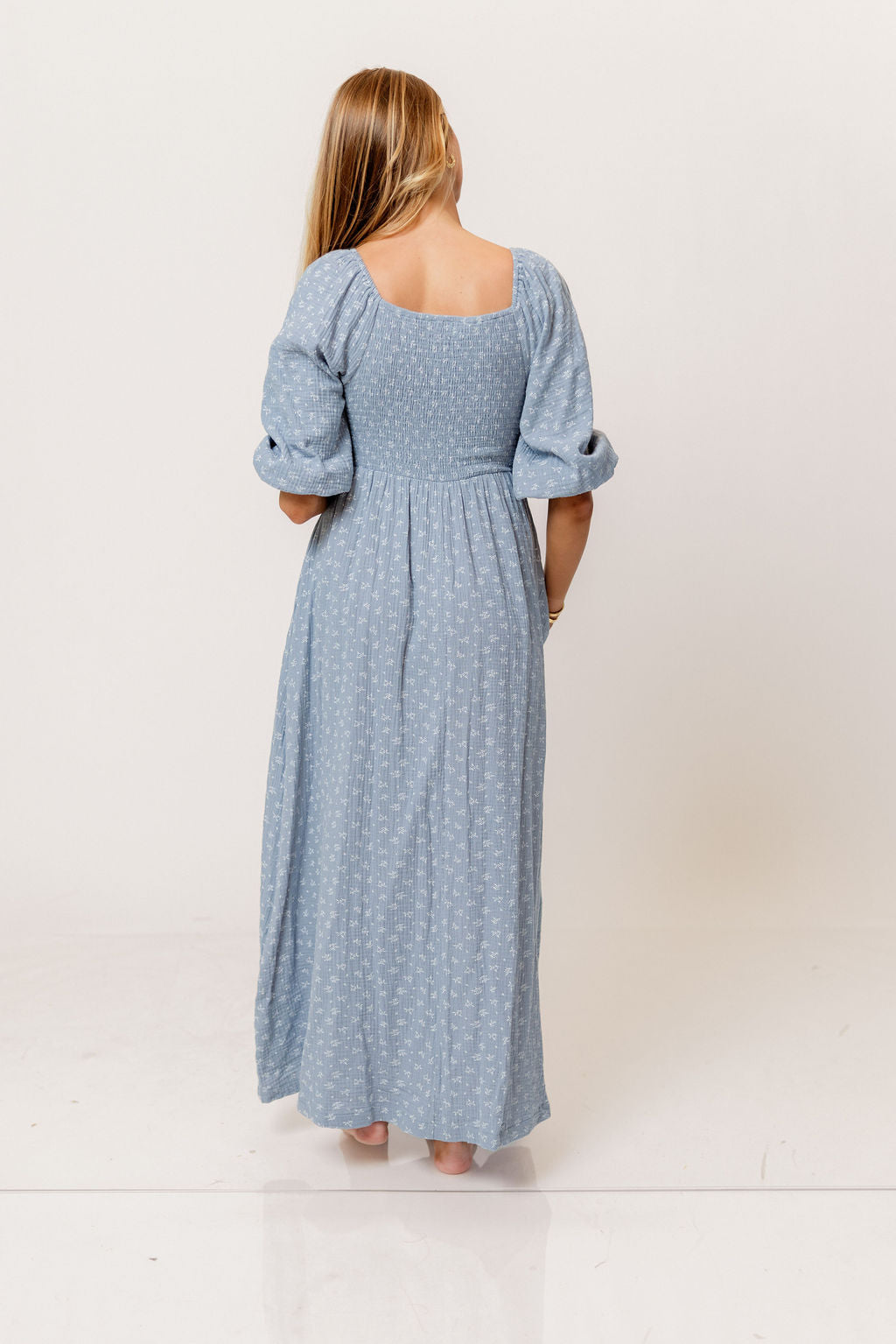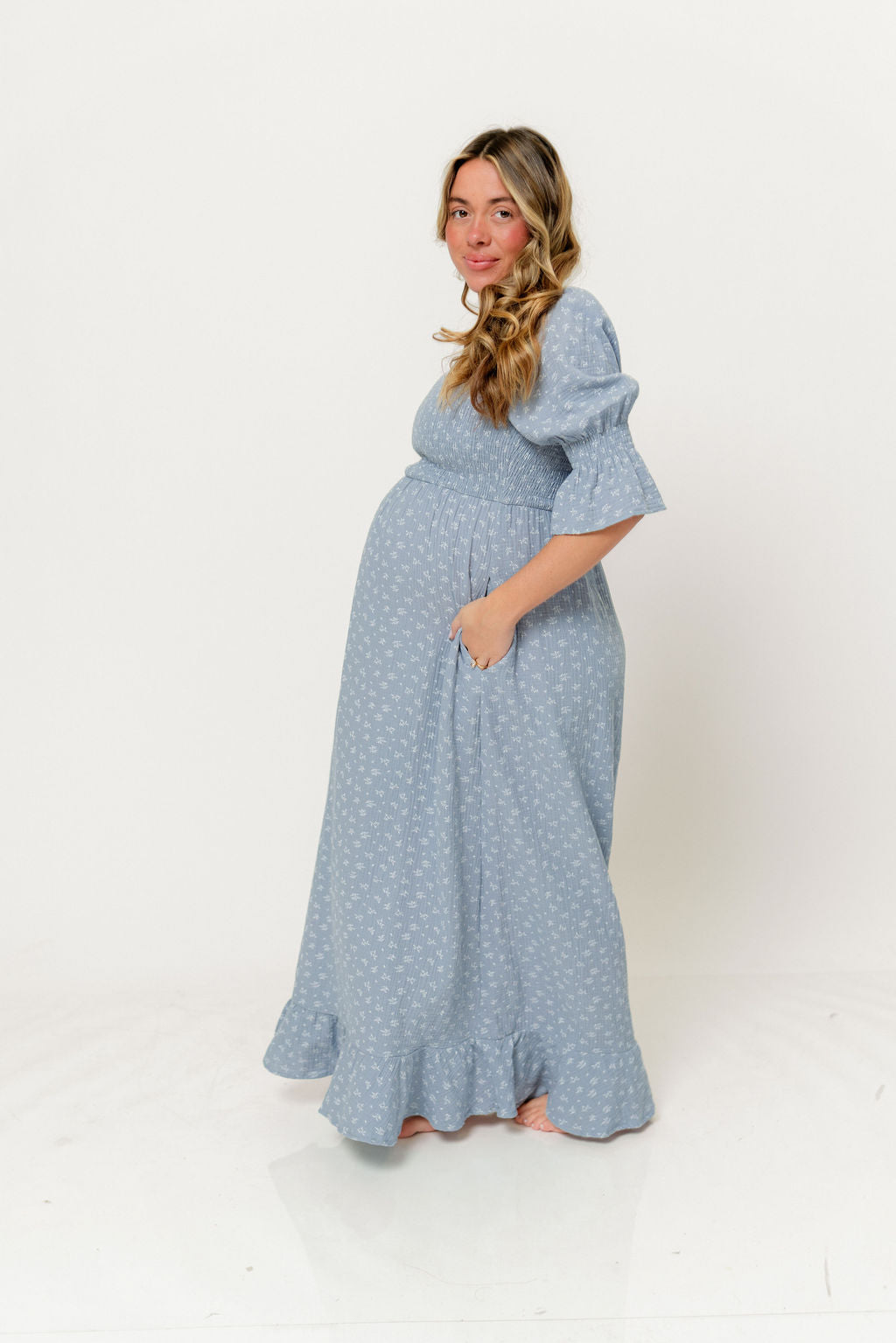 Orchard 100% Cotton Smocked Maxi Dress in Blue - Bump Friendly