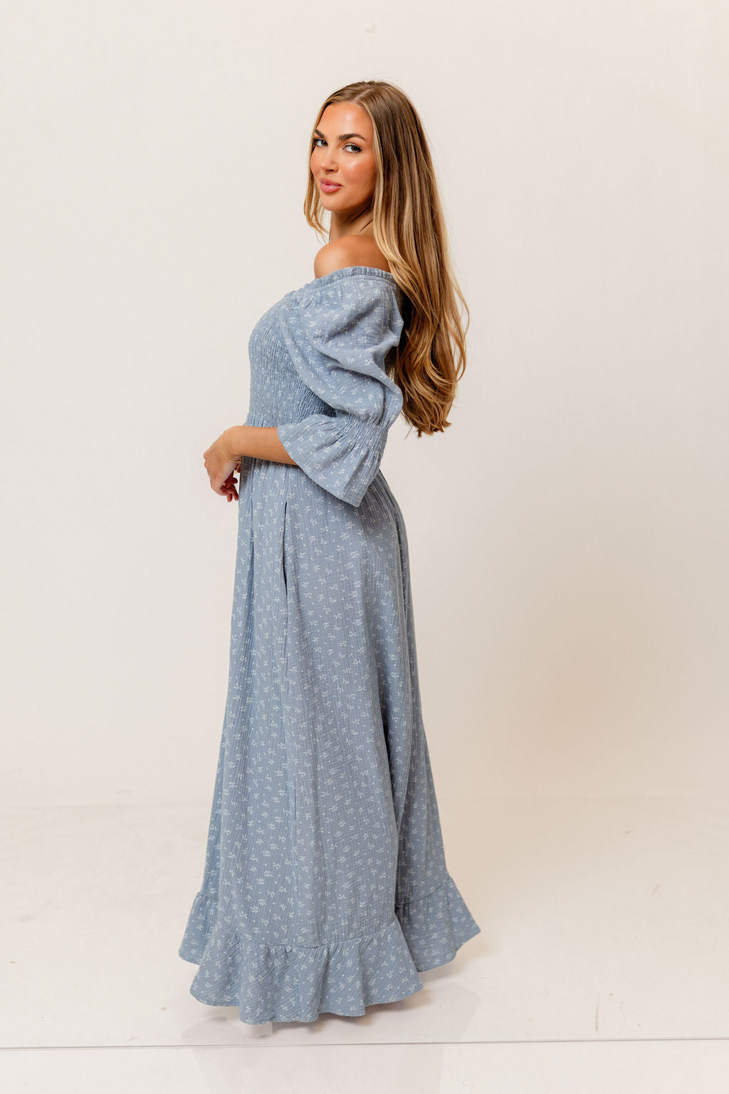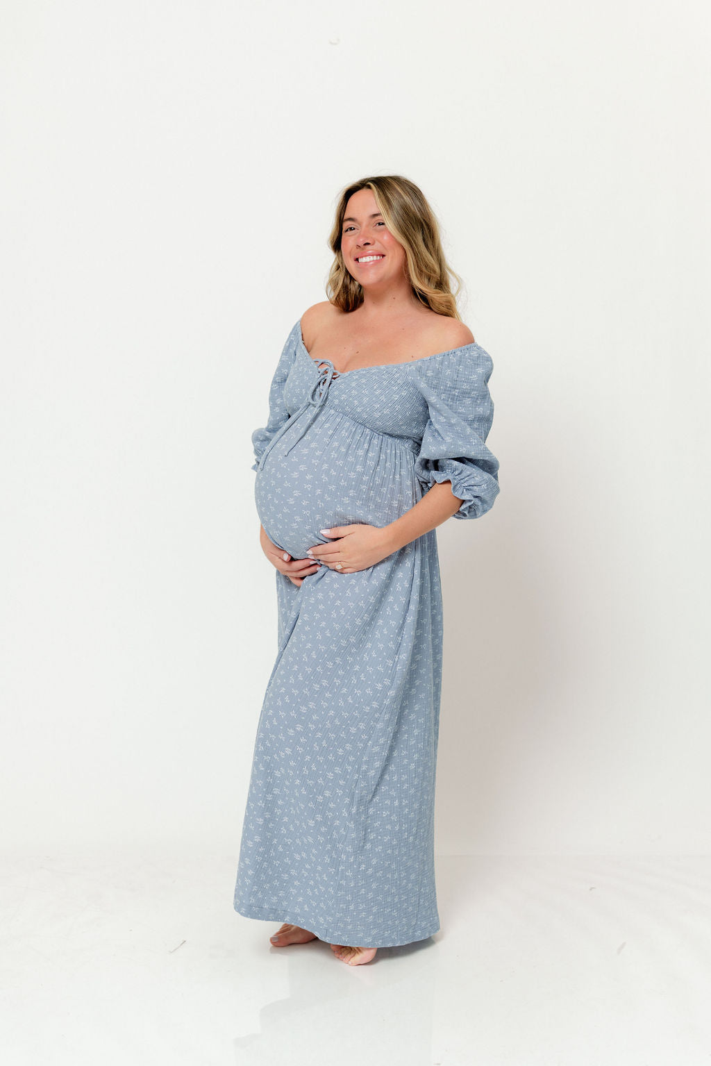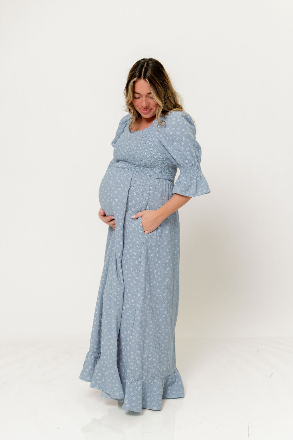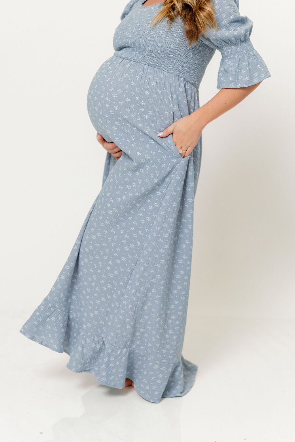 Orchard 100% Cotton Smocked Maxi Dress in Blue - Bump Friendly