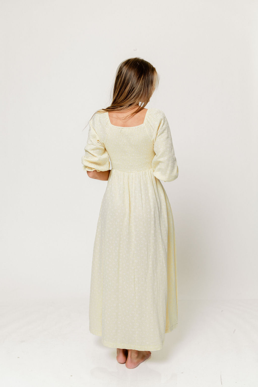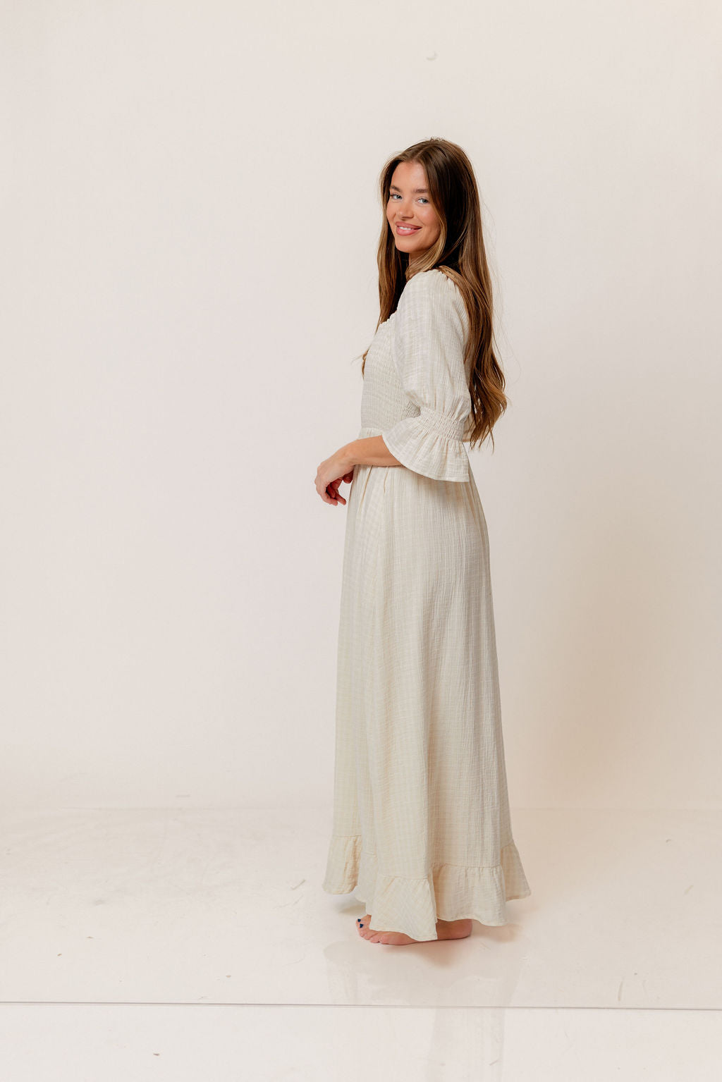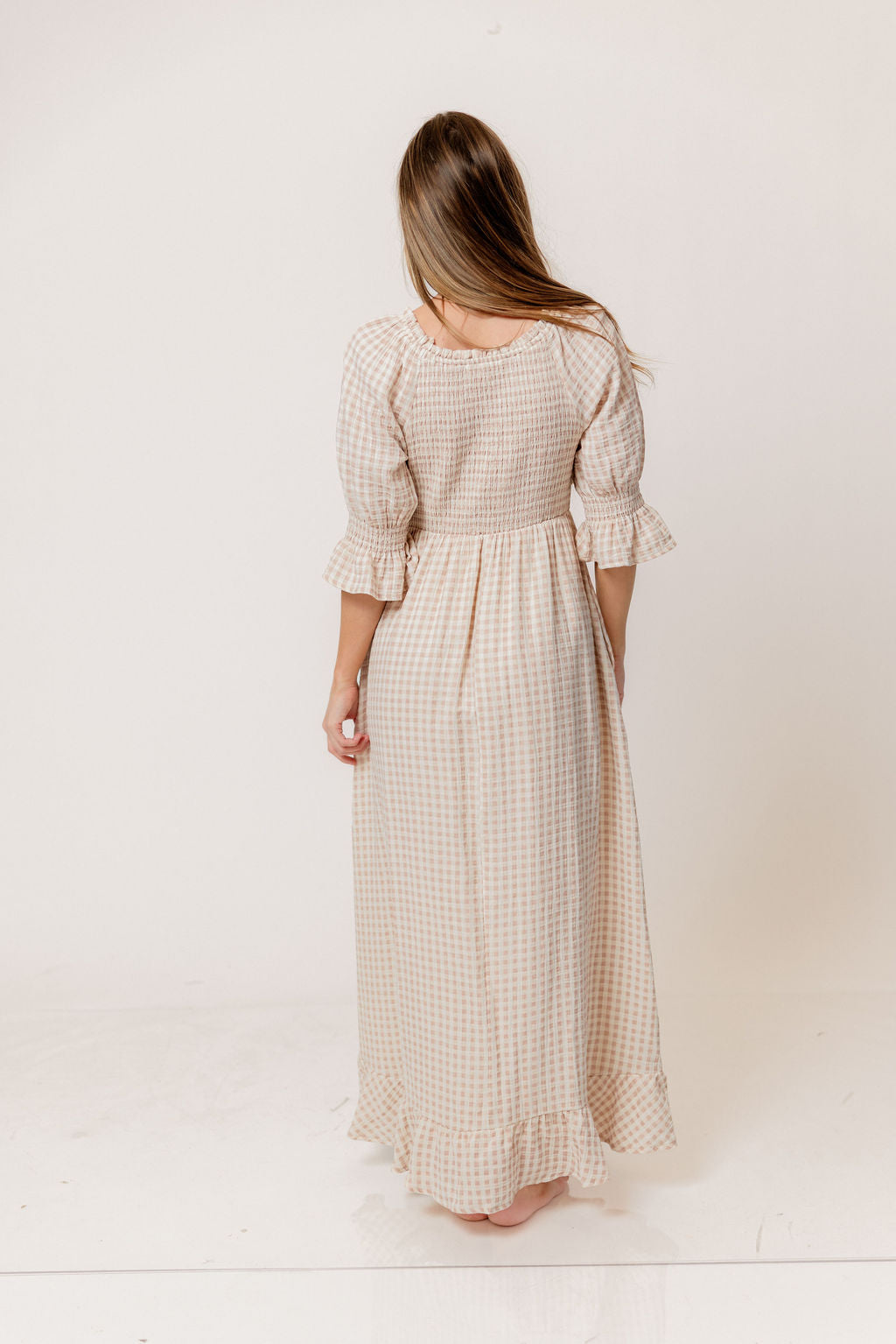 Cecilia 100% Cotton Smocked Maxi Dress in Custard Plaid (Lined) - Bump Friendly