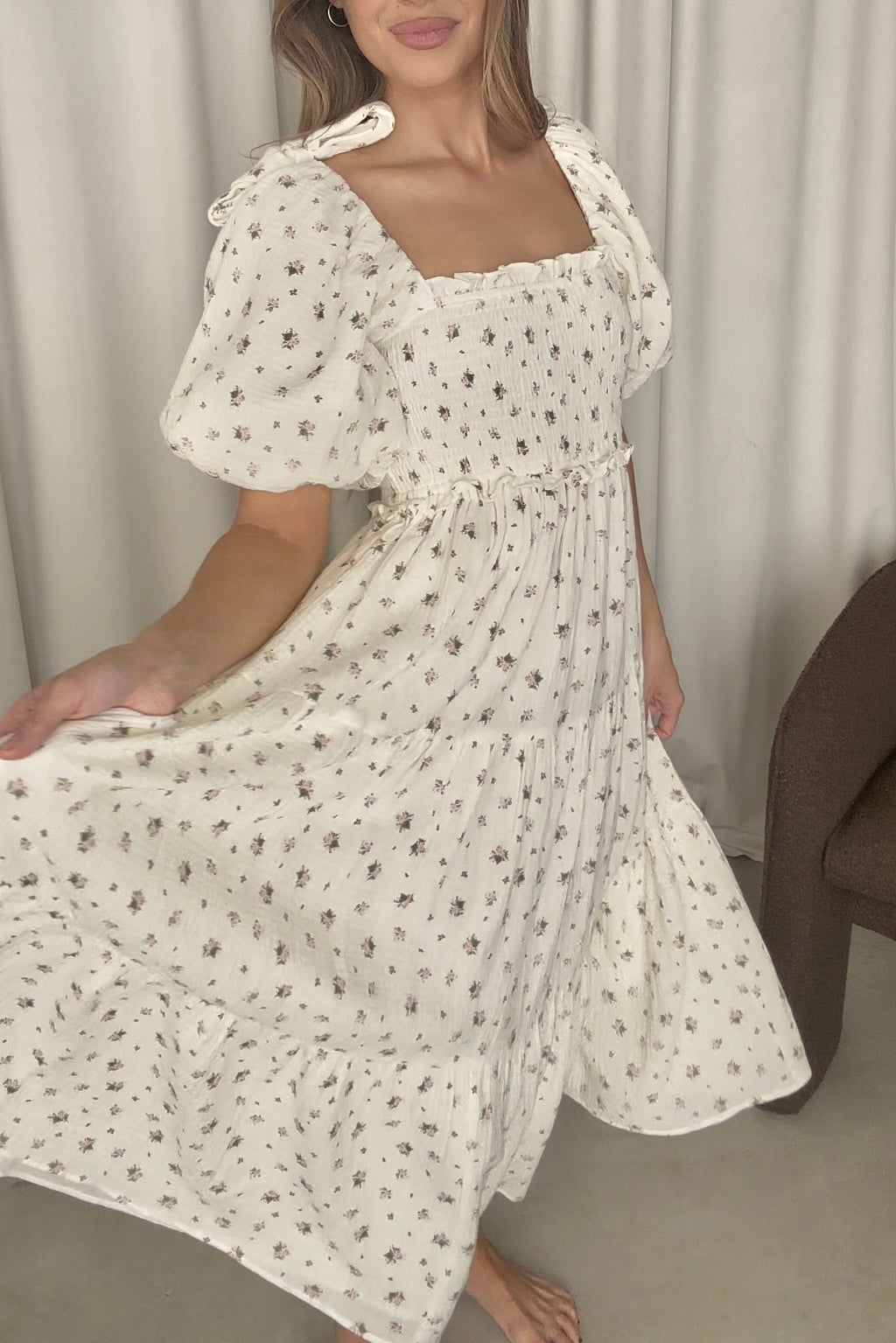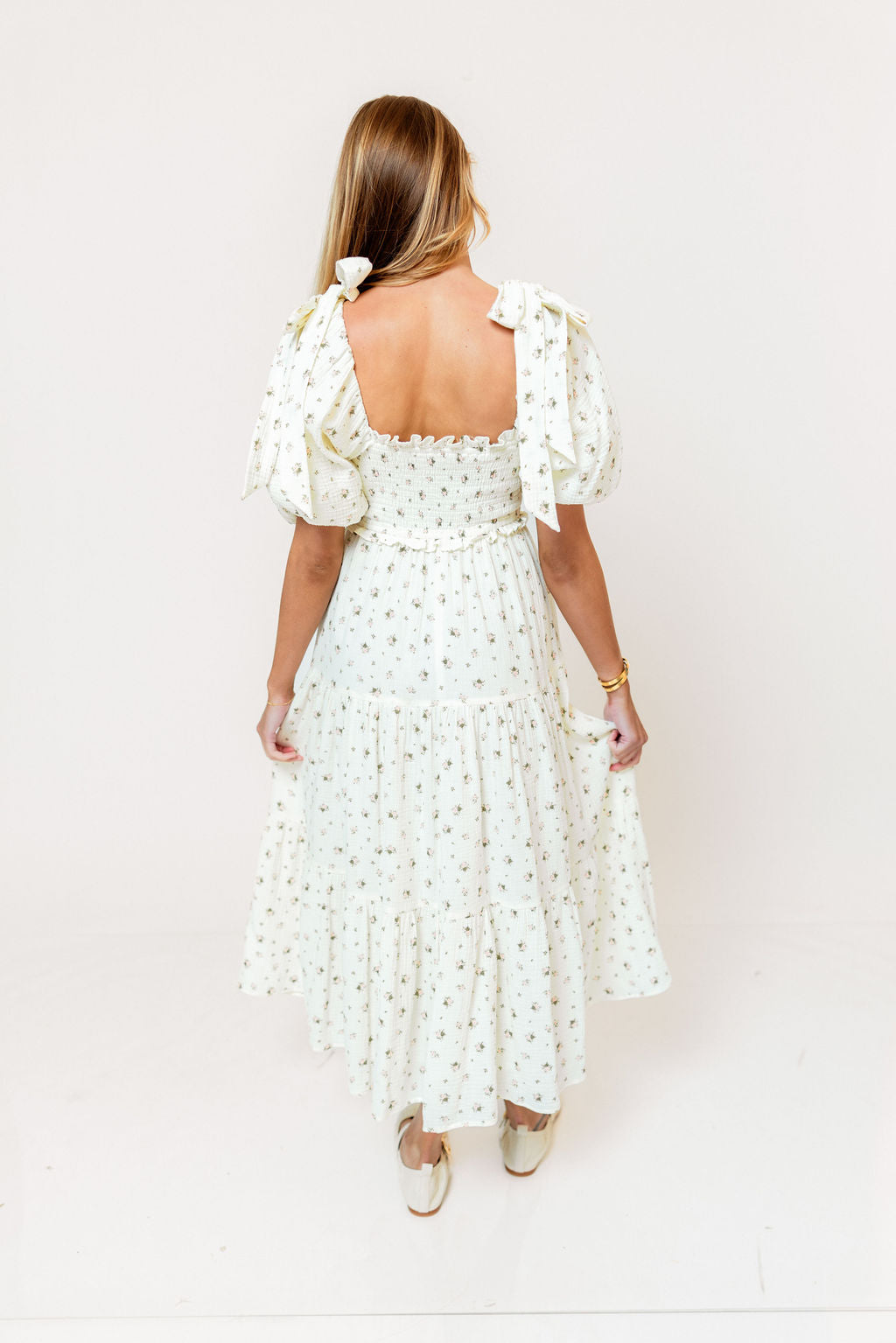 Sienna 100% Cotton Puff Sleeve Maxi Dress in Rose Foliage - Bump Friendly *2/12 PRE-ORDER*