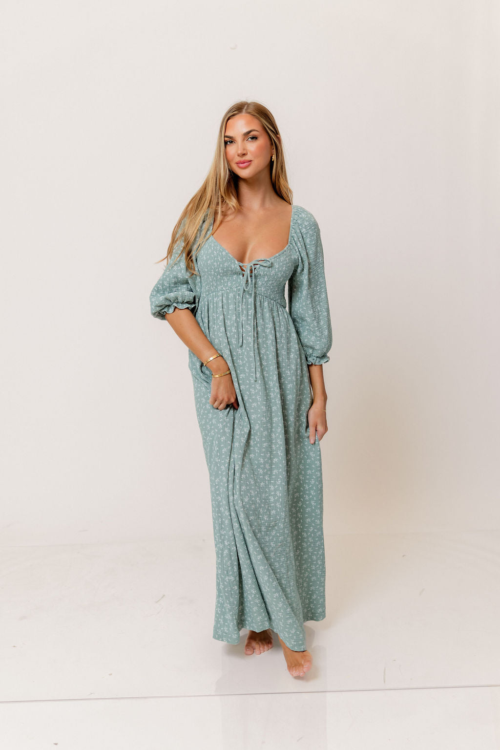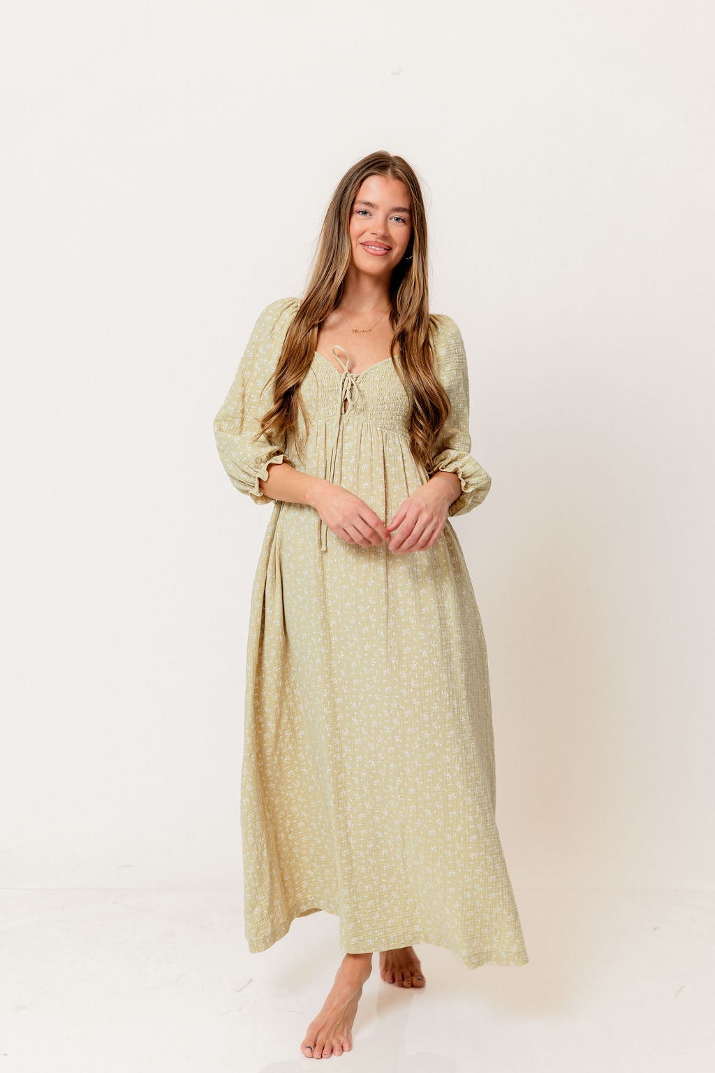 Sienna 100% Cotton Puff Sleeve Maxi Dress in Green Haze Foliage - Bump Friendly *2/12 PRE-ORDER*