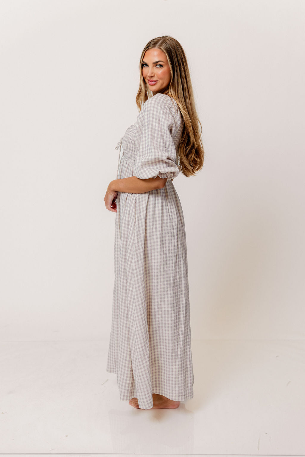 Sienna 100% Cotton Puff Sleeve Maxi Dress in Wisteria Plaid (Lined) - Bump Friendly *2/12 PRE-ORDER*