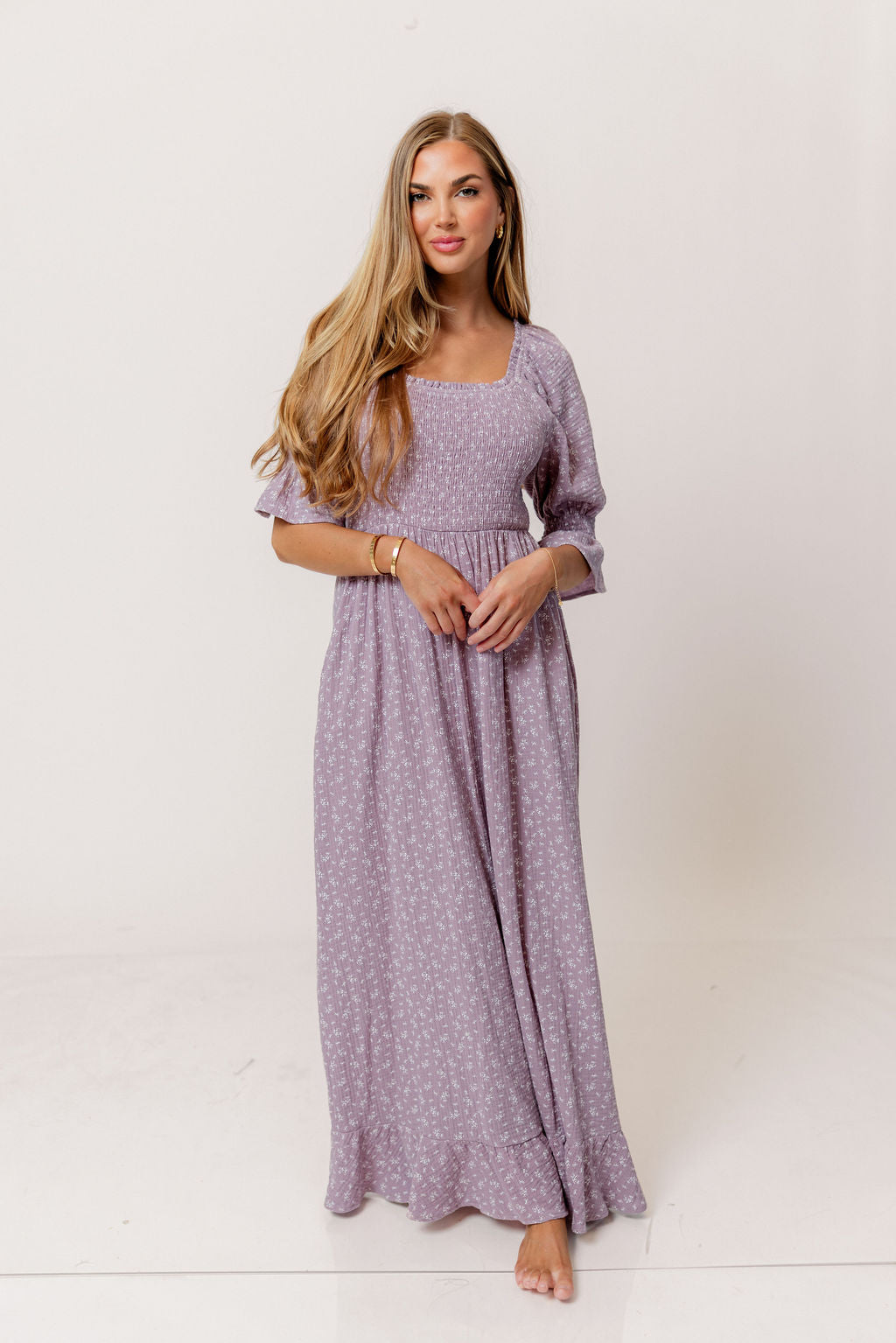 Cecilia 100% Cotton Smocked Maxi Dress in Wisteria Plaid (Lined) - Bump Friendly *2/11 PRE-ORDER*