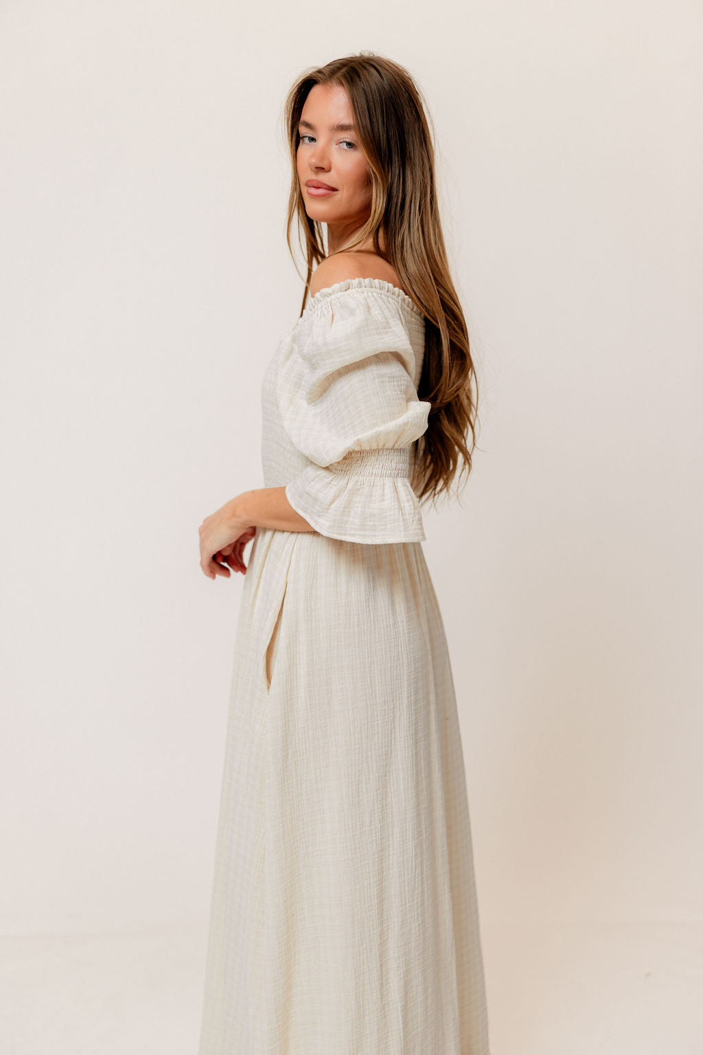 Orchard 100% Cotton Smocked Maxi Dress in Off White/Blue - Bump Friendly