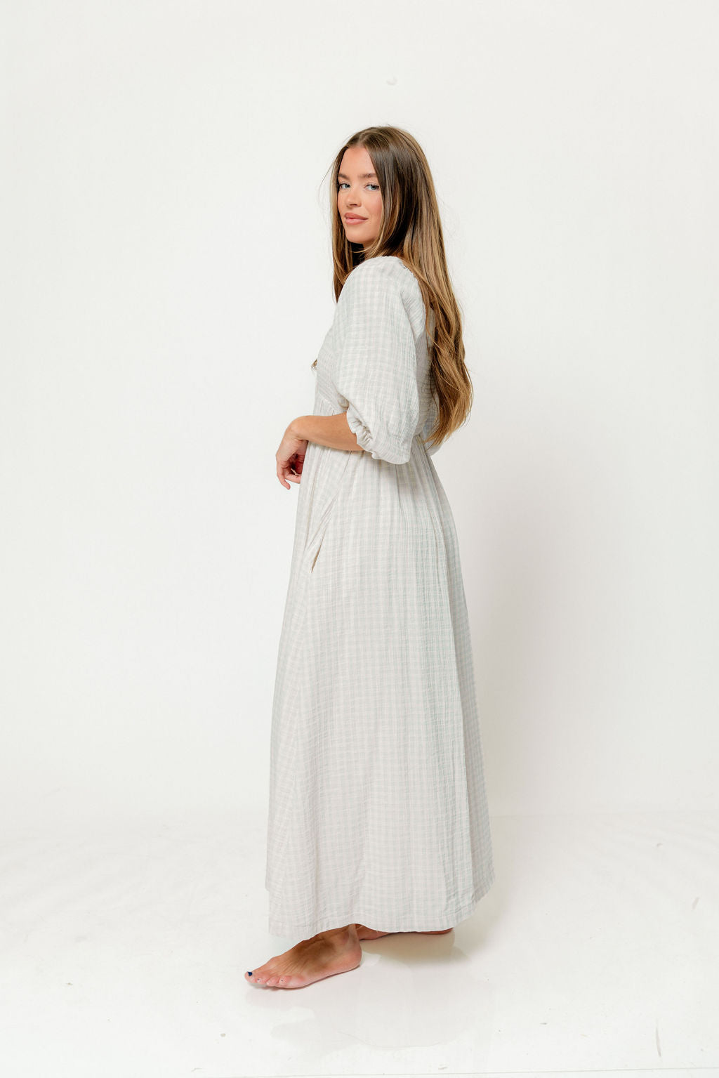 Cecilia 100% Cotton Smocked Maxi Dress in Baby Blue Plaid (Lined) - Bump Friendly