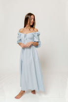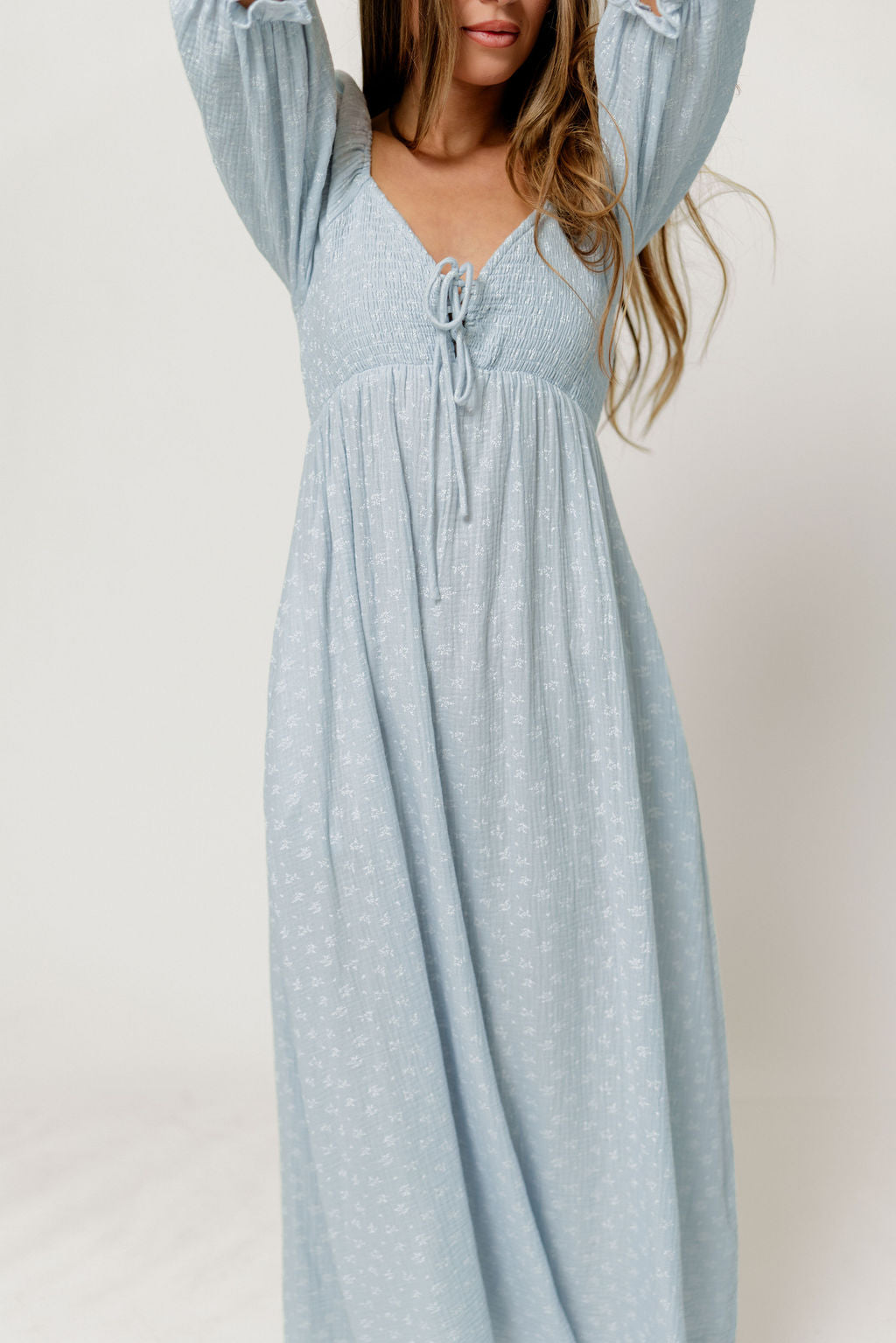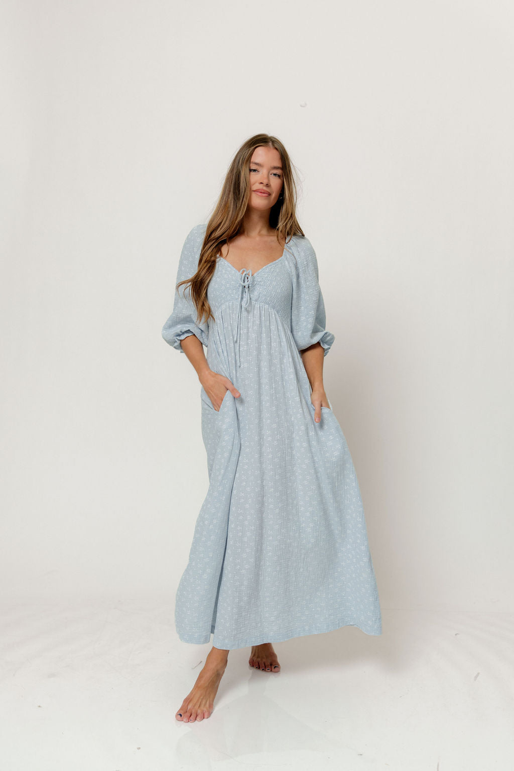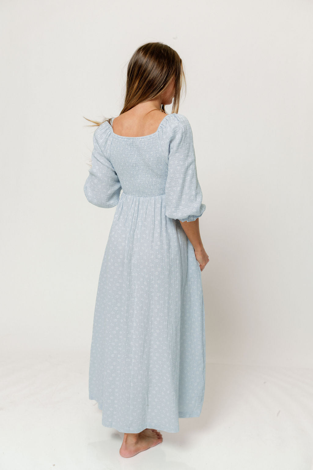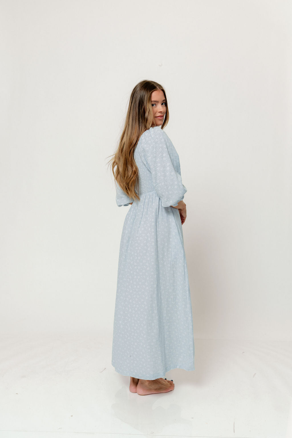 Cecilia 100% Cotton Smocked Maxi Dress in Baby Blue Foliage - Bump Friendly