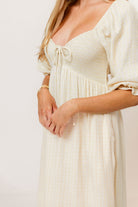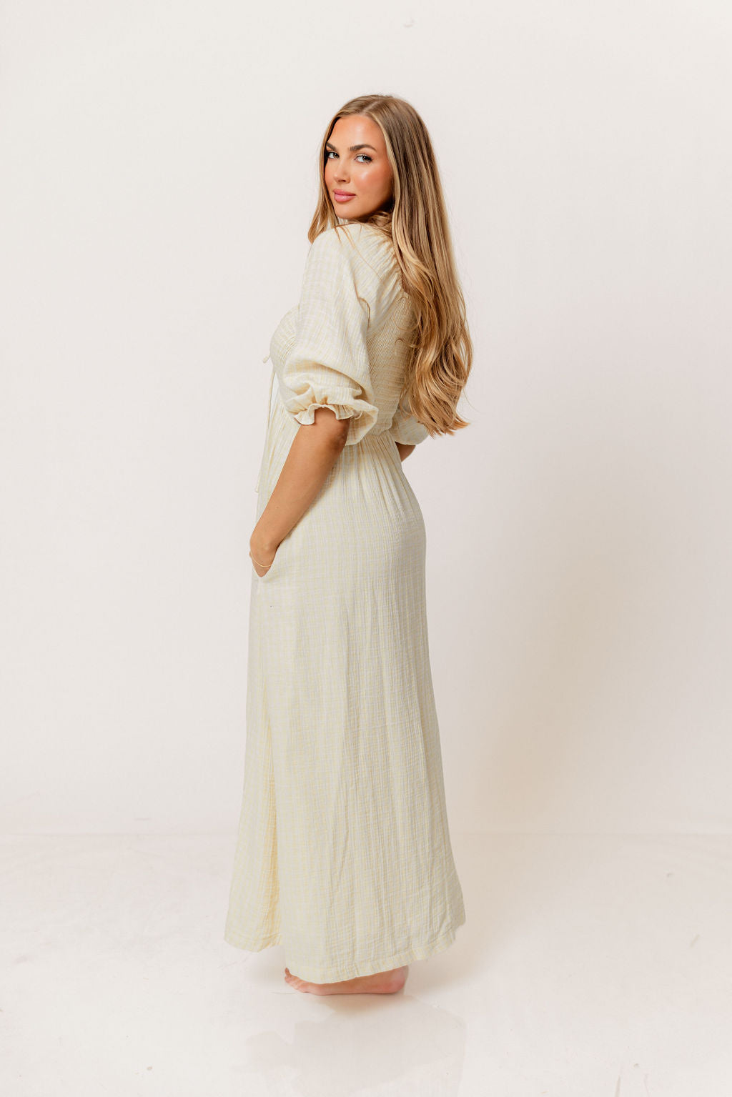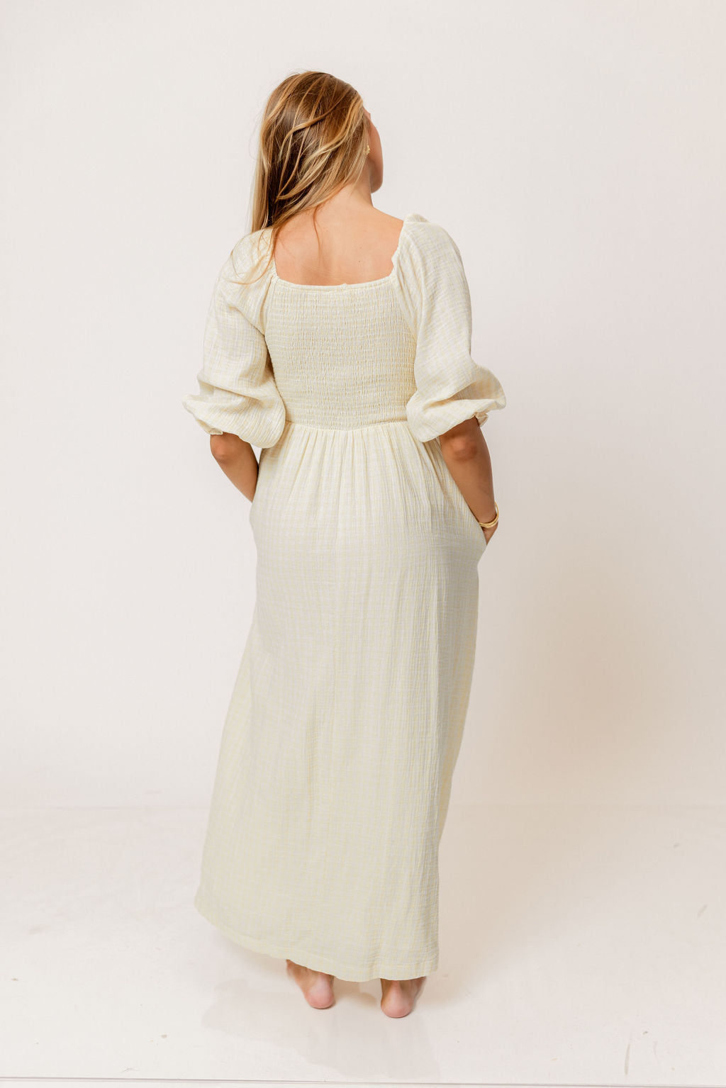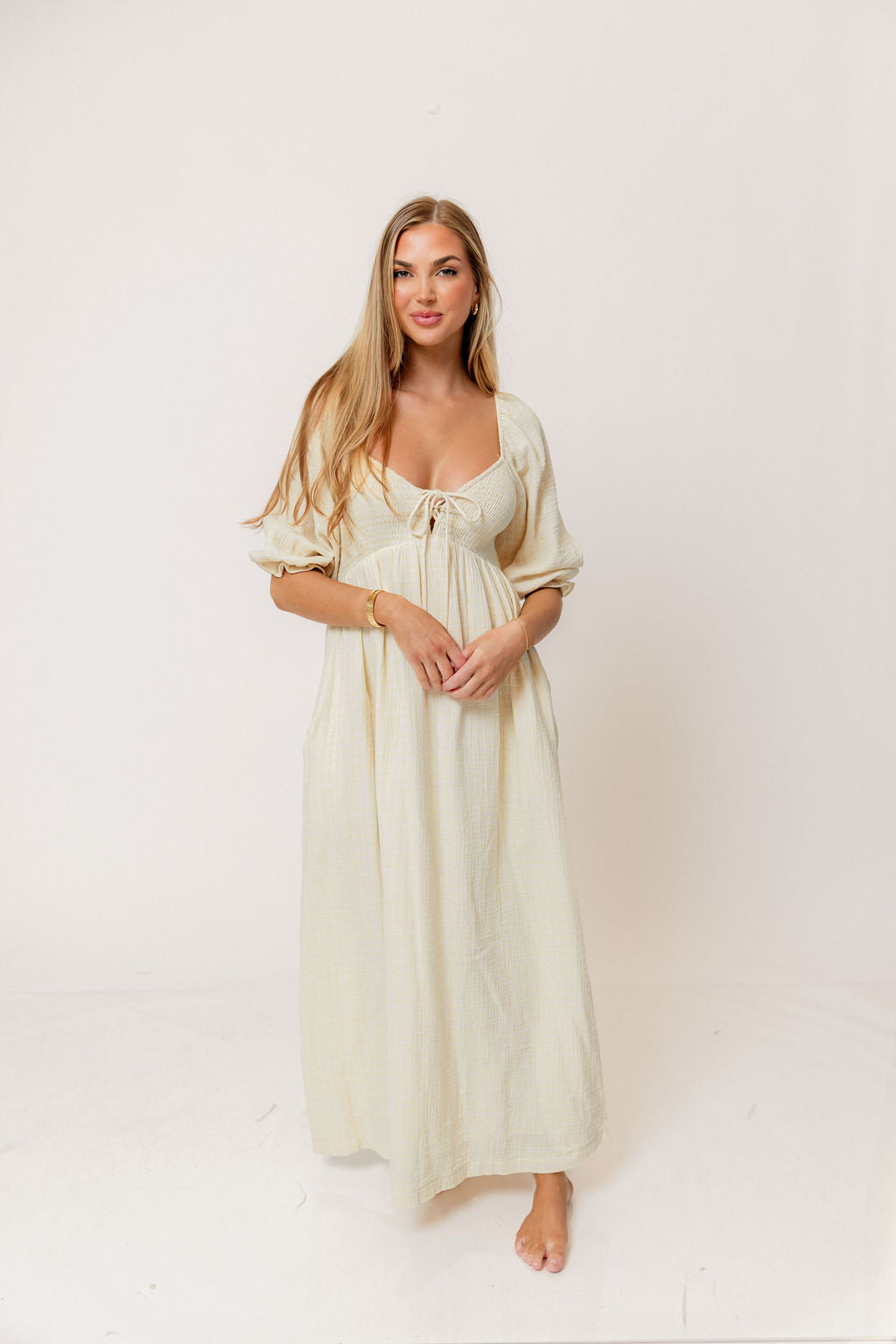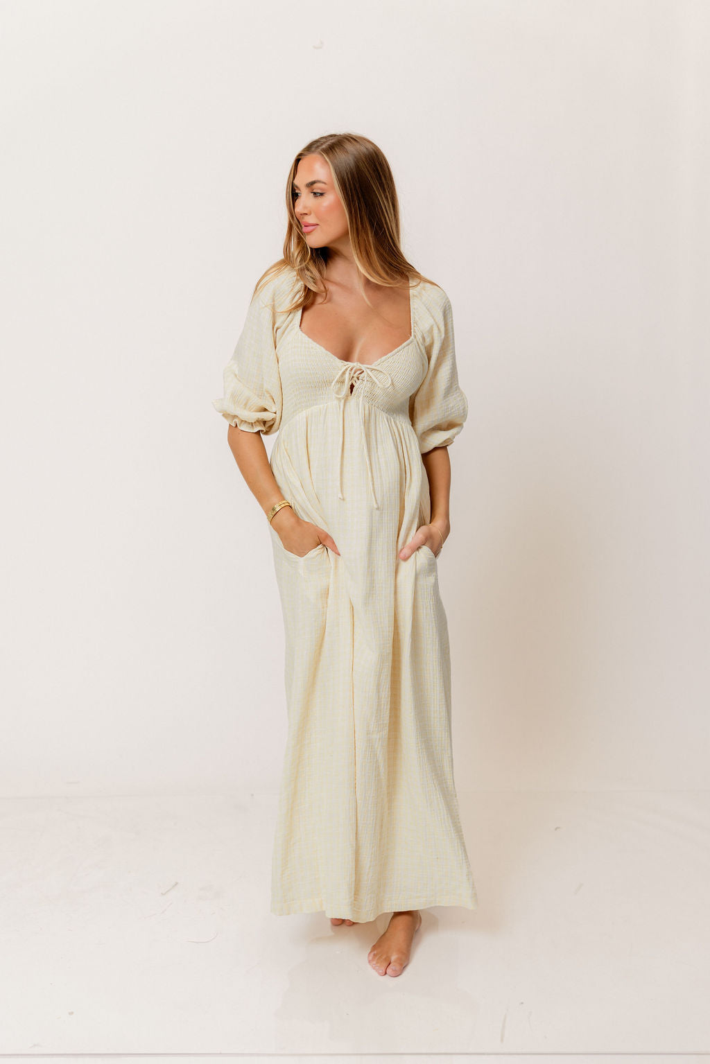 Cecilia 100% Cotton Smocked Maxi Dress in Custard Plaid (Lined) - Bump Friendly