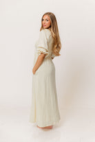 GARMENT DETAILS: Lightweight cotton maxi dress in a charming gingham print, with a sweetheart neckline, 3/4 length sleeves, and an adjustable front tie detail. Features a smocked bodice, side pockets, and ruffle accents. This colorway has a full lining.