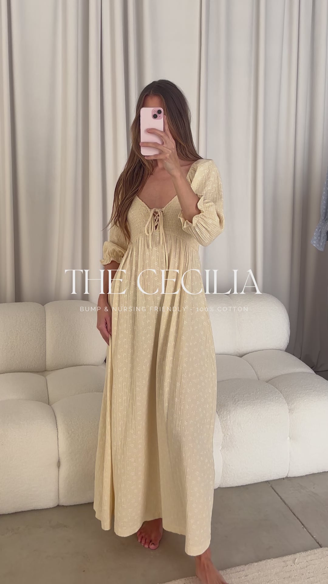 Cecilia 100% Cotton Smocked Maxi Dress in Custard Foliage - Bump Friendly