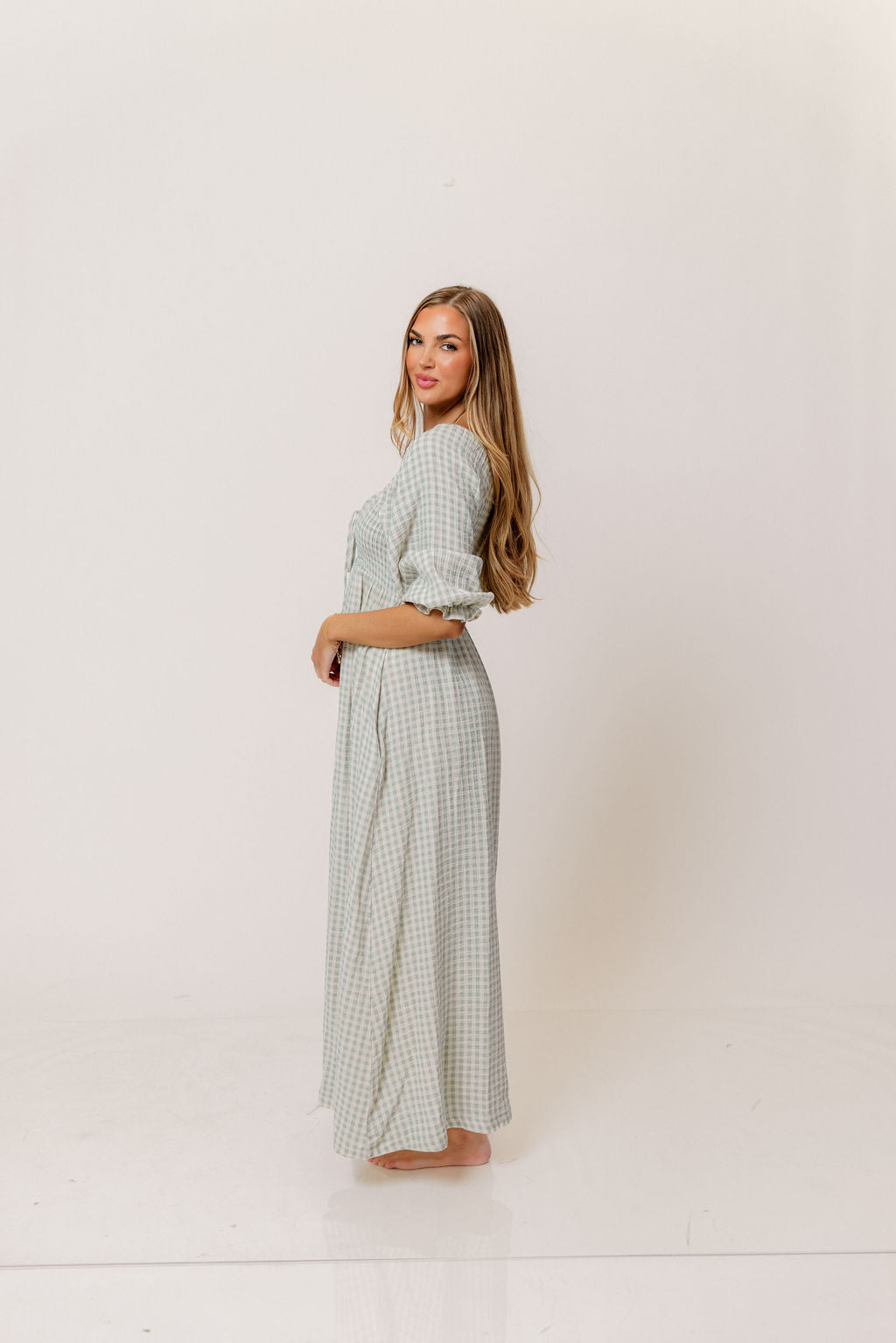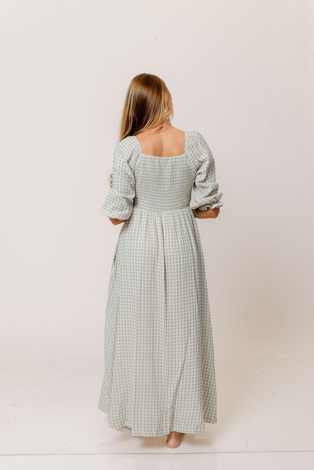 Cecilia 100% Cotton Smocked Maxi Dress in Aqua Plaid (Lined) - Bump Friendly *2/11 PRE-ORDER*