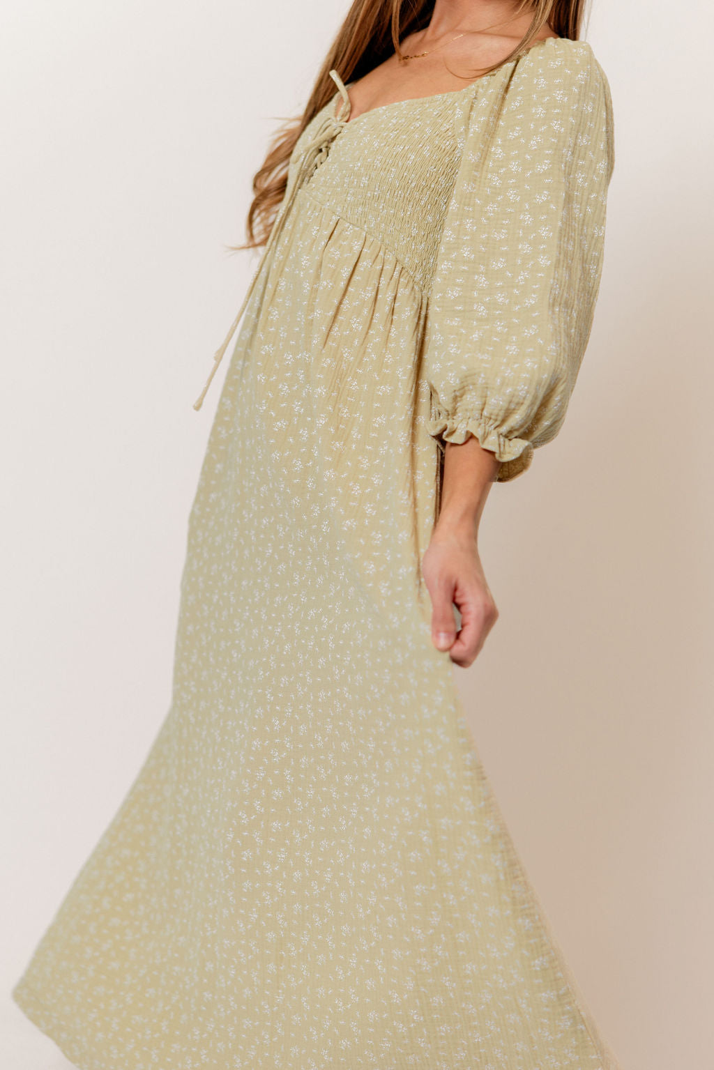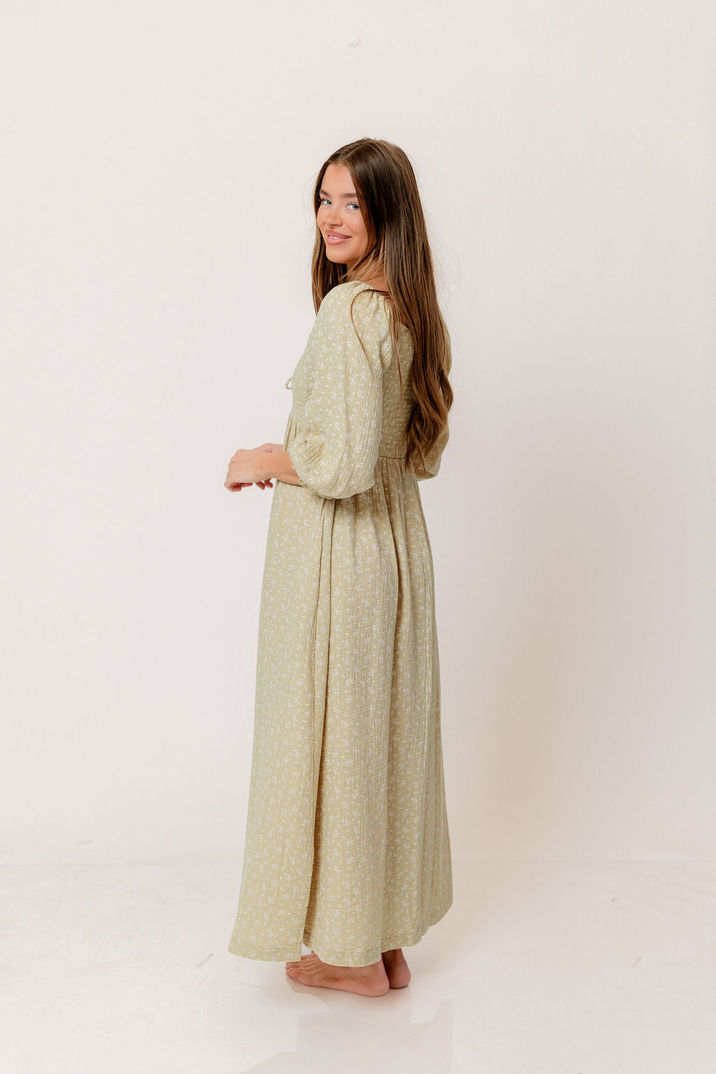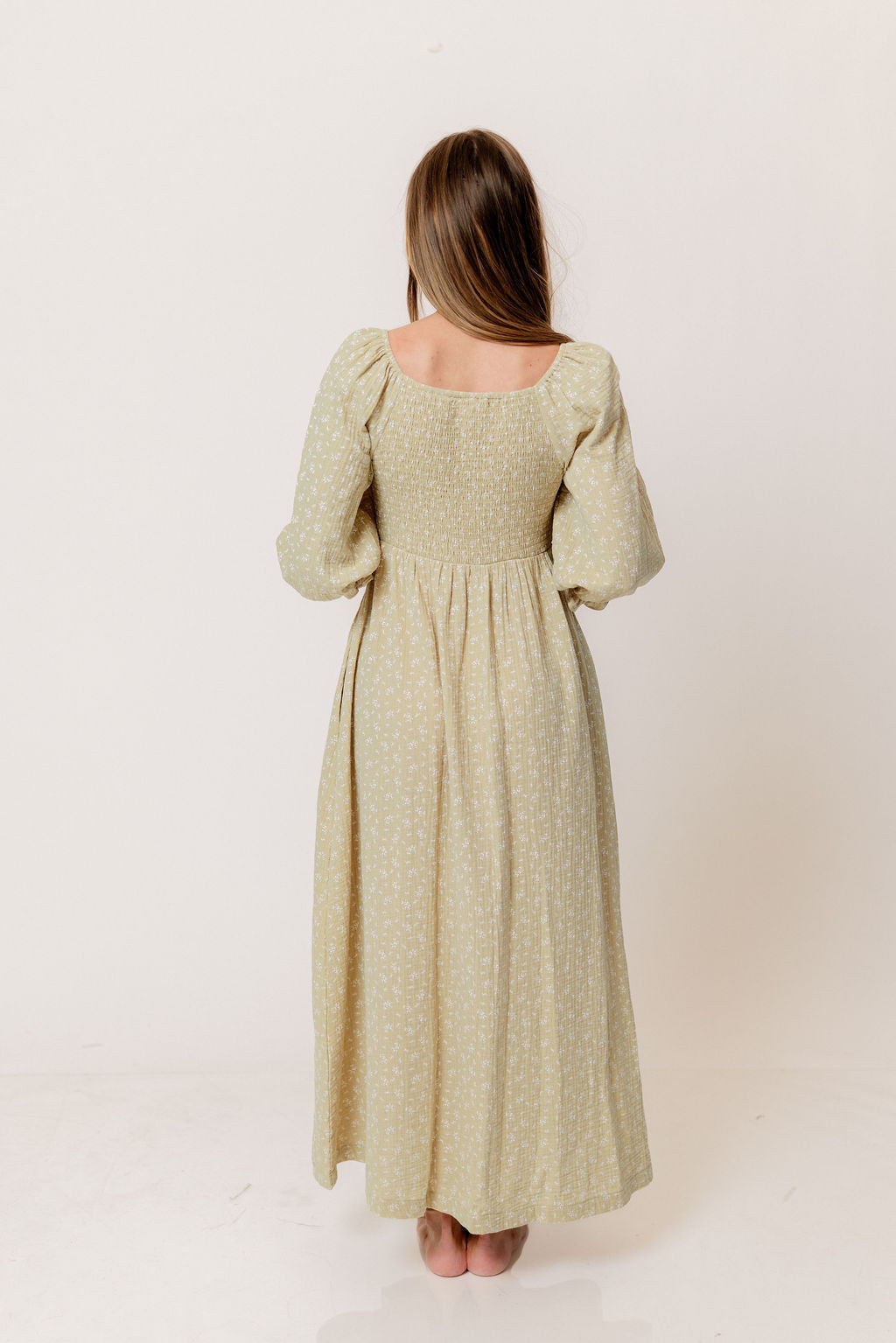 Cecilia 100% Cotton Smocked Maxi Dress in Green Haze Foliage - Bump Friendly *2/11 PRE-ORDER*