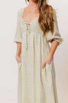 Cecilia 100% Cotton Smocked Maxi Dress in Green Haze Plaid (Lined) - Bump Friendly *2/11 PRE-ORDER*