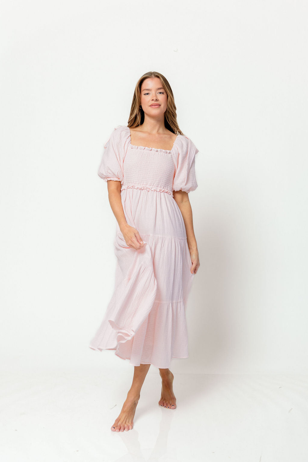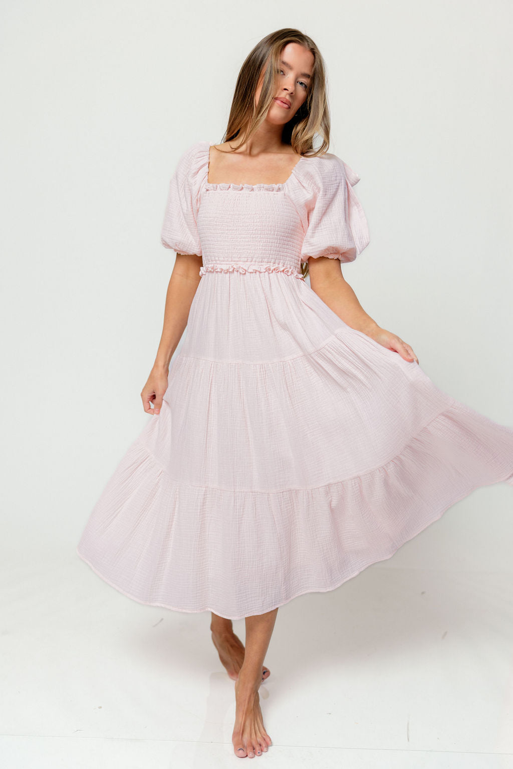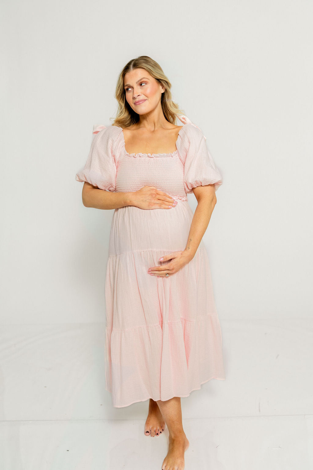 Elena 100% Cotton Midi Dress in Pale Pink - Bump Friendly
