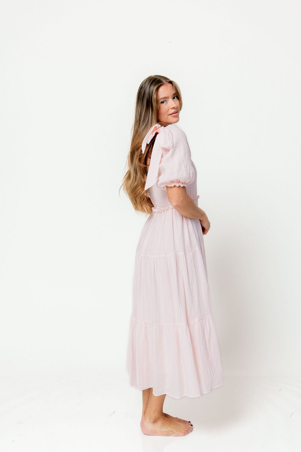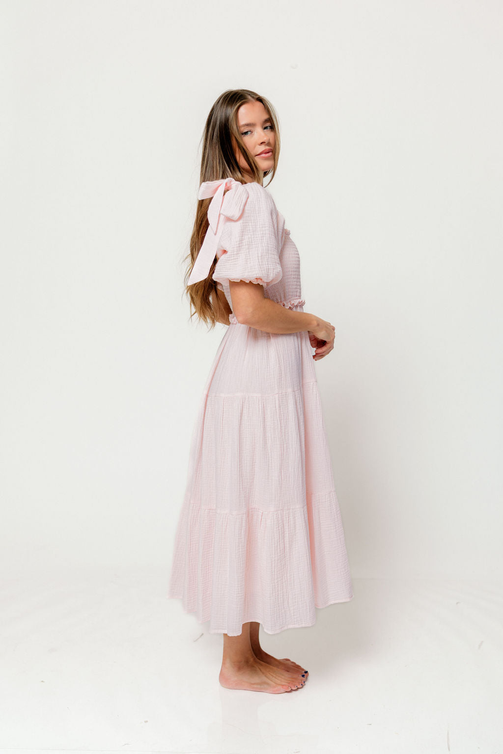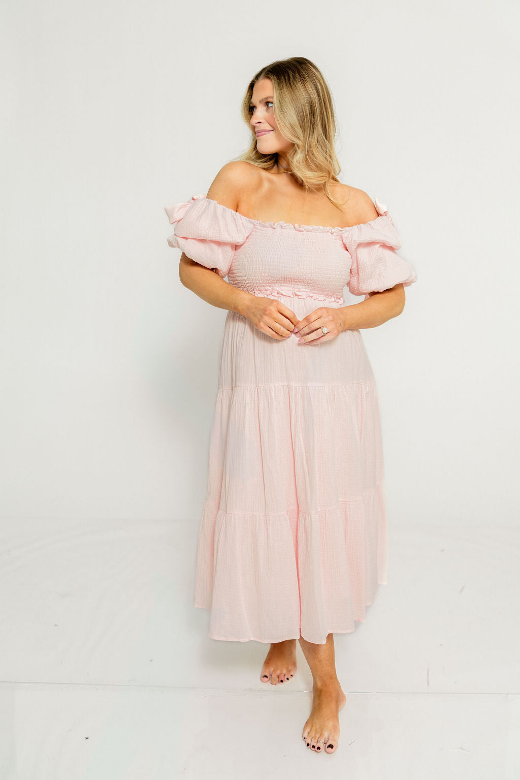 Elena 100% Cotton Midi Dress in Pale Pink - Bump Friendly