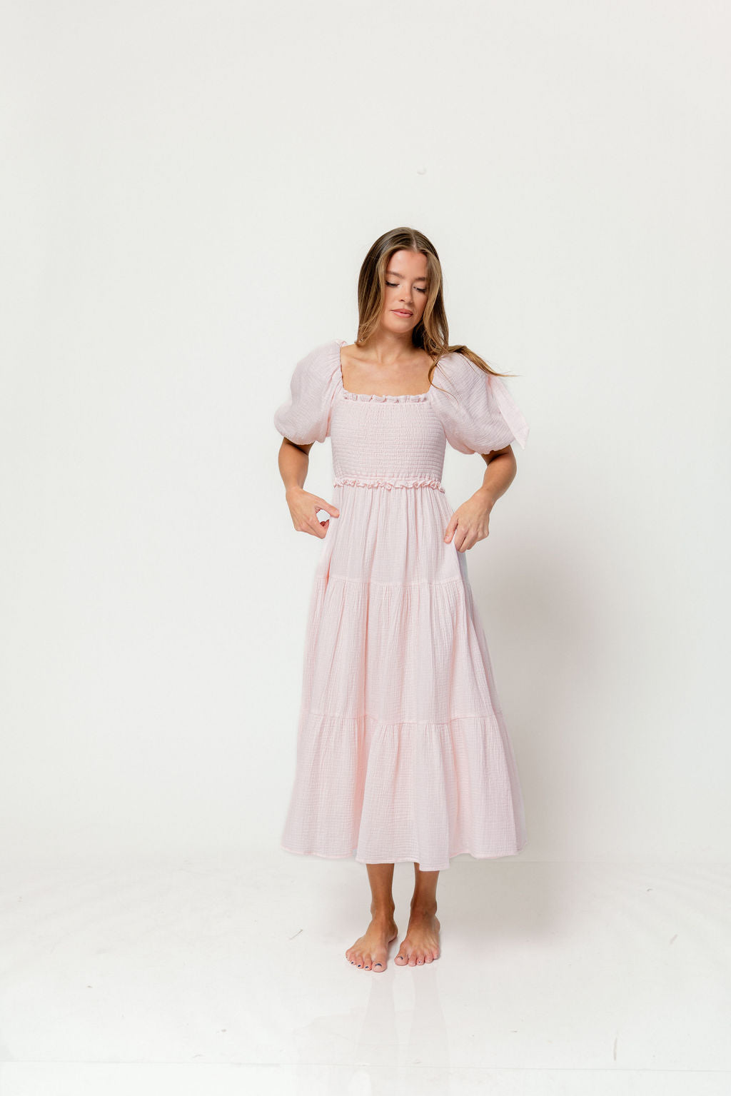 This picture-perfect midi dress is ready for your next special occasion! The Elena Midi features a classic, feminine silhouette that we just adore, plus a comfortable smocked bodice and statement puffed sleeves. It's flattering and comfortable for every body, including expecting mamas!