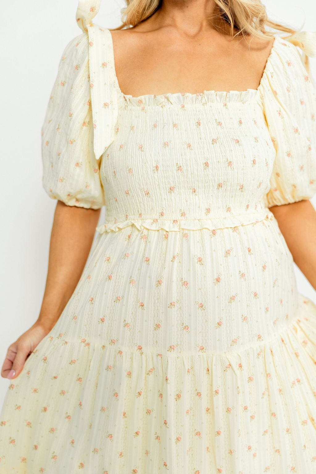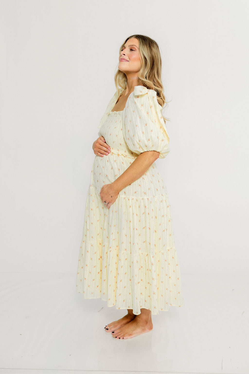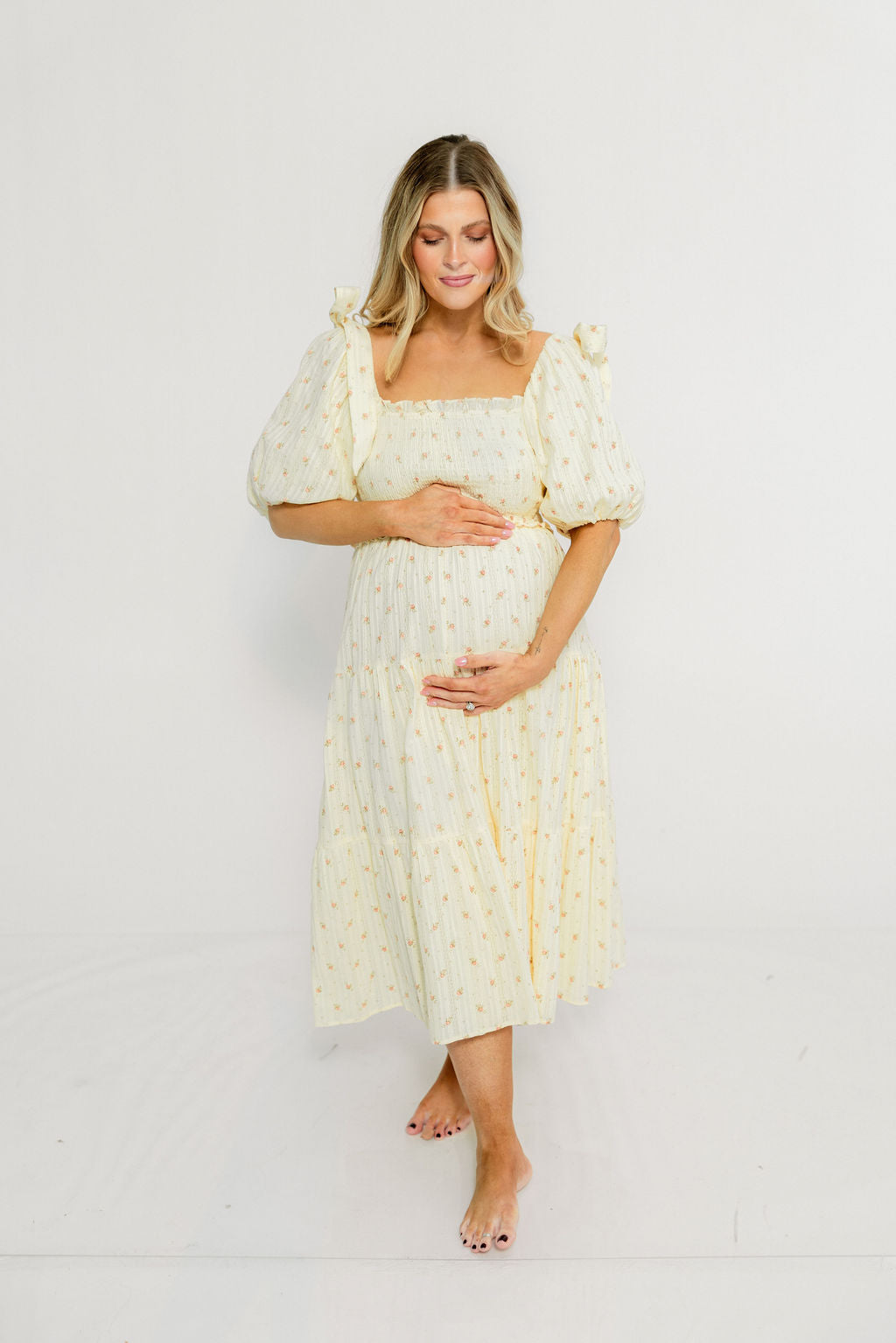 Elena 100% Cotton Midi Dress in Butter Floral - Bump Friendly
