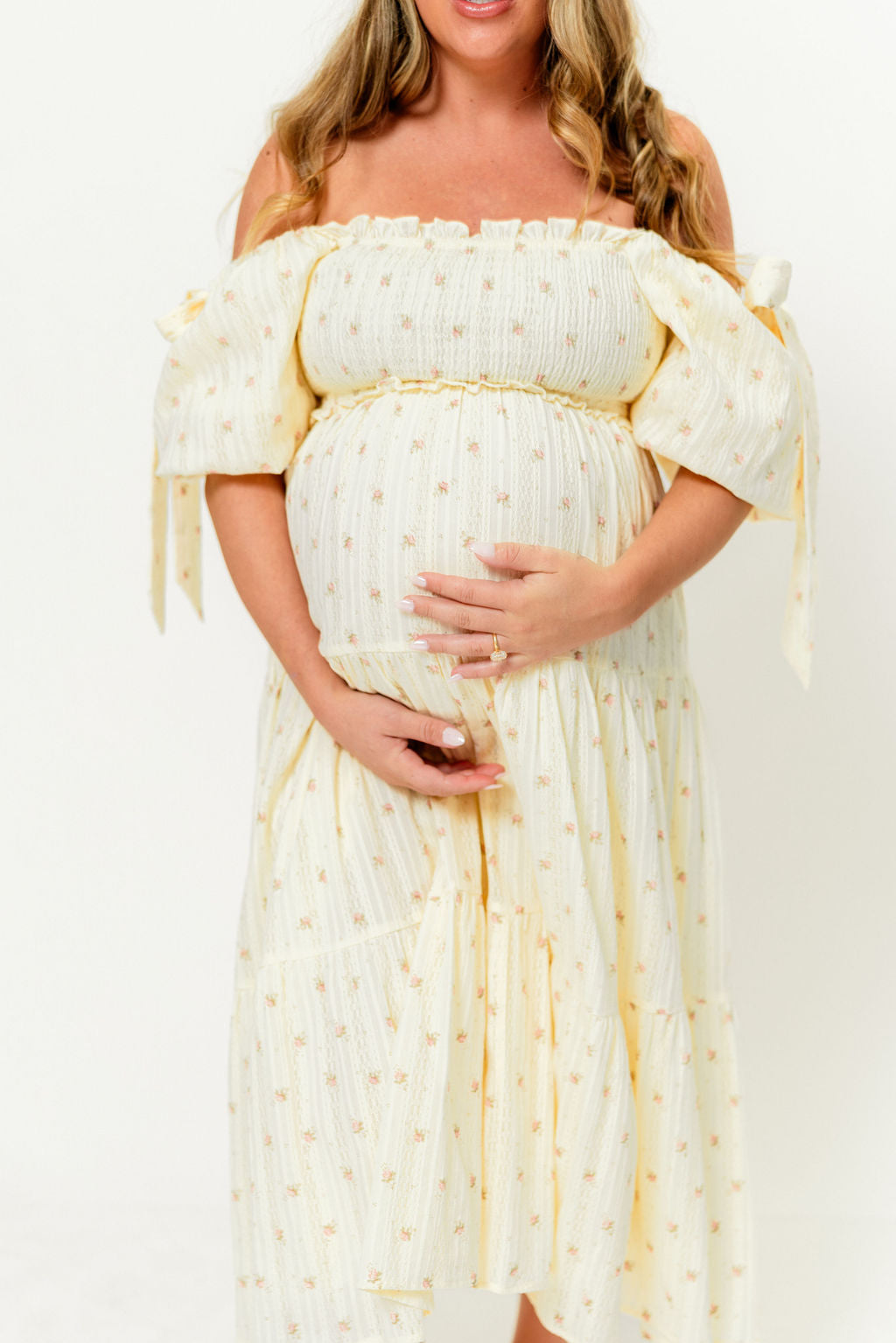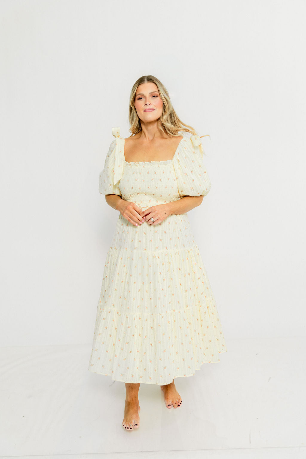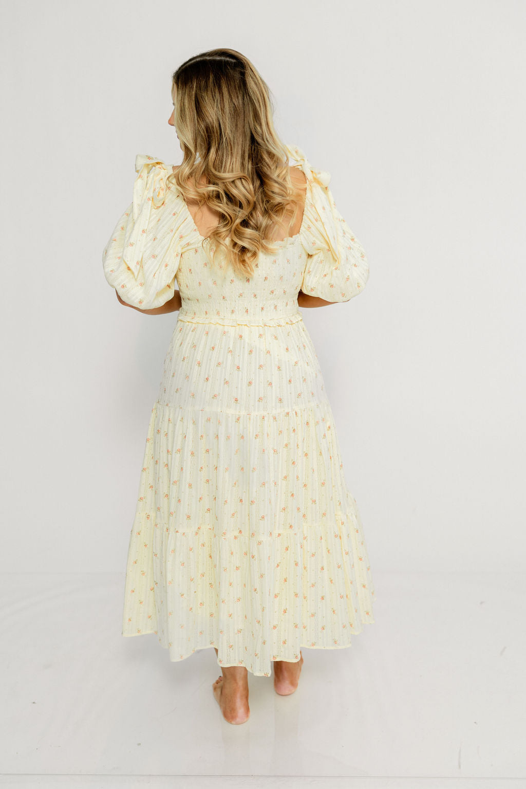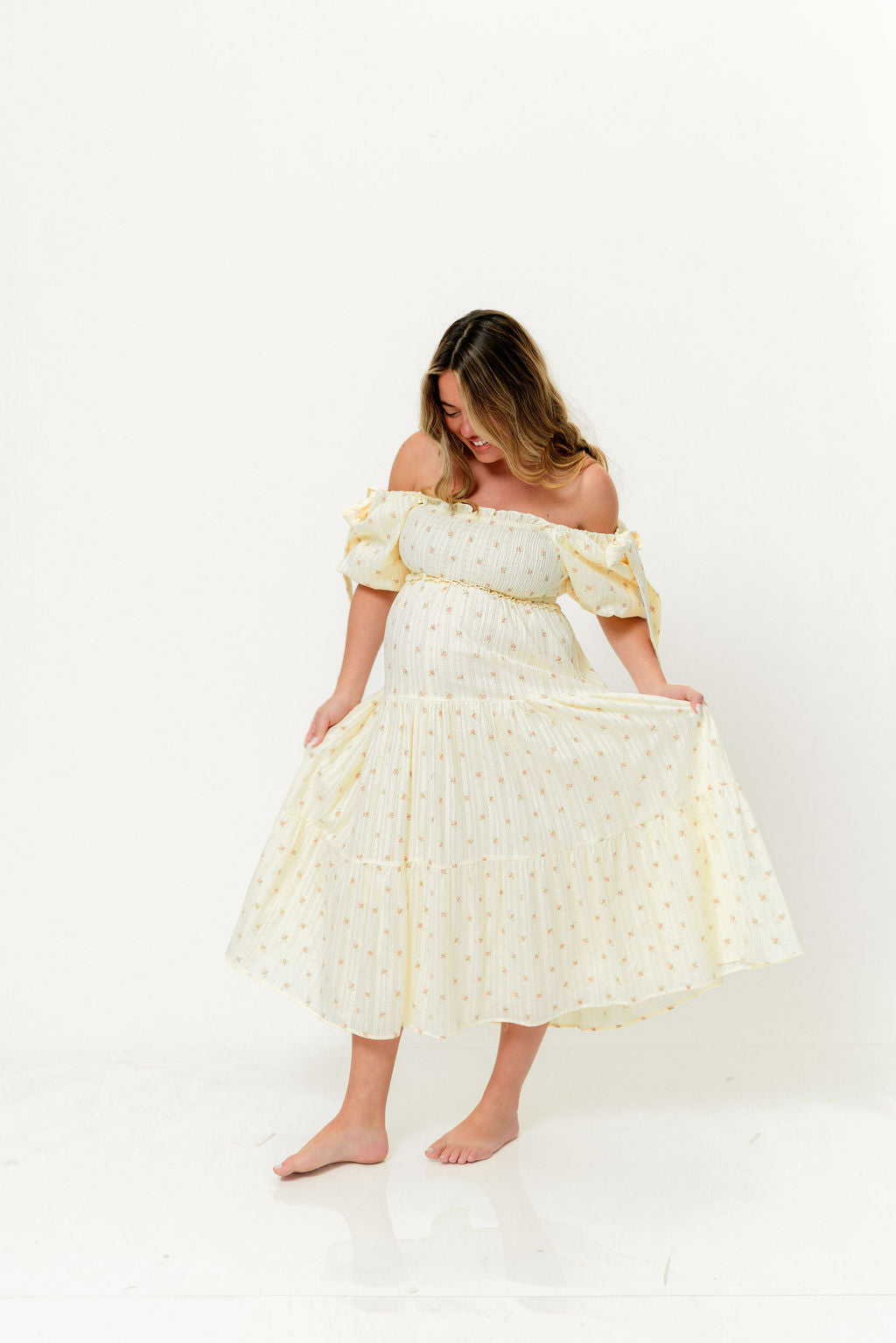 Elena 100% Cotton Midi Dress in Butter Floral - Bump Friendly