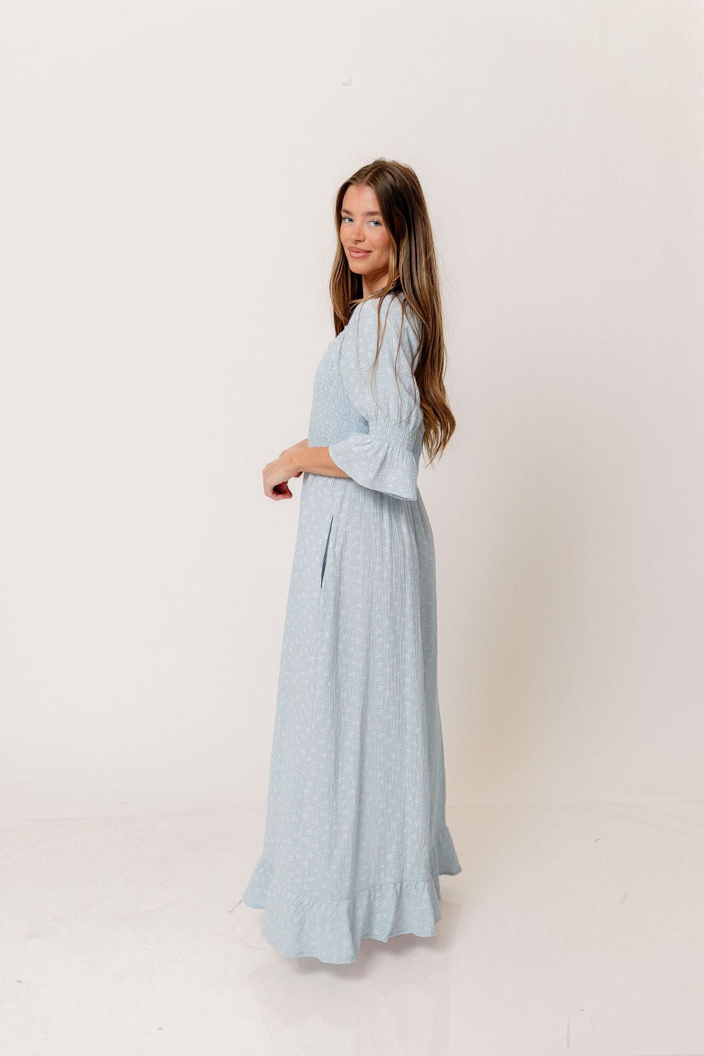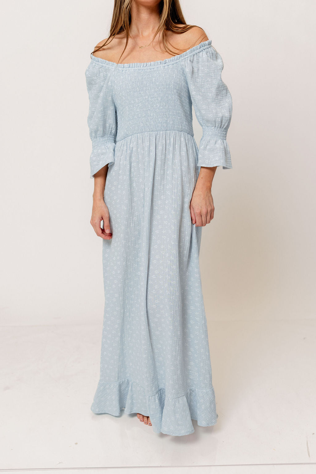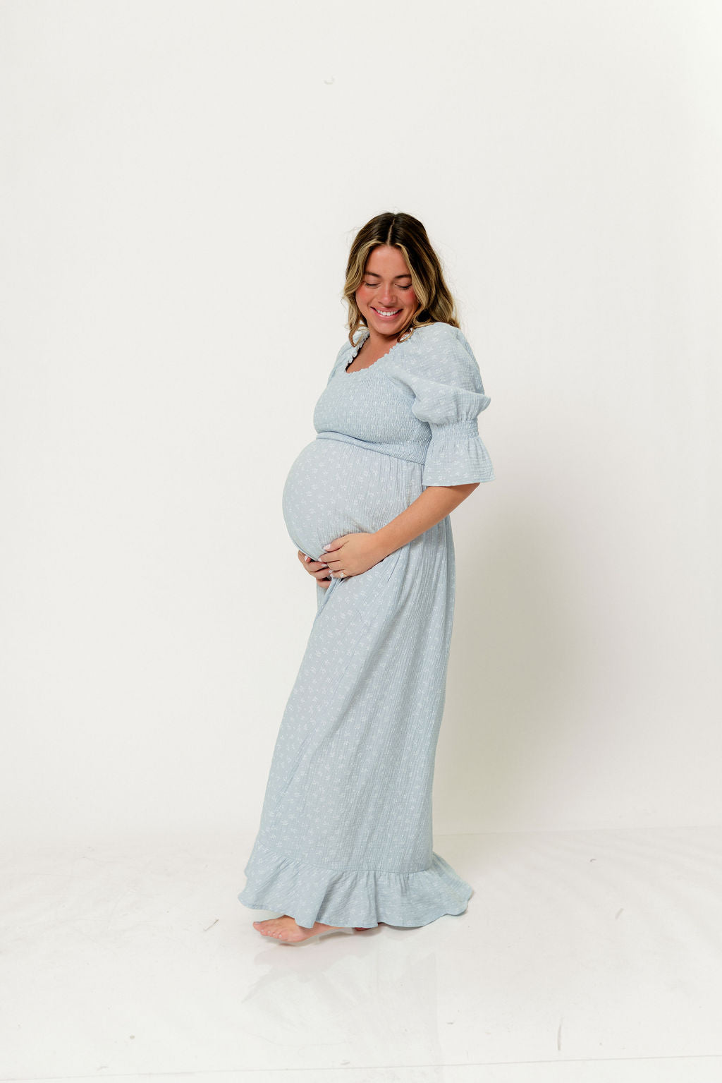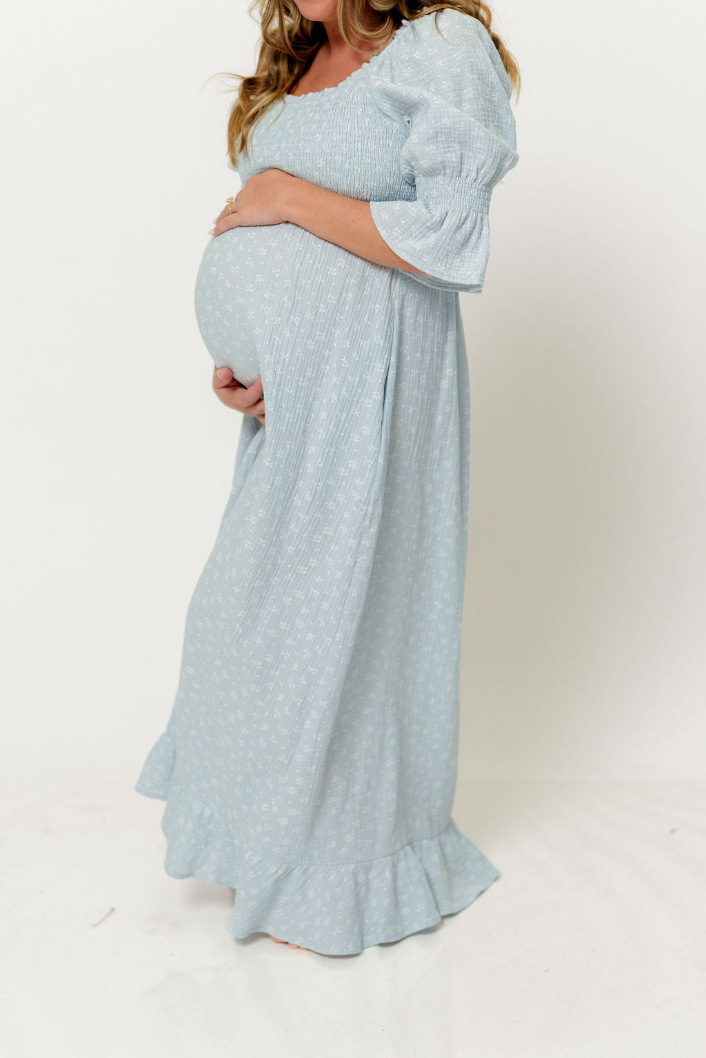 Sienna 100% Cotton Puff Sleeve Maxi Dress in Baby Blue Foliage - Bump Friendly