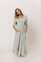 Sienna 100% Cotton Puff Sleeve Maxi Dress in Aqua Plaid (Lined) - Bump Friendly *2/12 PRE-ORDER*