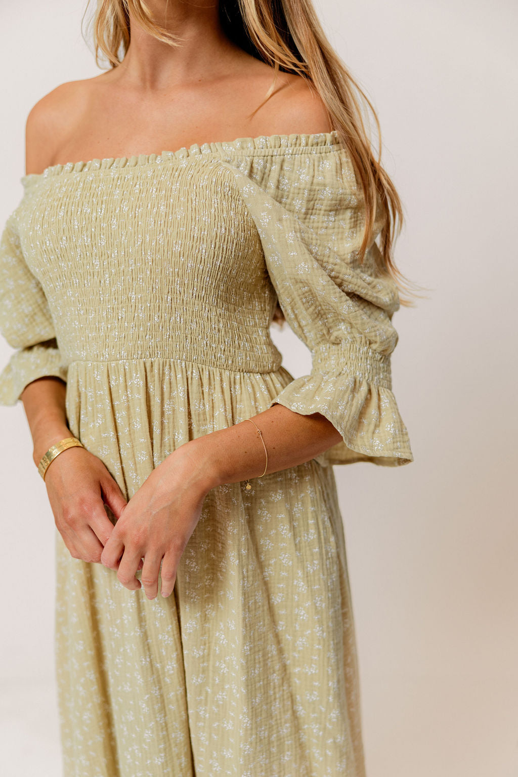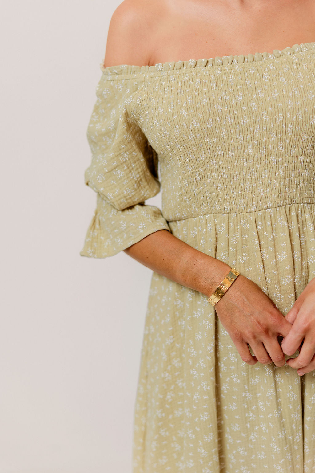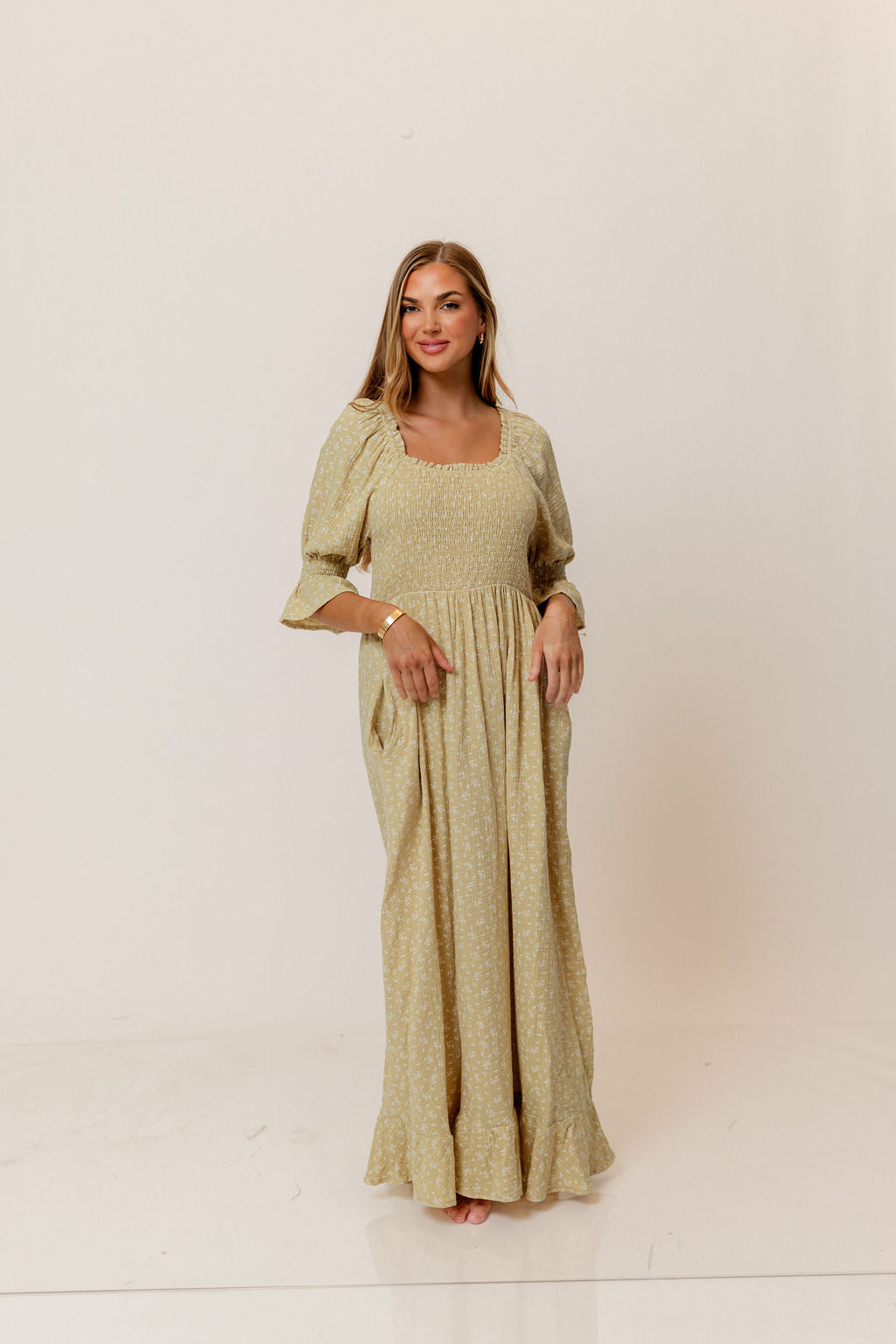 Sienna 100% Cotton Puff Sleeve Maxi Dress in Green Haze Foliage - Bump Friendly *2/12 PRE-ORDER*