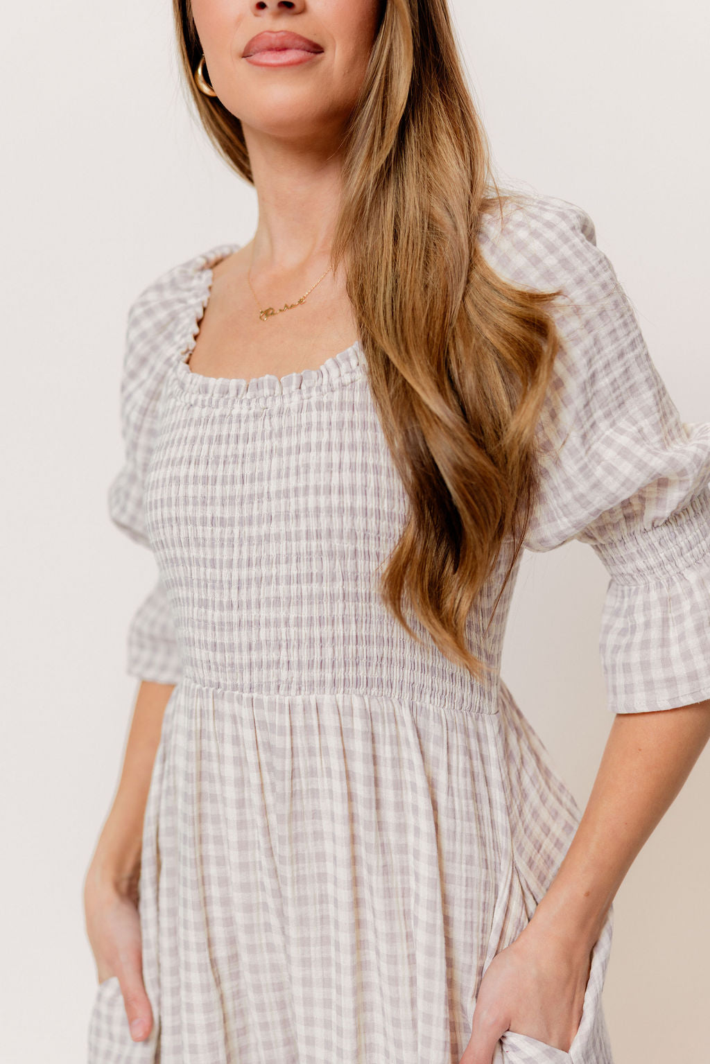 Sienna 100% Cotton Puff Sleeve Maxi Dress in Wisteria Plaid (Lined) - Bump Friendly *2/12 PRE-ORDER*