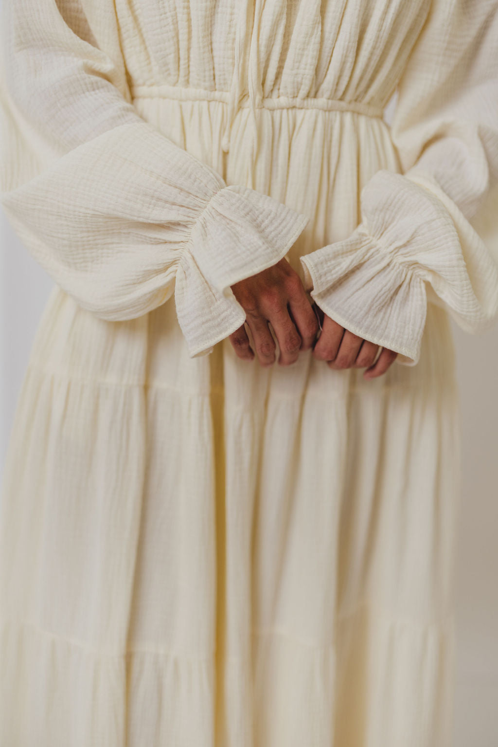 Hunter 100% Cotton Gauze Midi Dress in Soy - Bump Friendly