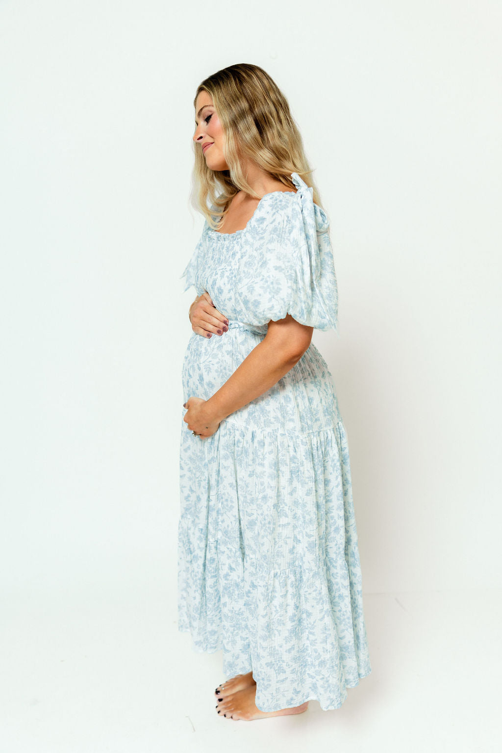 Olivia 100% Cotton Maxi Dress in Blue Toile - Bump Friendly